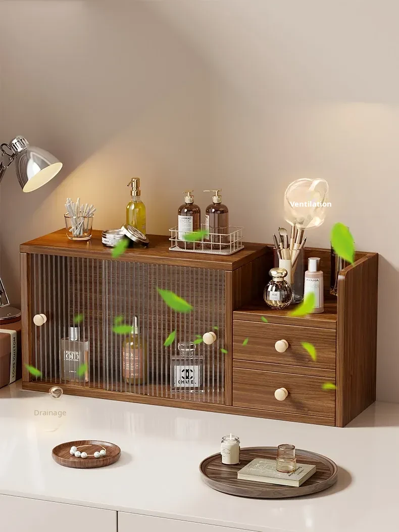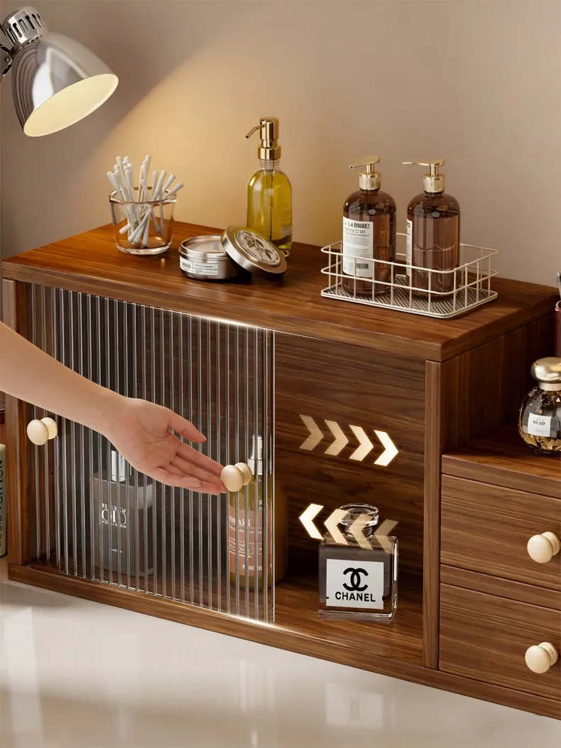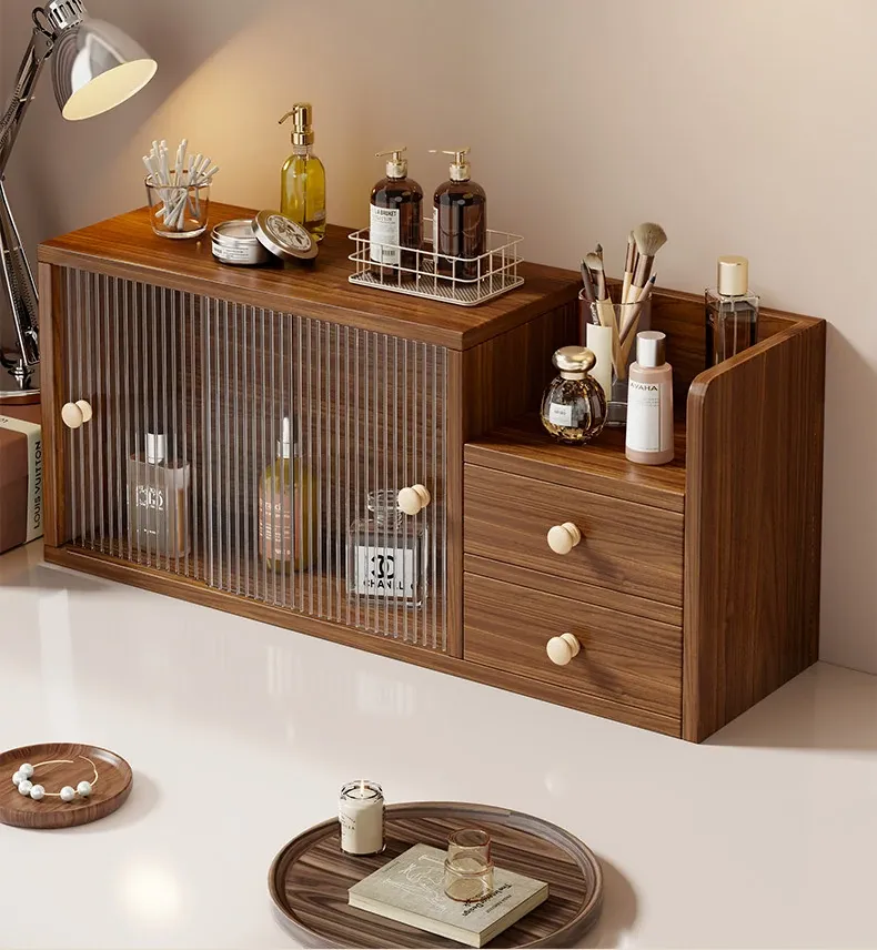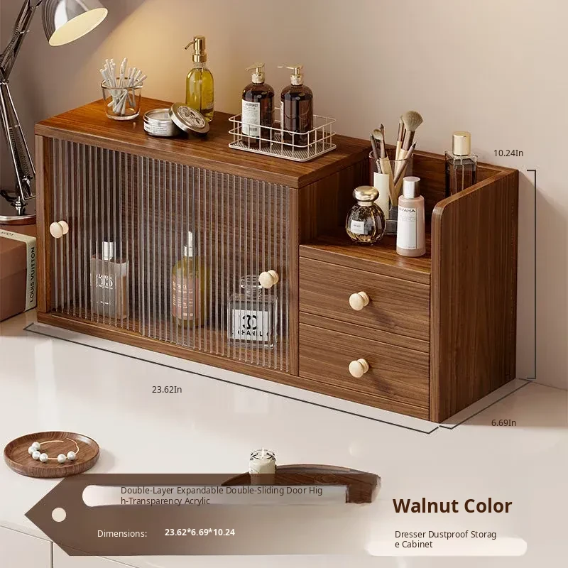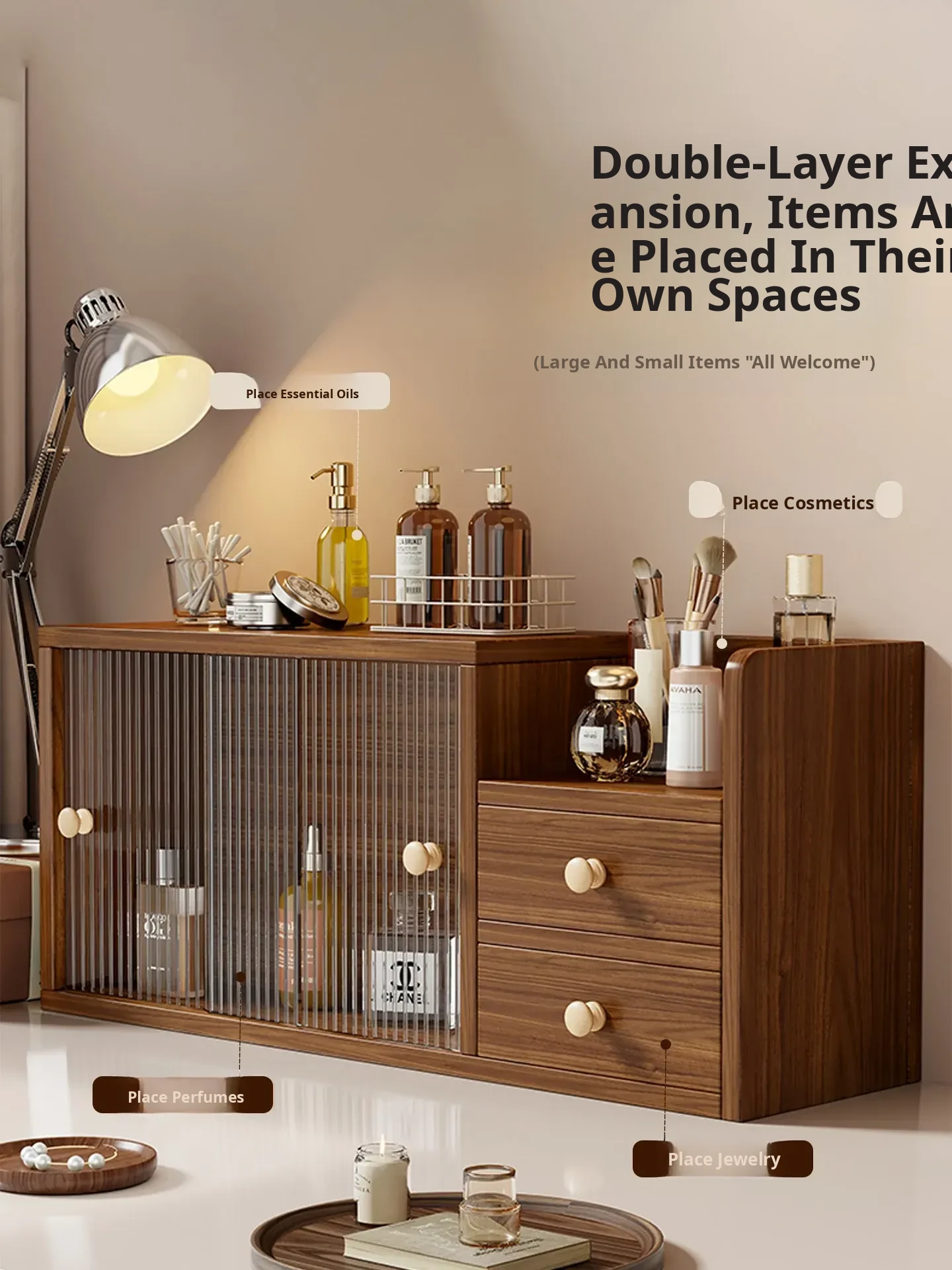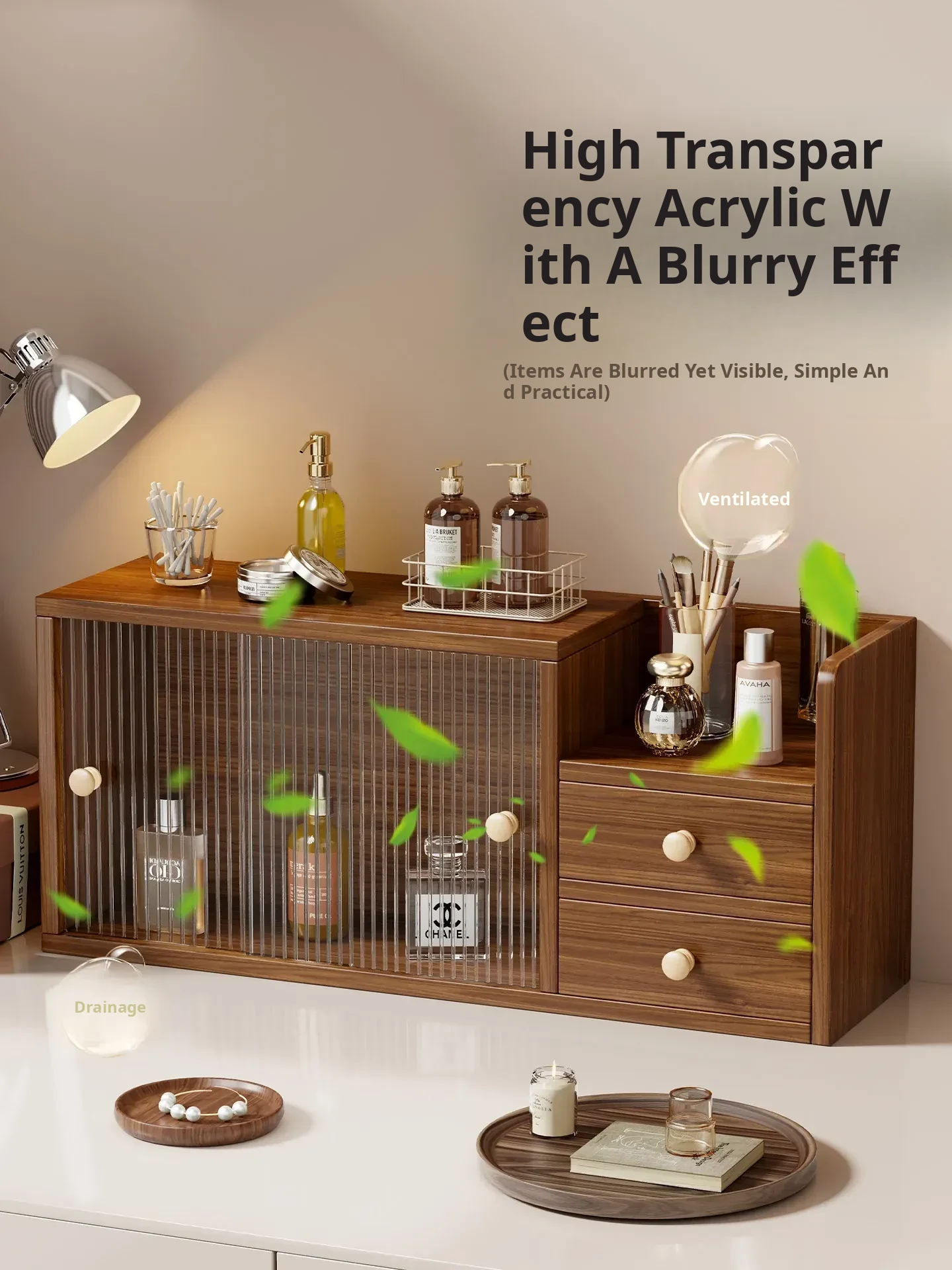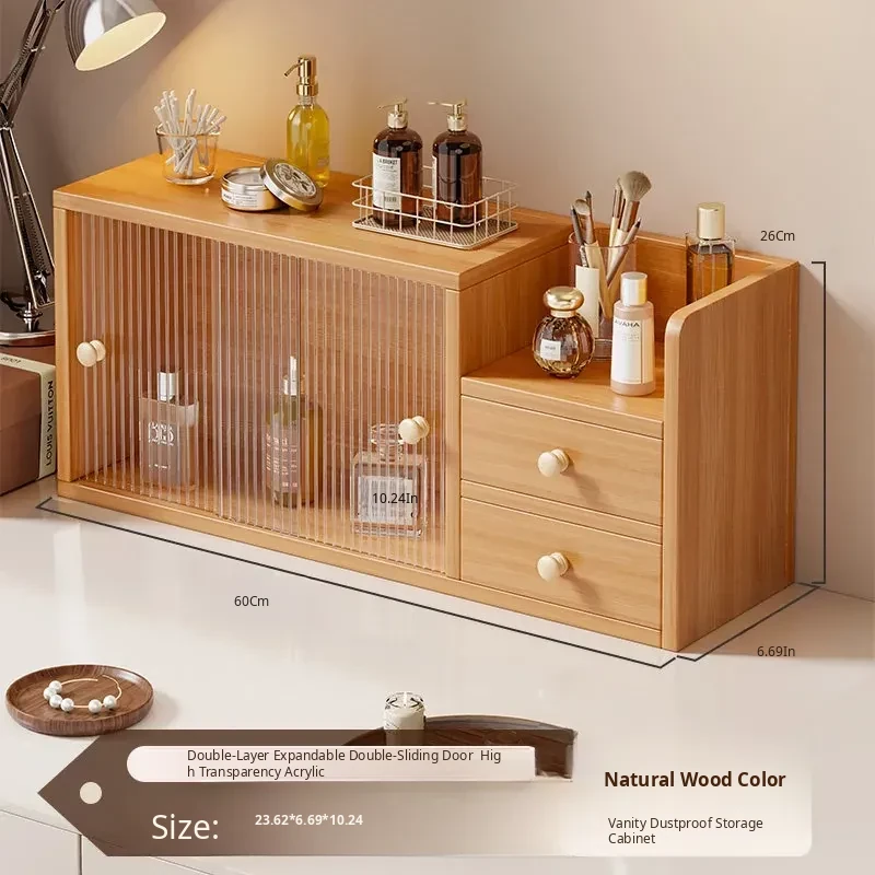 Acrylic Makeup Organizer with Dustproof Design - Stylish Dual-Door Cosmetic Storage Cabinet for Skincare Products, Perfumes, and Lipsticks – Perfect for Your Vanity Table!