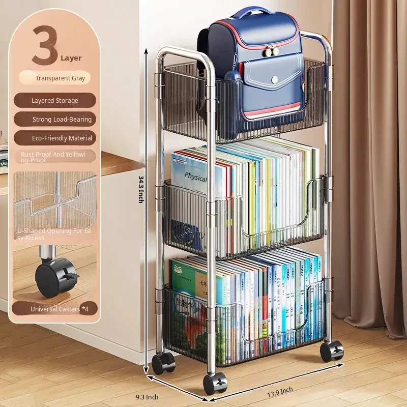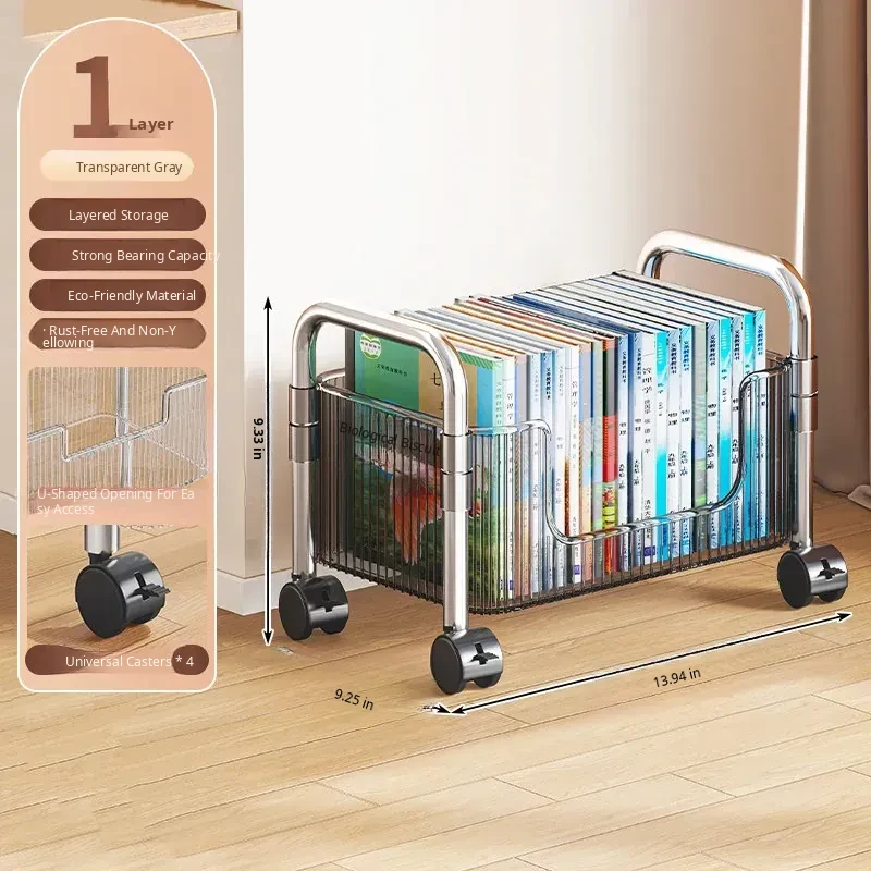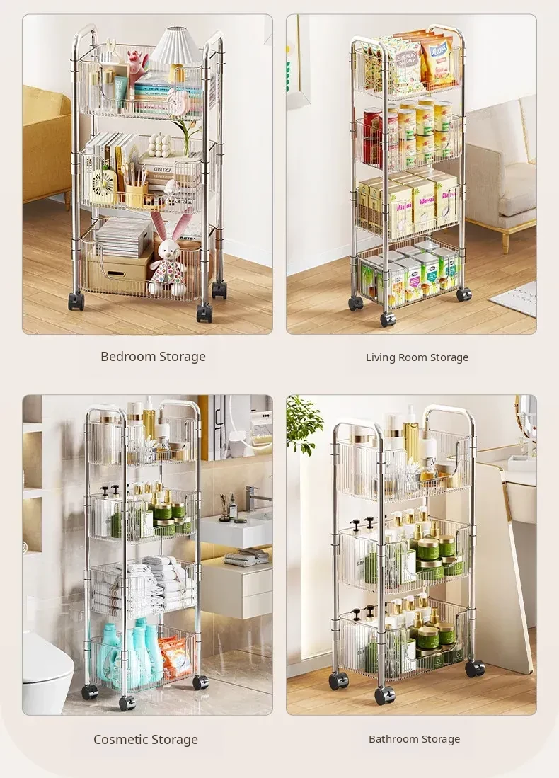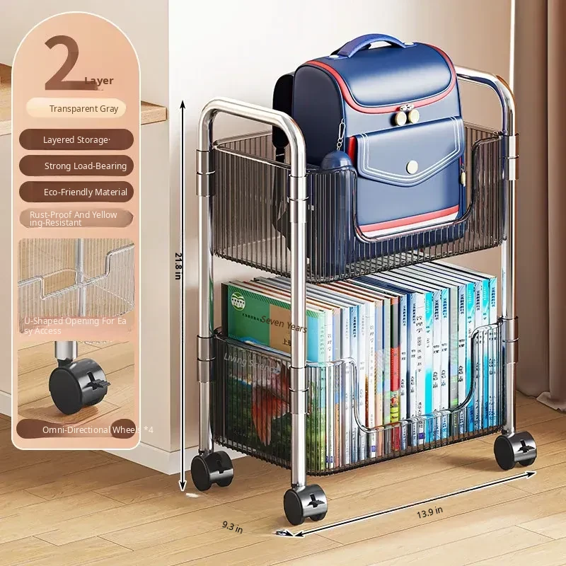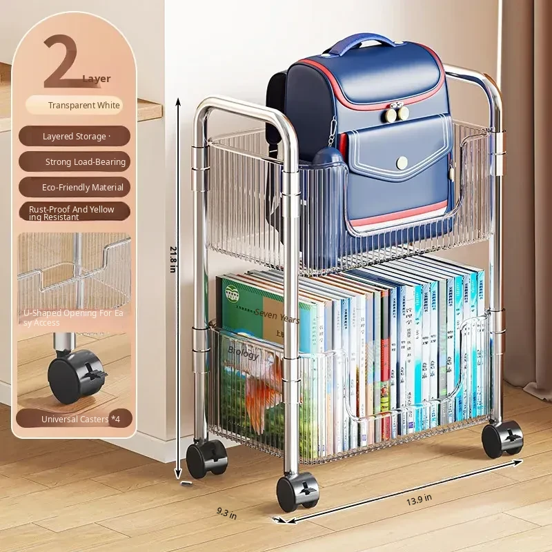 Acrylic Multi-Layer Snack Cart Storage Rack - Mobile Floor Stand for Home Use, Ideal for Organizing Books and Snacks, Space-Saving Design