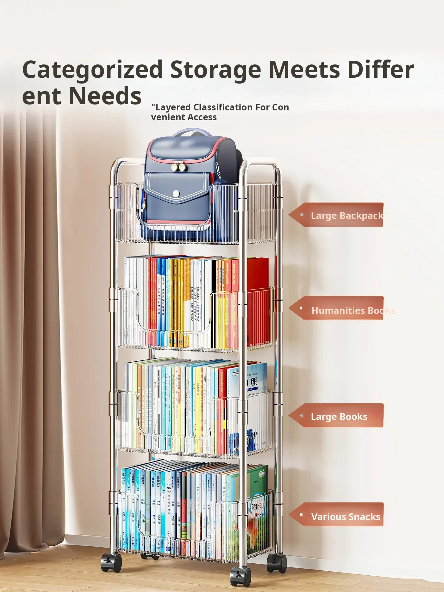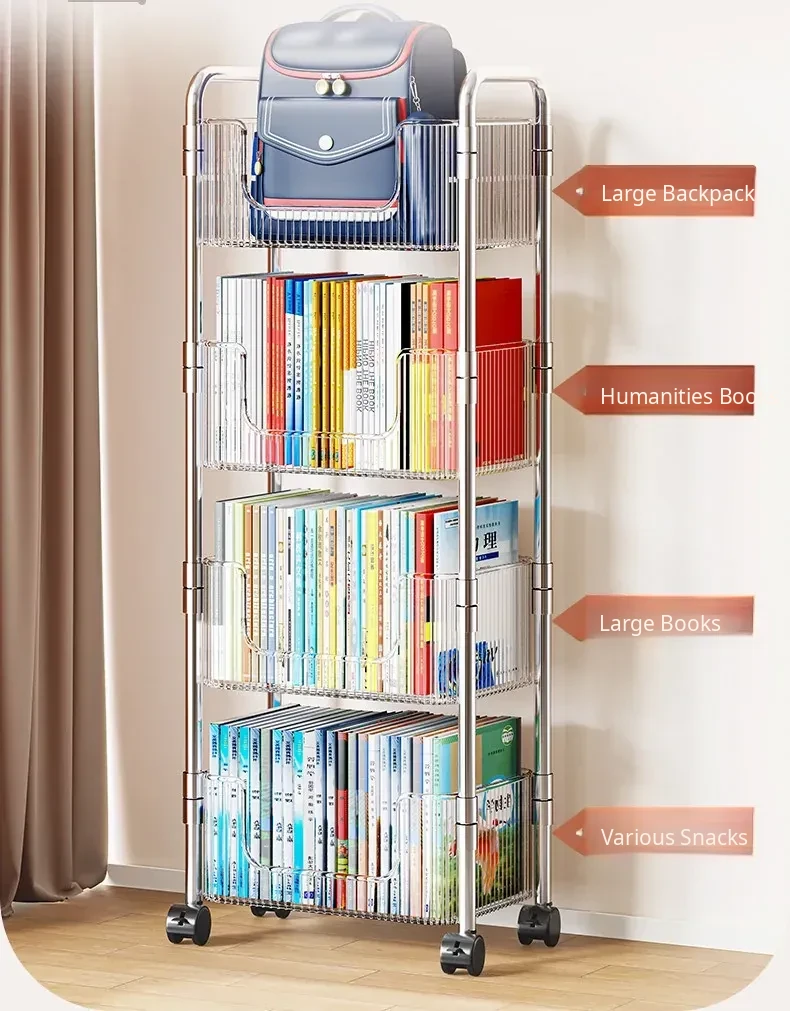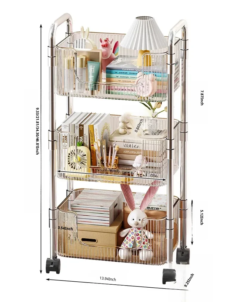 Acrylic Multi-Layer Snack Cart Storage Rack - Mobile Floor Stand for Home Use, Ideal for Organizing Books and Snacks, Space-Saving Design