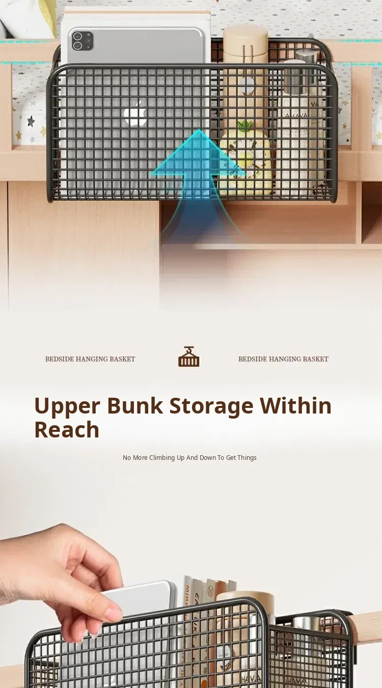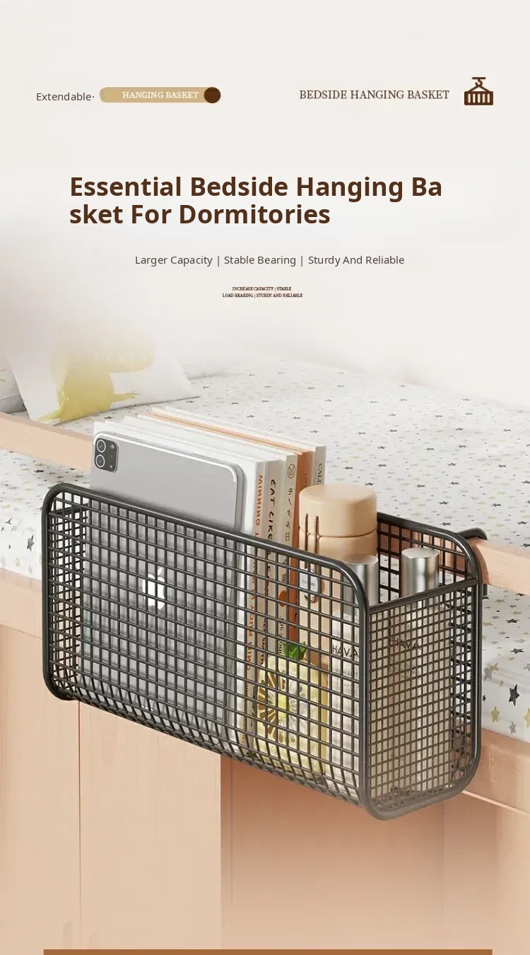 Bedside Hanging Basket - Perfect Dorm Room Storage Solution for Students, Ideal Bedside Organizer for Upper Bunks, Space-Saving Shelf for Essentials and Personal Items.