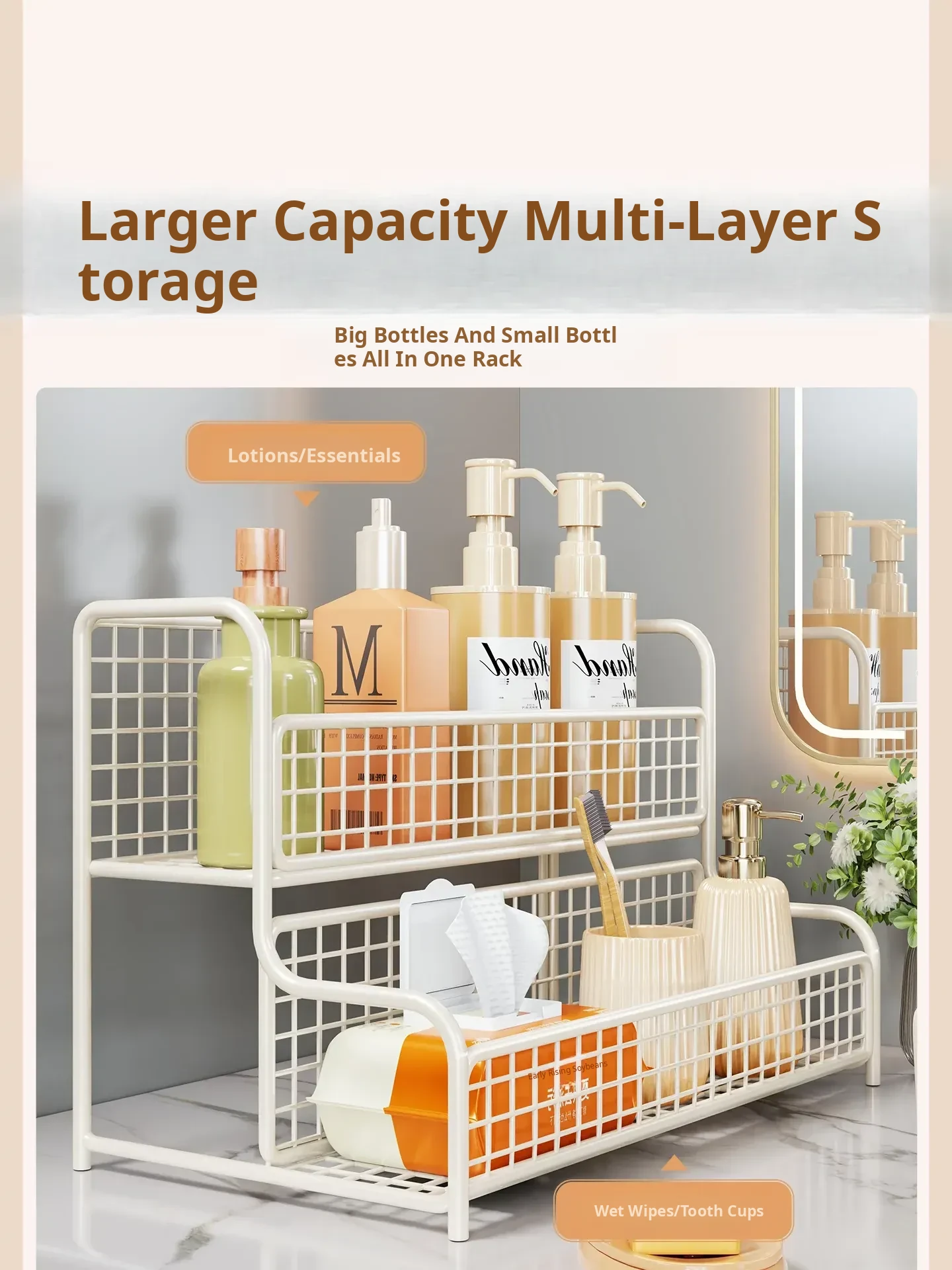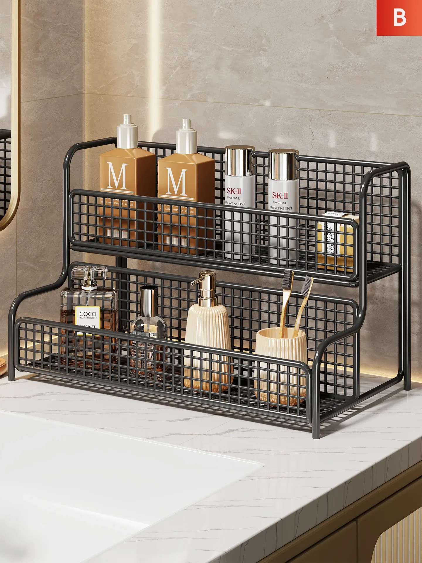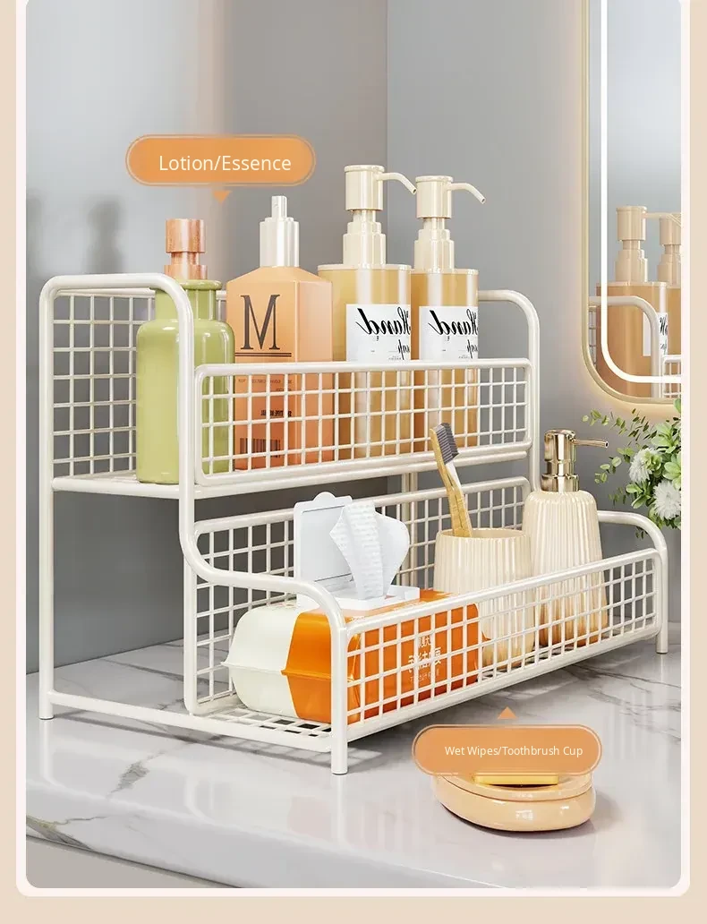 Cosmetic Organizer Shelf for Bathroom Counter - Stylish Storage Rack for Skincare Products, Makeup, and Toiletries - Perfect for Your Vanity and Washbasin Area