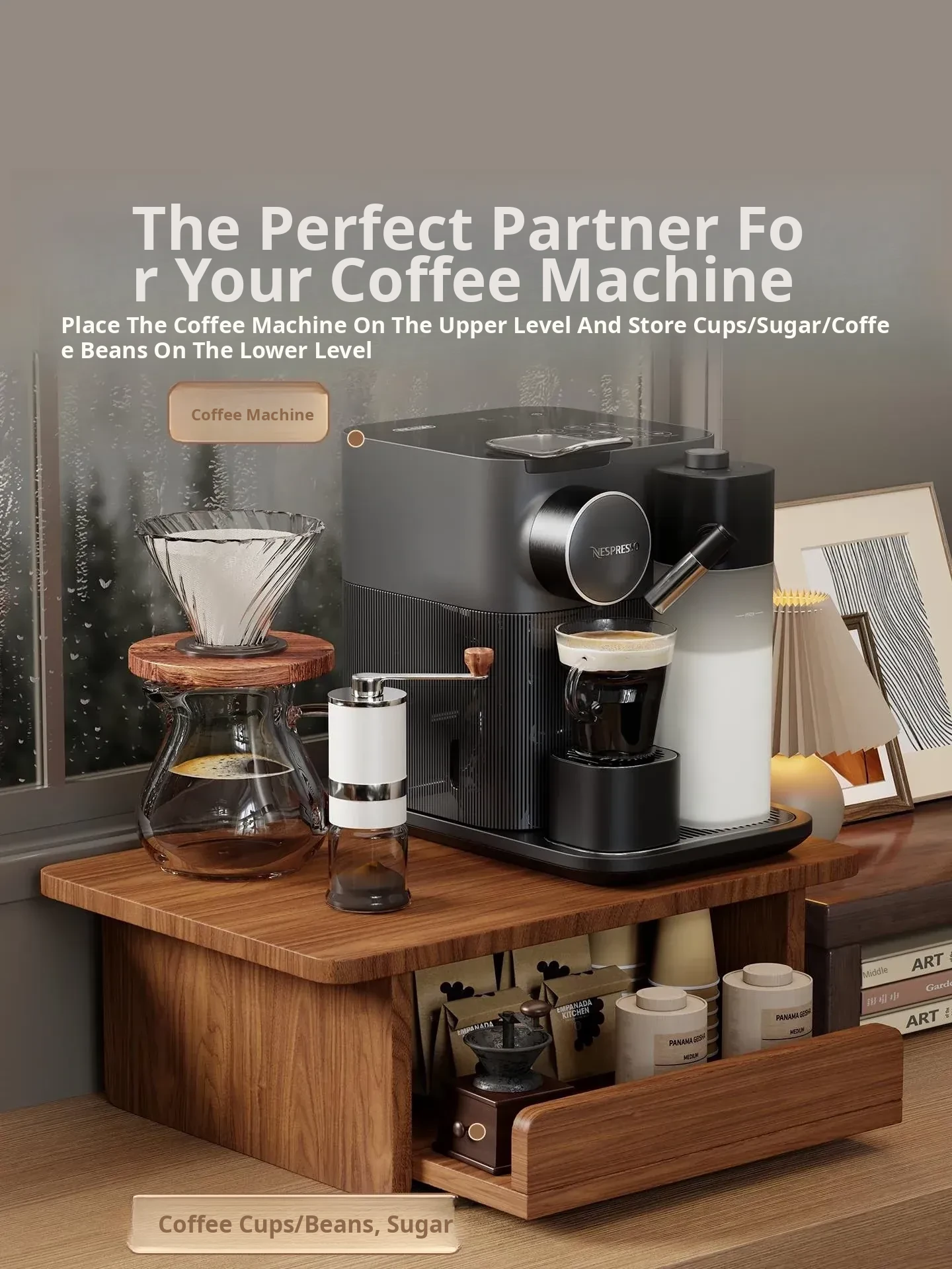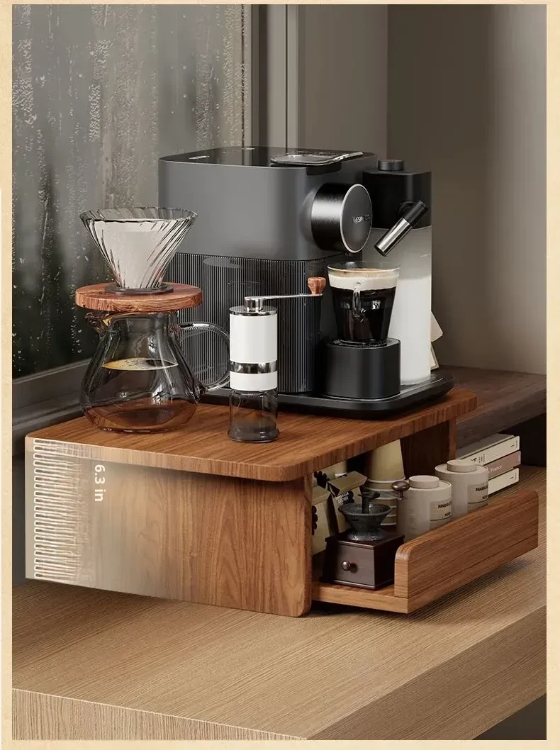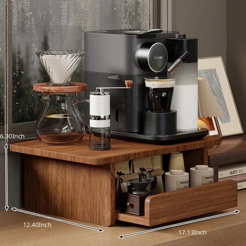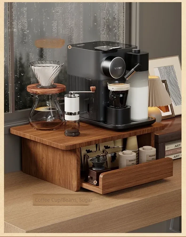 Countertop Coffee Machine Storage Rack with Drawer for Tea Bags and Mugs - Dustproof Cup Organizer for Kitchen and Microwave Bar