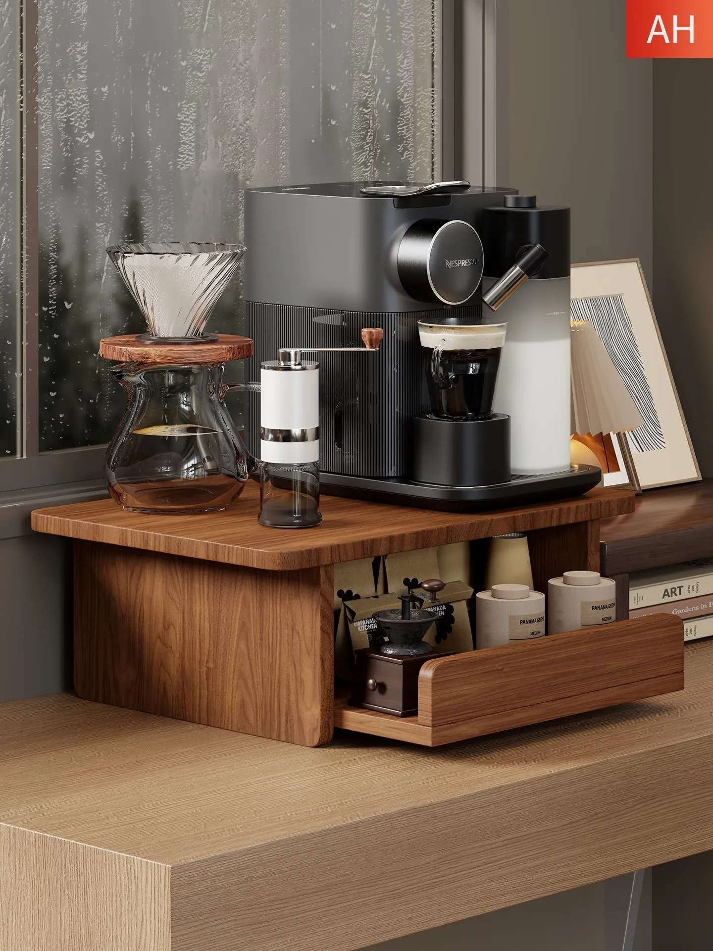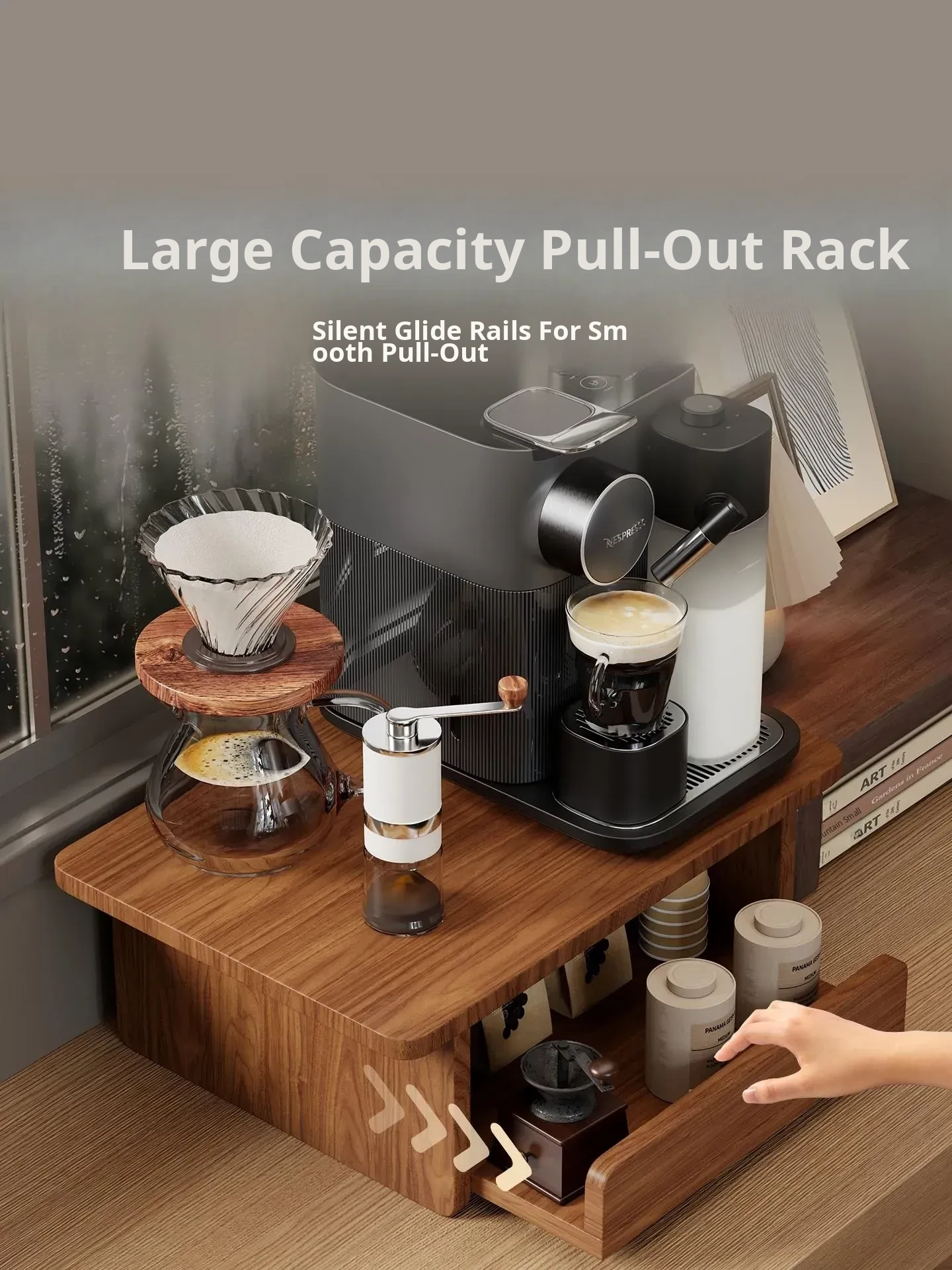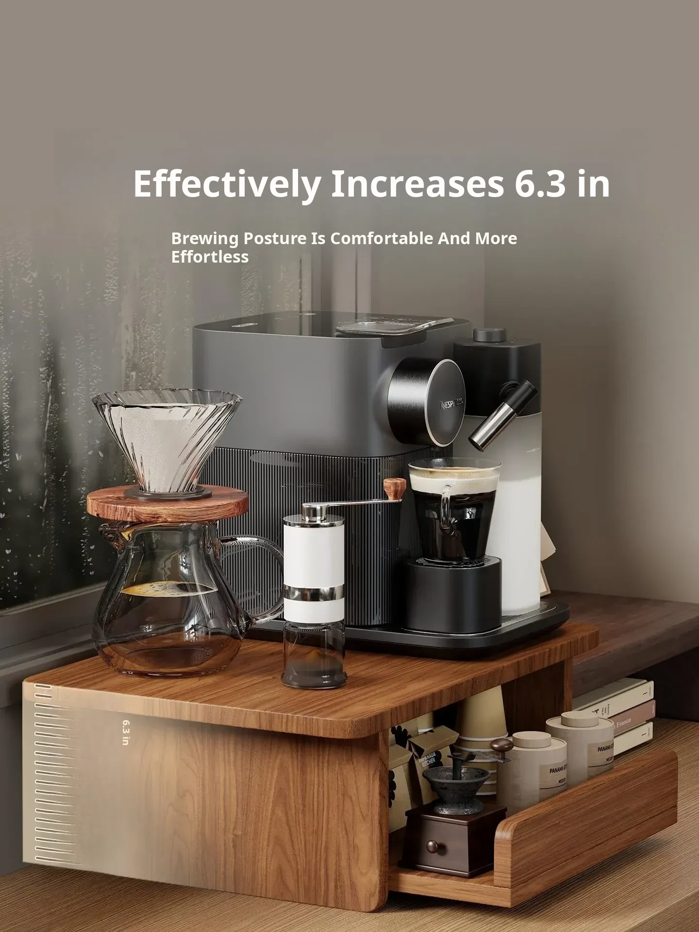 Countertop Coffee Machine Storage Rack with Drawer for Tea Bags and Mugs - Dustproof Cup Organizer for Kitchen and Microwave Bar