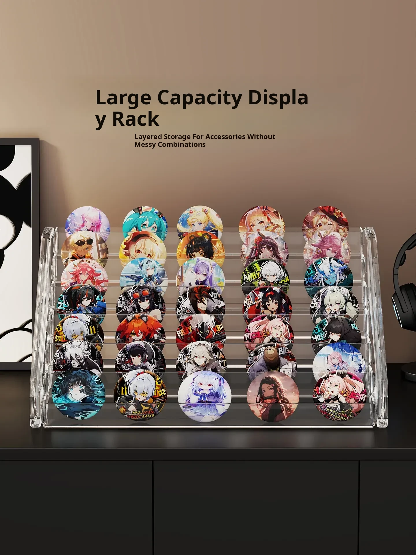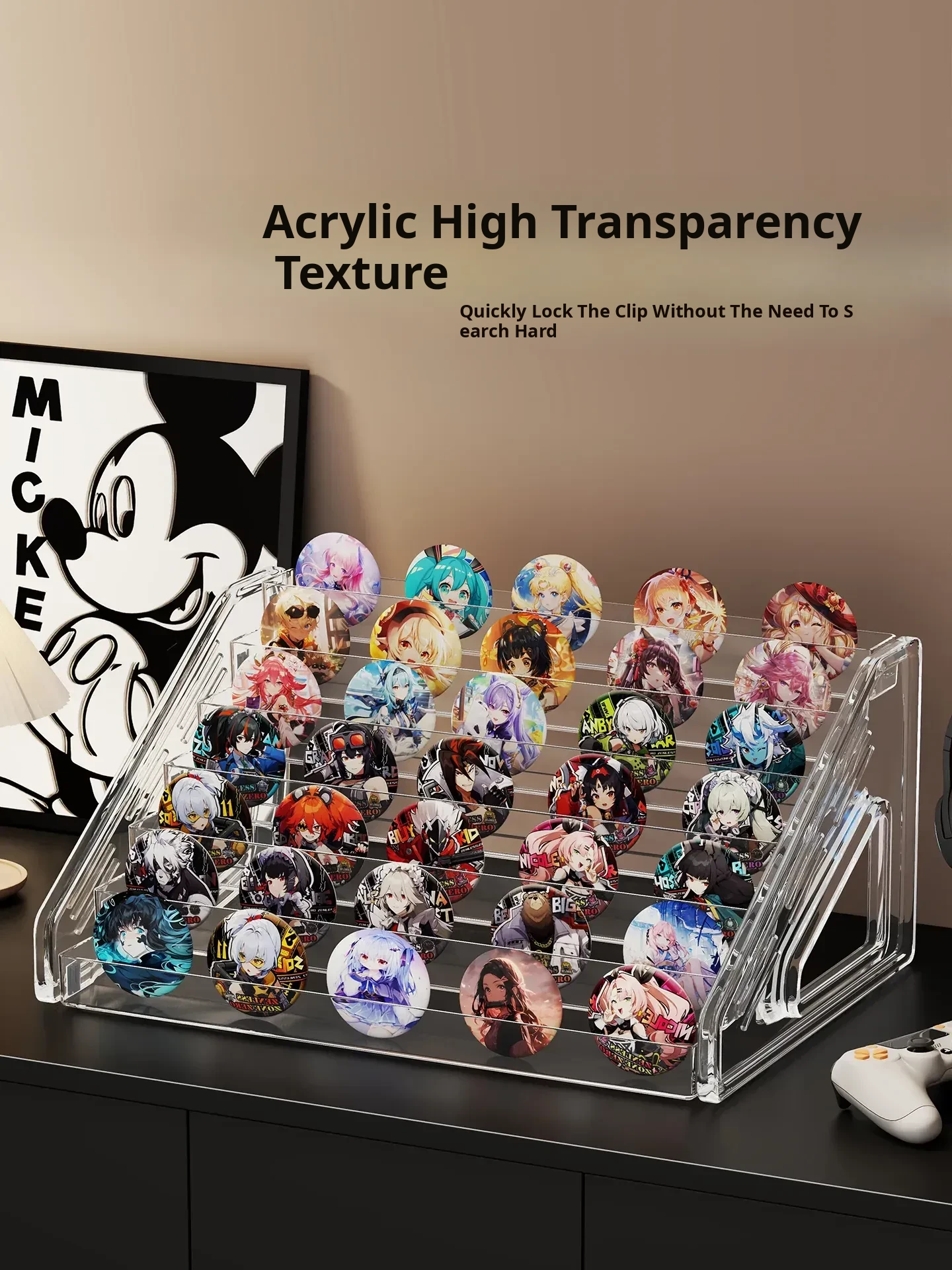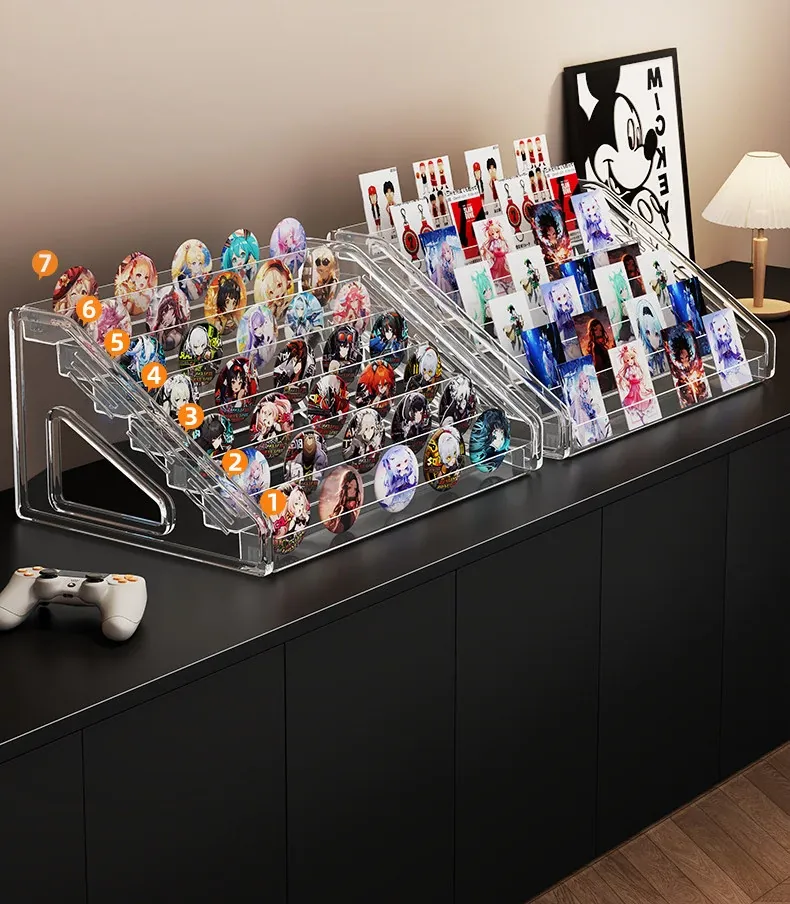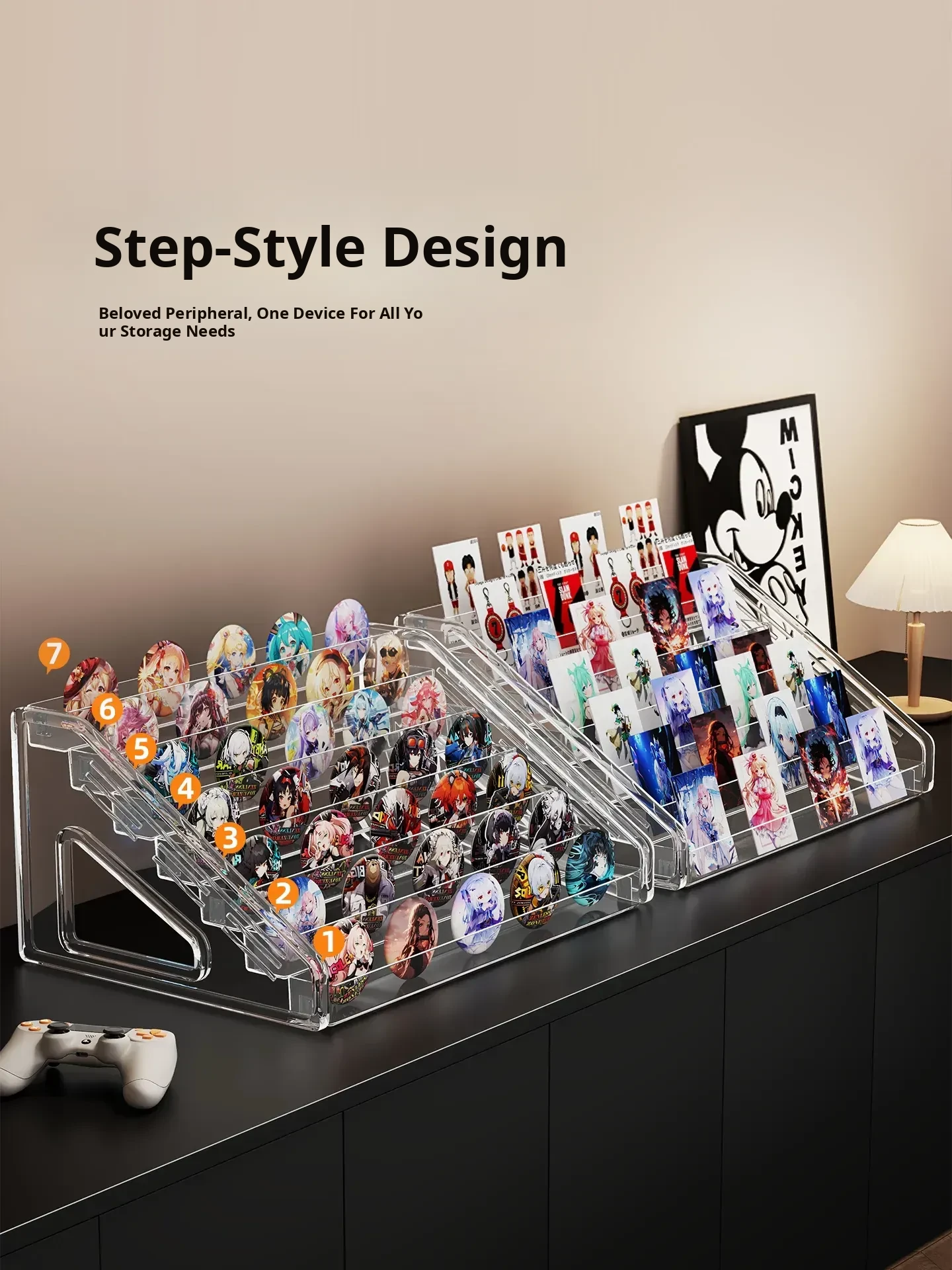 Desktop Acrylic Display Stand for Badges and Cards - Tiered Storage Organizer for Collectibles and Accessories