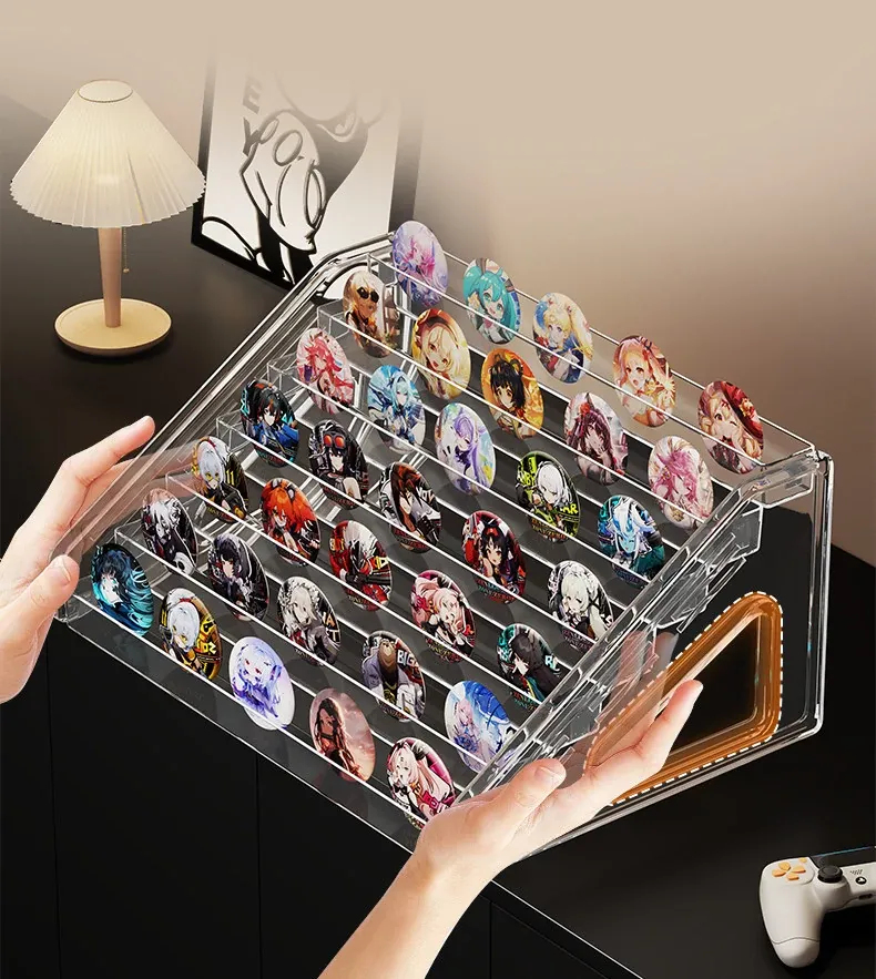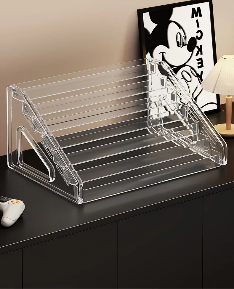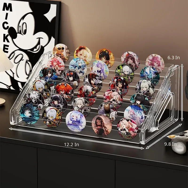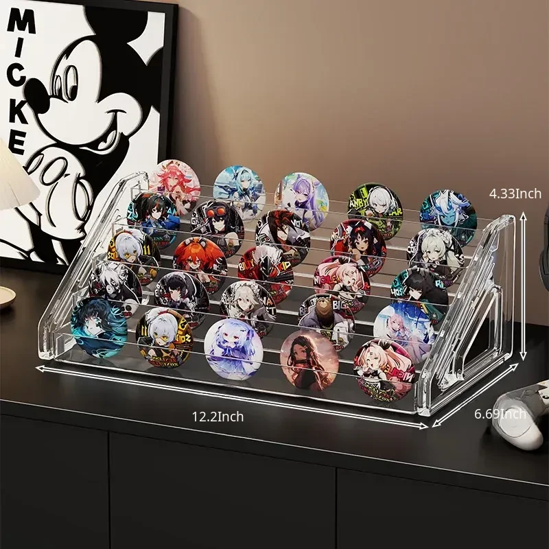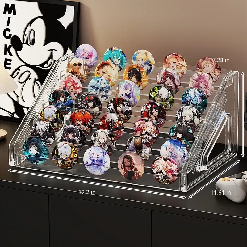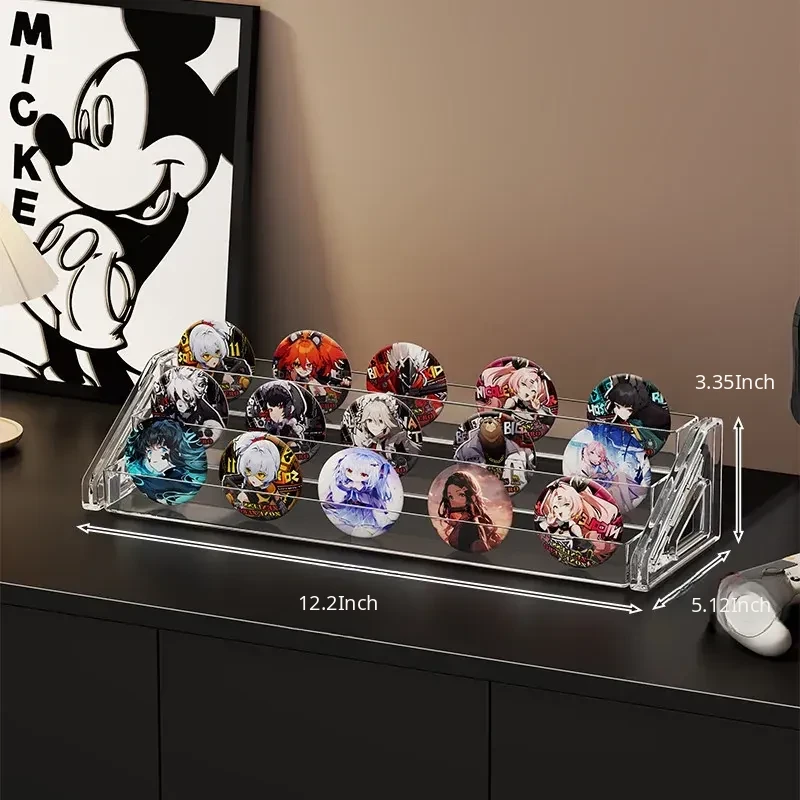 Desktop Acrylic Display Stand for Badges and Cards - Tiered Storage Organizer for Collectibles and Accessories