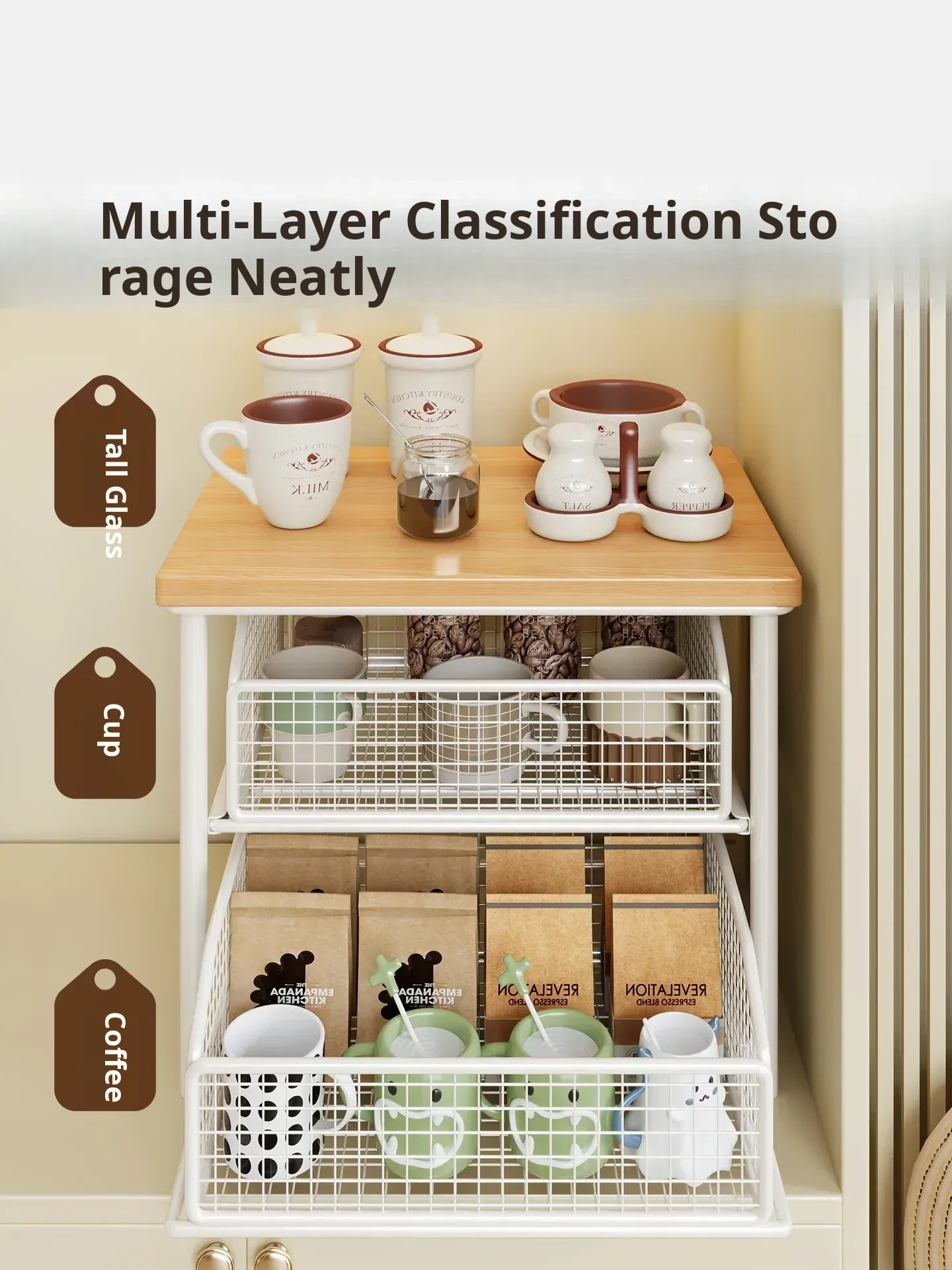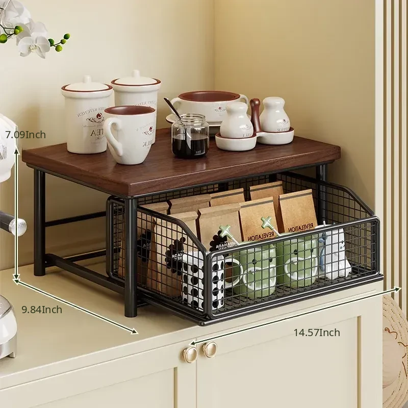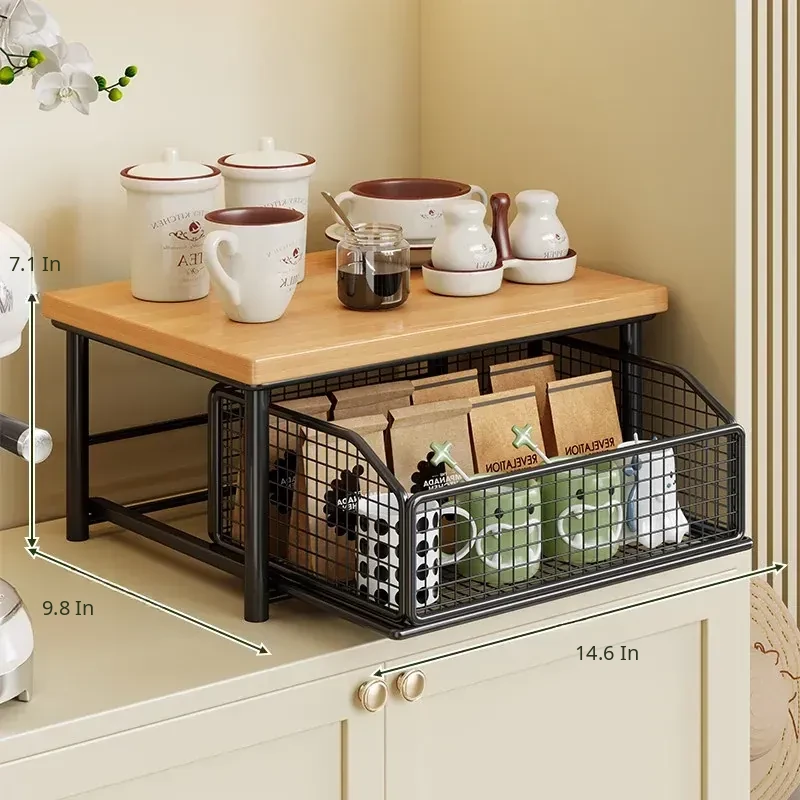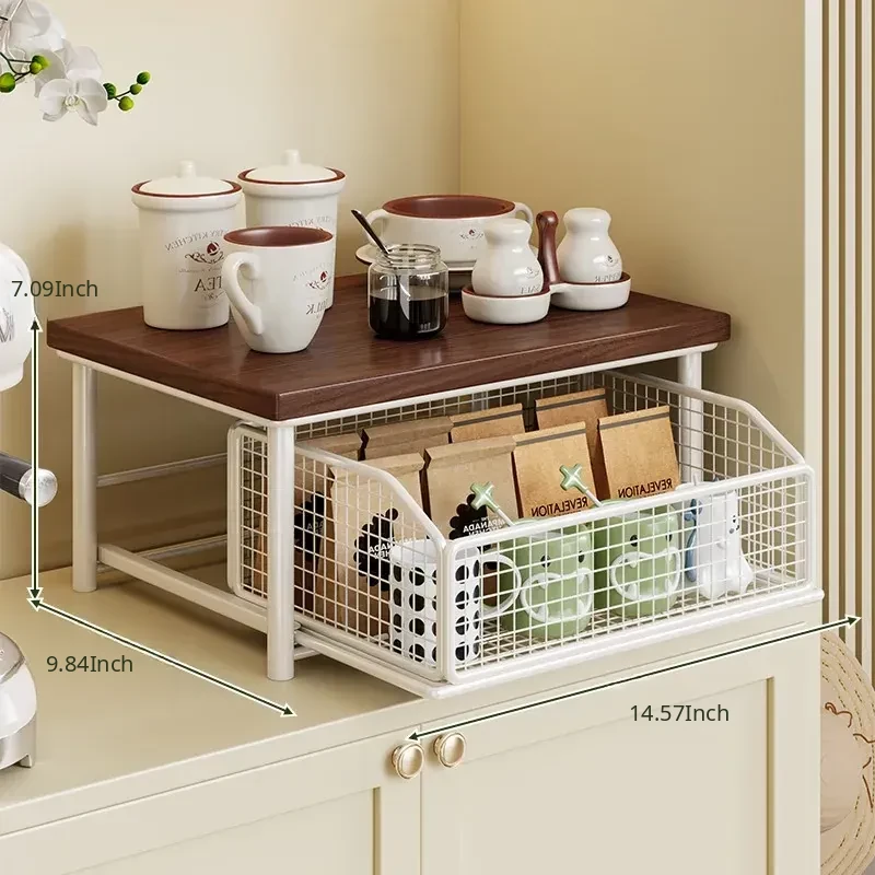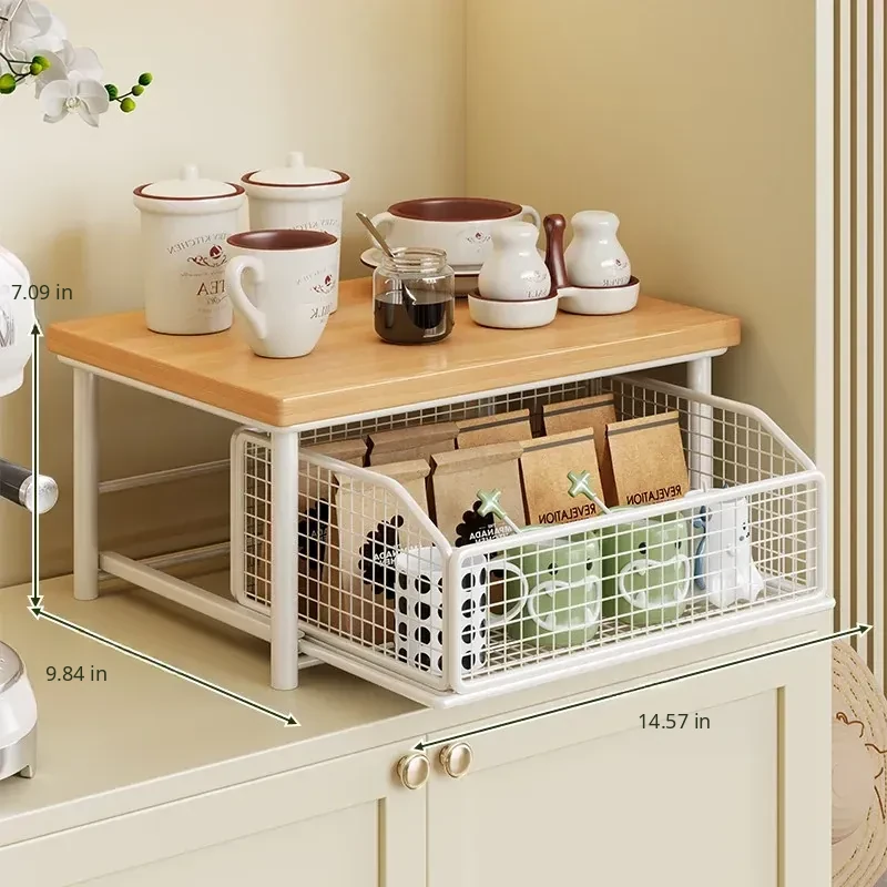 Desktop Storage Rack for Tea and Coffee - Space-Saving Organizer for Kitchen Countertop, Perfect for Tea Bags, Coffee Machines, and Microwave Ovens - Pull-Out Design for Easy Access and Clutter-Free Living