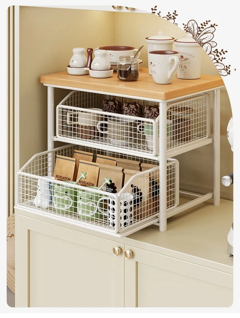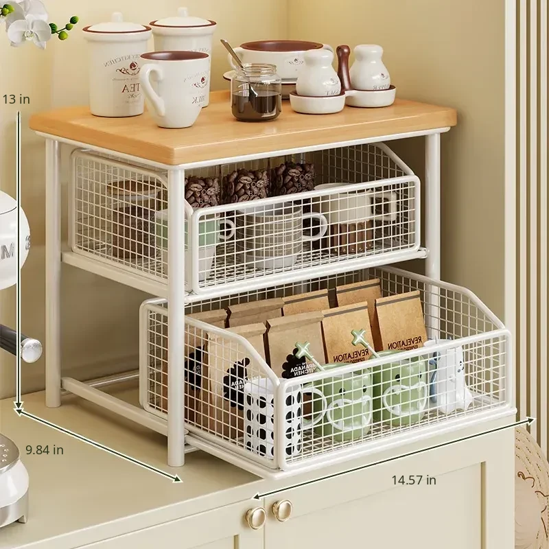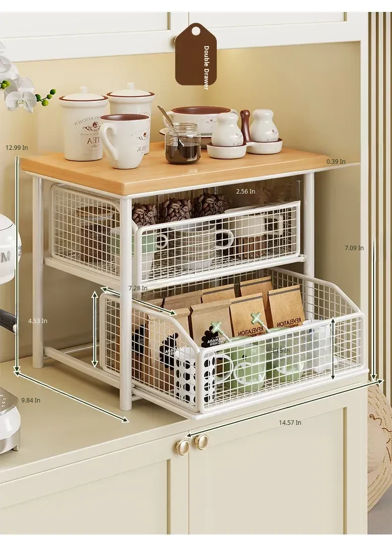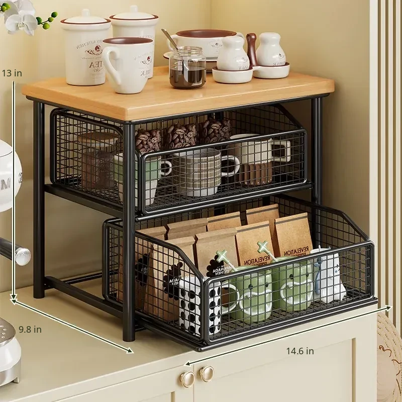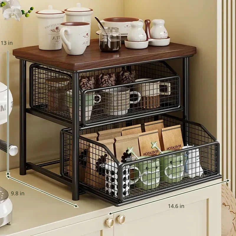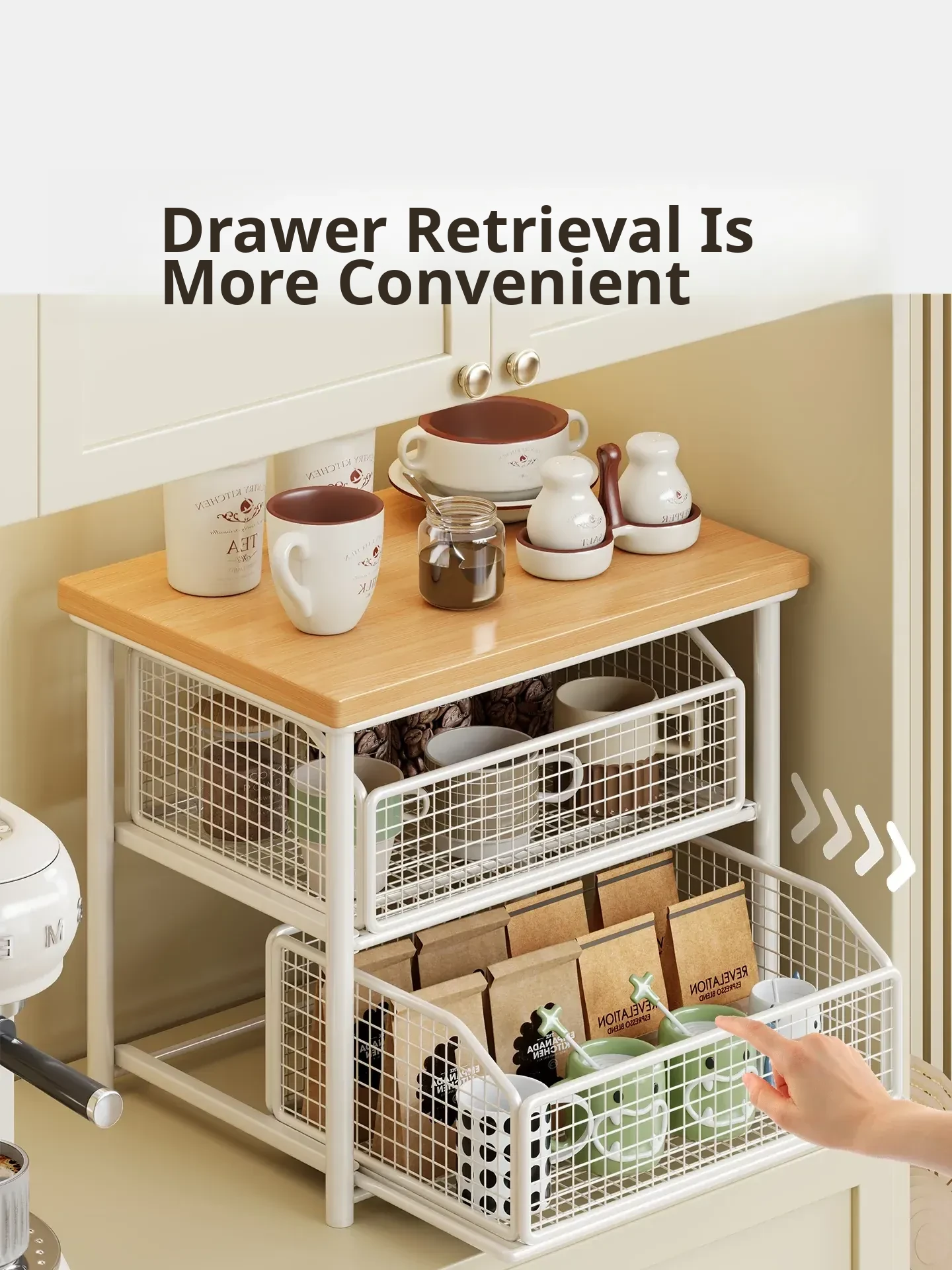 Desktop Storage Rack for Tea and Coffee - Space-Saving Organizer for Kitchen Countertop, Perfect for Tea Bags, Coffee Machines, and Microwave Ovens - Pull-Out Design for Easy Access and Clutter-Free Living