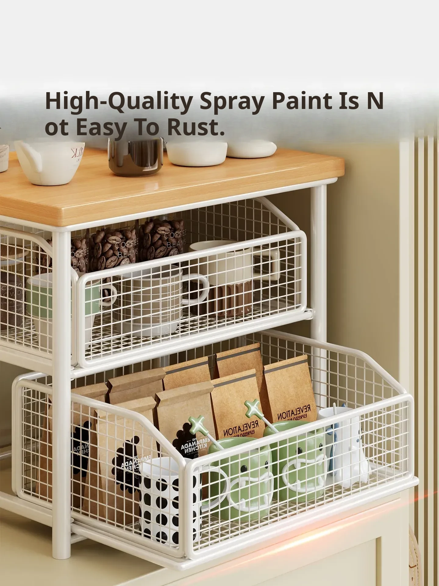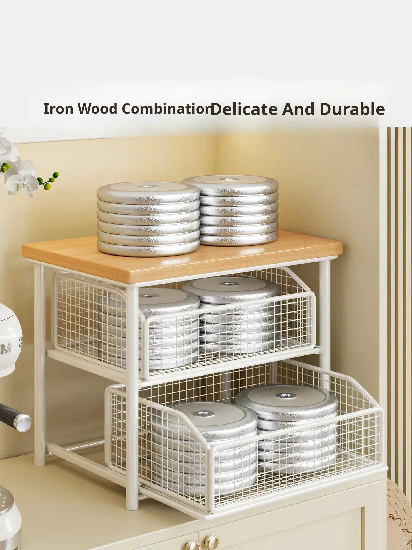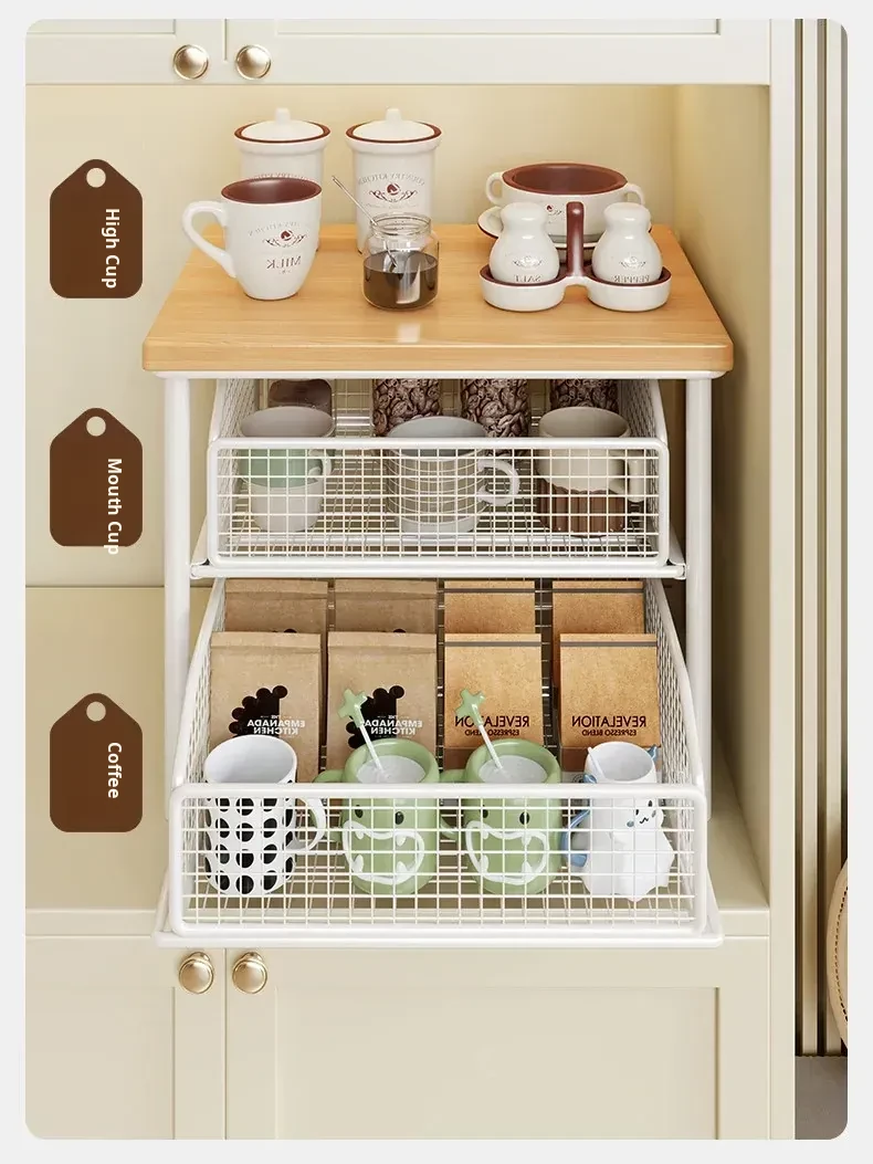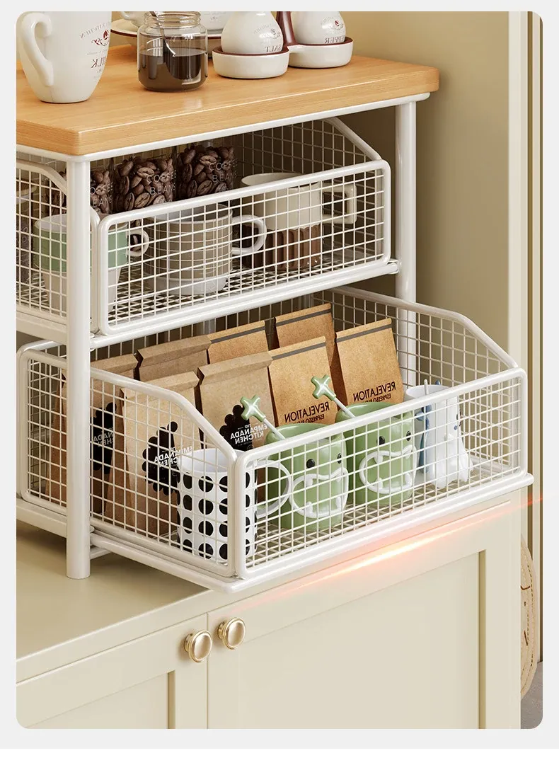 Desktop Storage Rack for Tea and Coffee - Space-Saving Organizer for Kitchen Countertop, Perfect for Tea Bags, Coffee Machines, and Microwave Ovens - Pull-Out Design for Easy Access and Clutter-Free Living