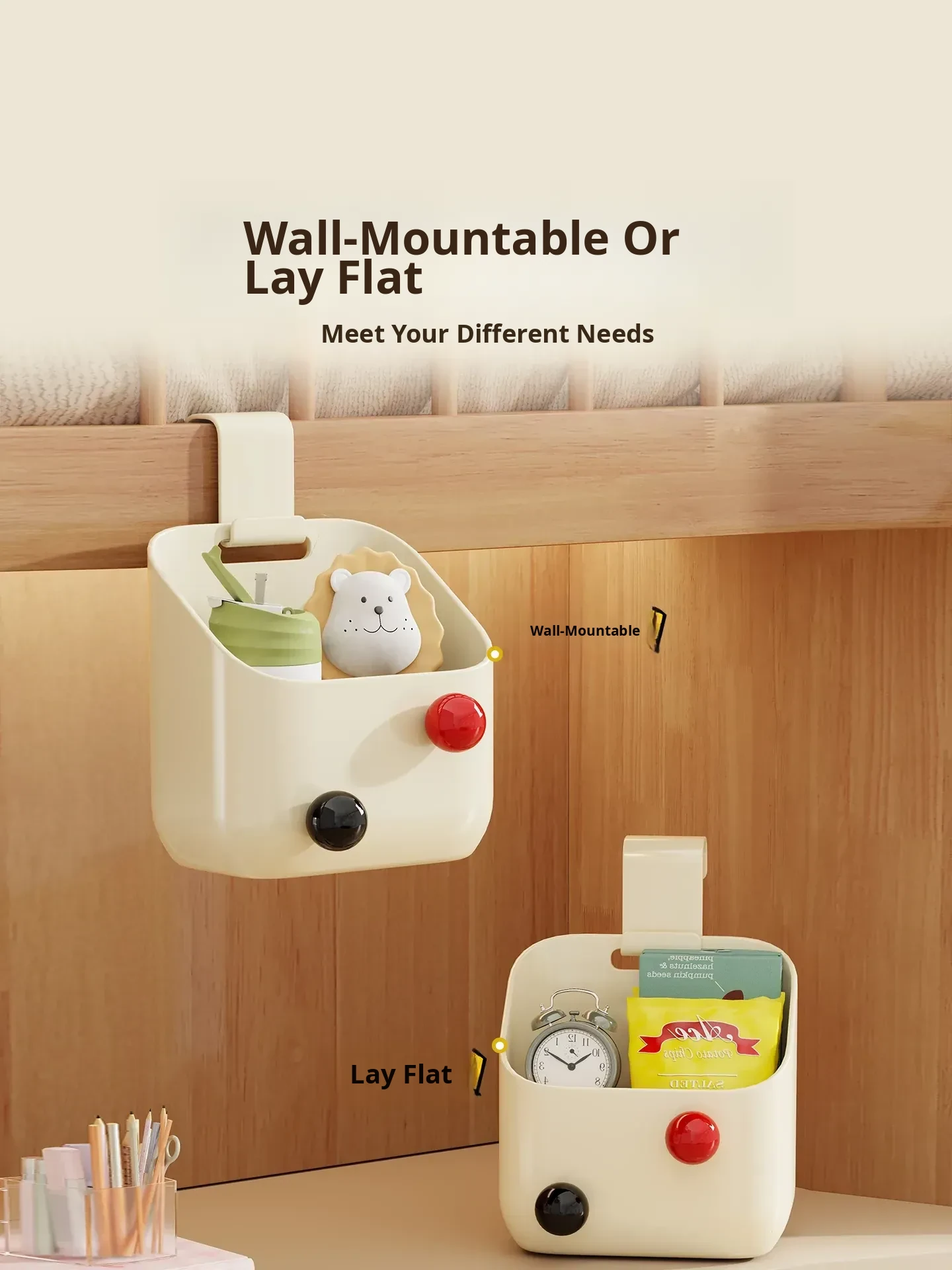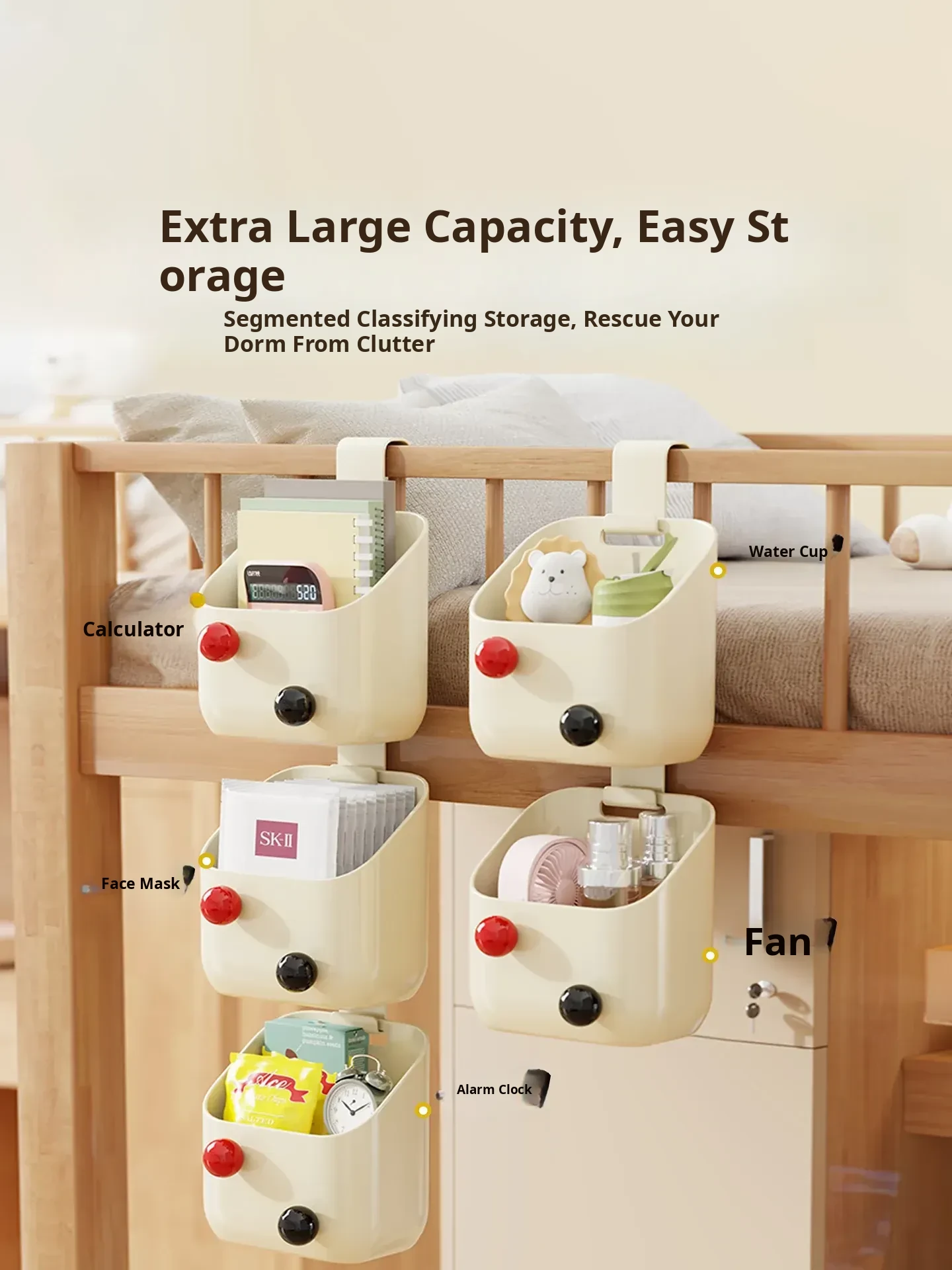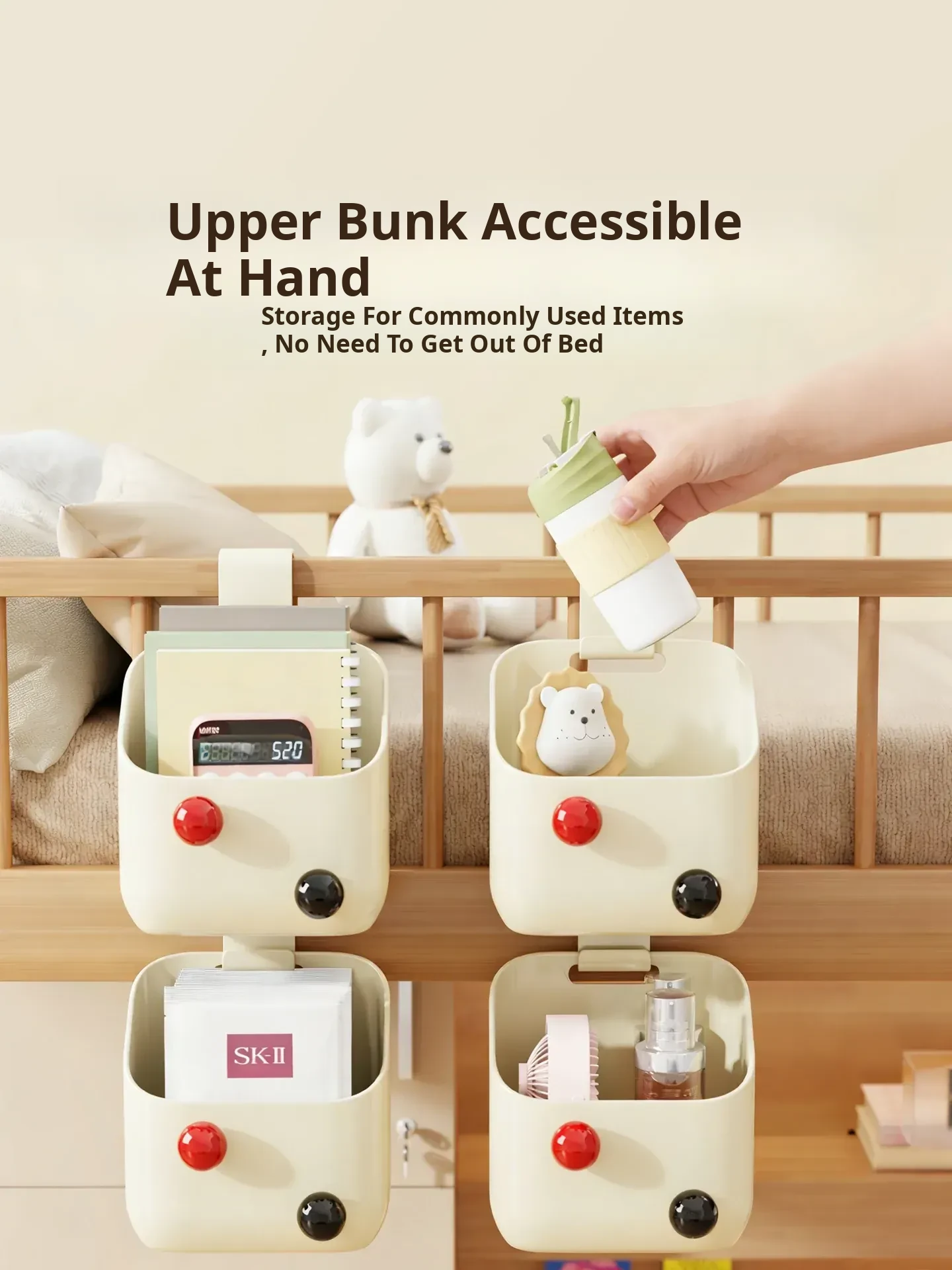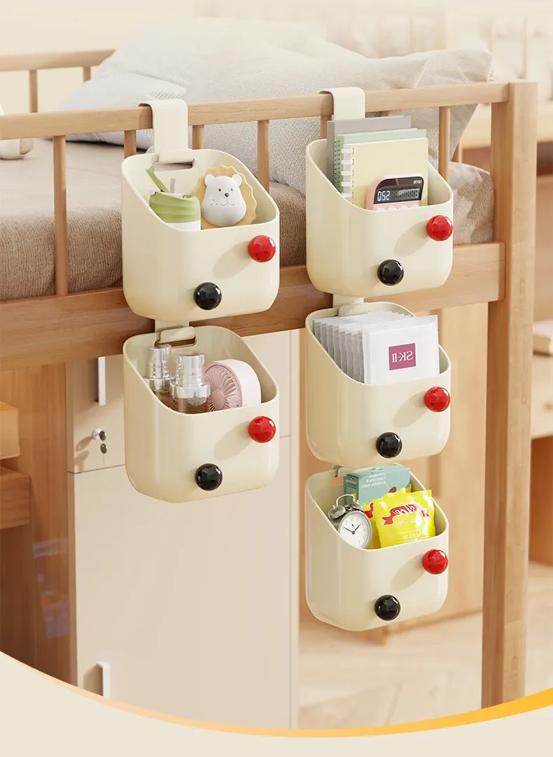 Dorm Room Bedside Hanging Basket - No Drill Multi-Layer Storage Rack for Students' Rooms, Space-Saving Hanging Organizer and Storage Bin