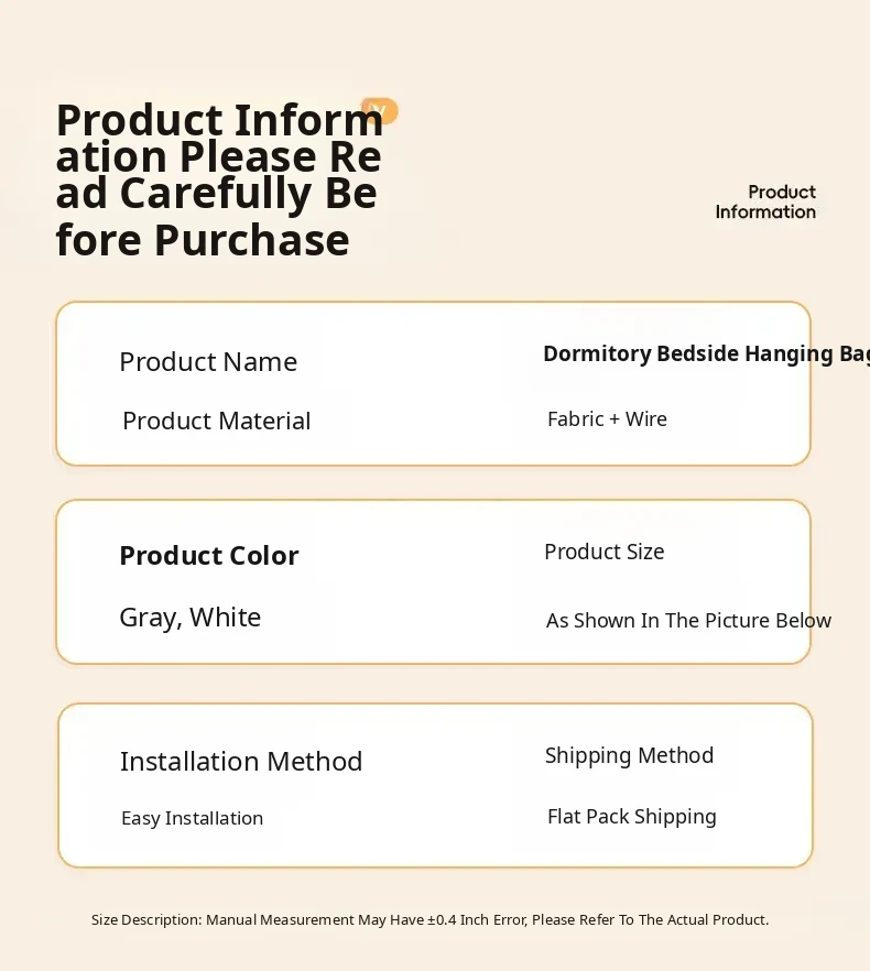 Dormitory Bedside Hanging Storage Bag - No Drill, Multi-Layer Organizing Pouch for Upper Bunk, Fabric Storage Solution for Easy Access to Essentials