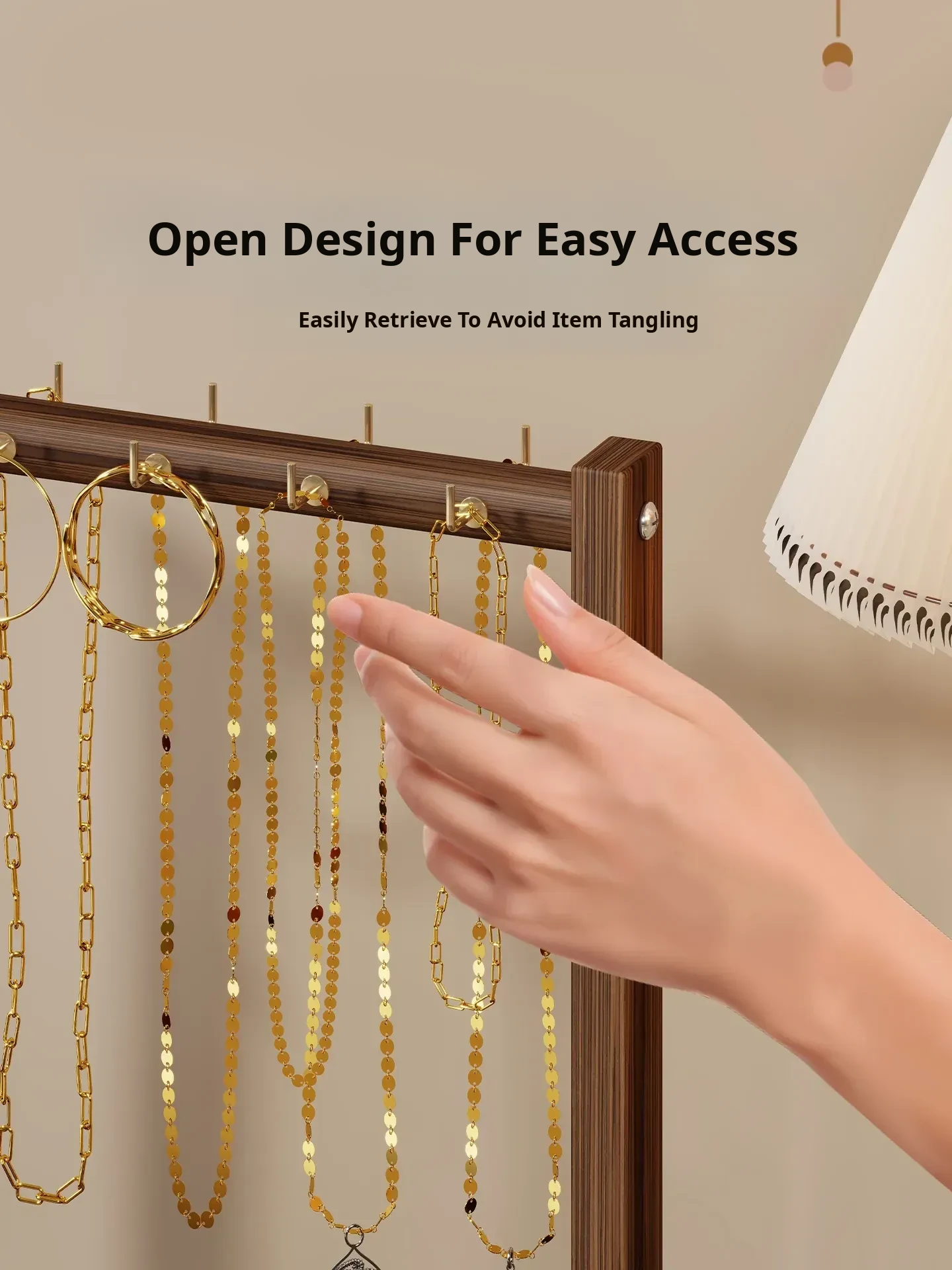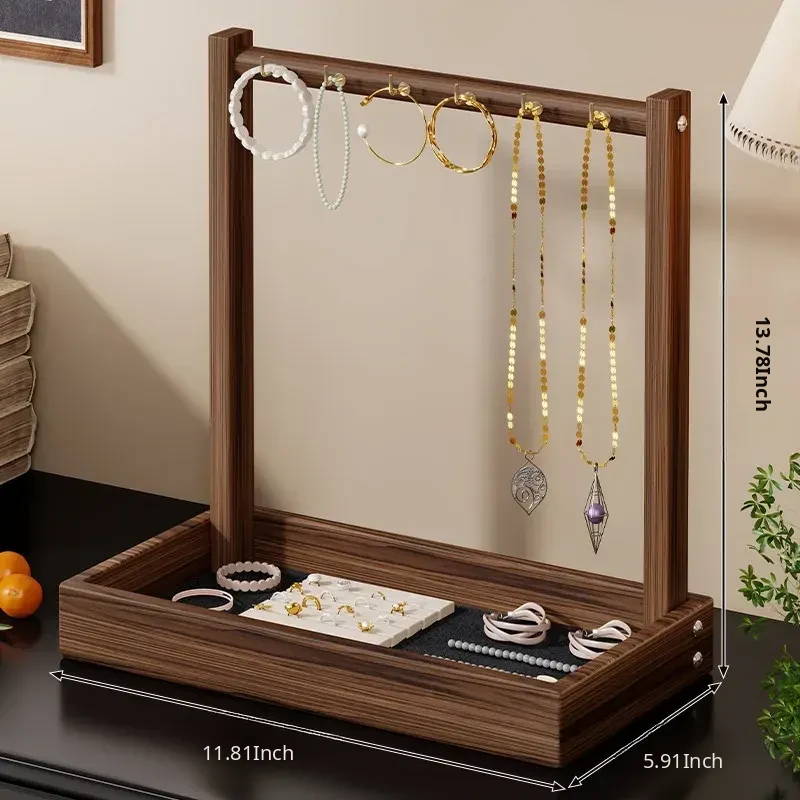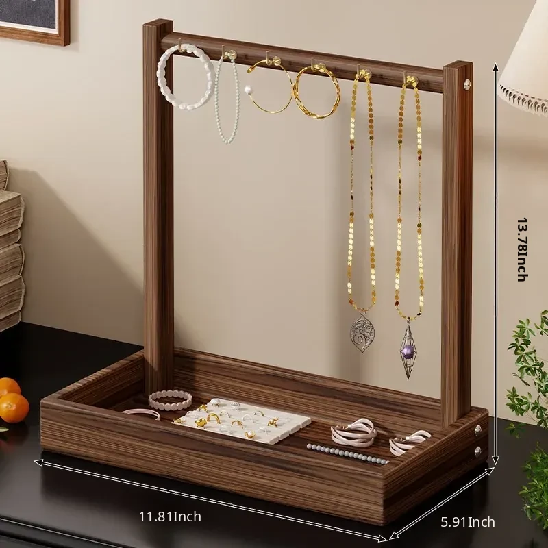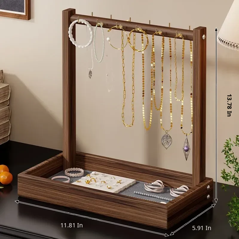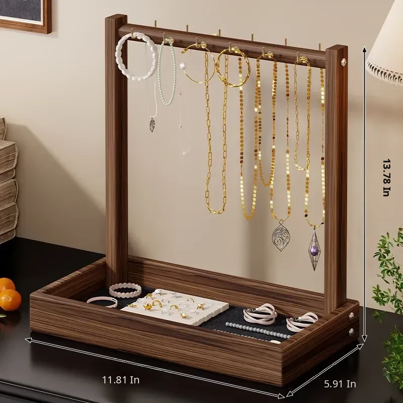 Elegant Wooden Desktop Necklace Display Stand - Jewelry Organizer for Bracelets, Watches, and Accessories - Perfect for Showcasing Your Treasures!