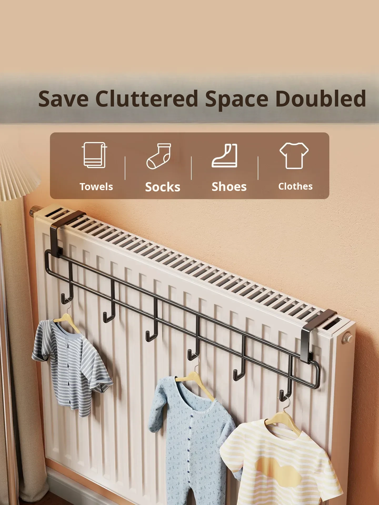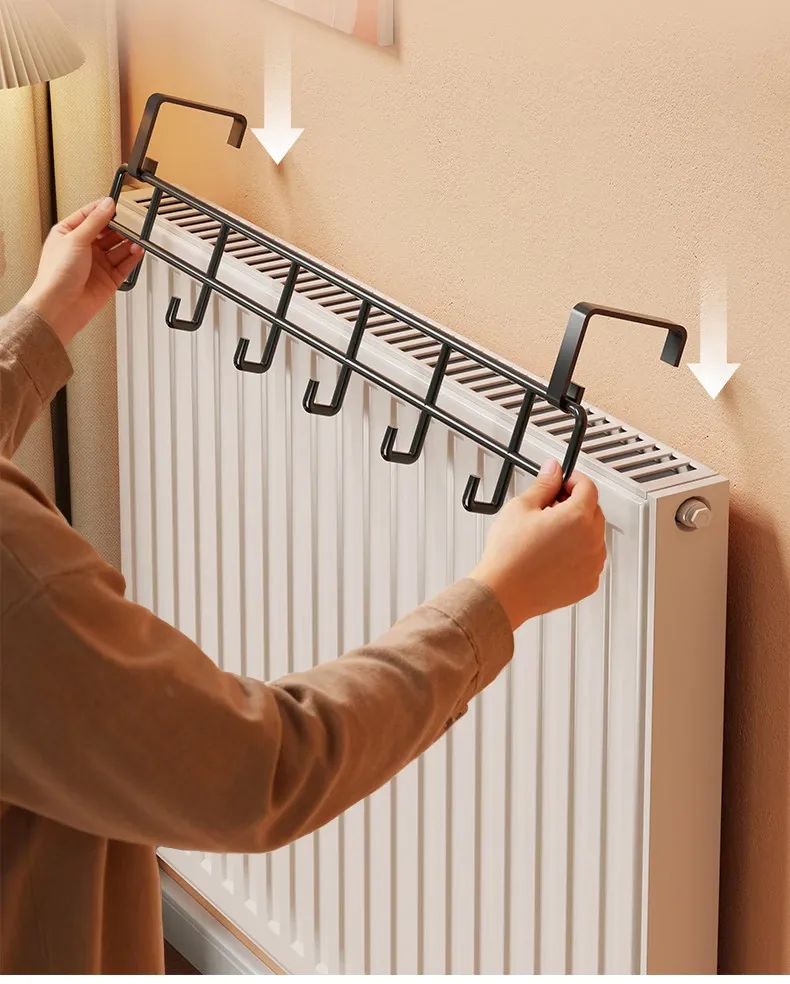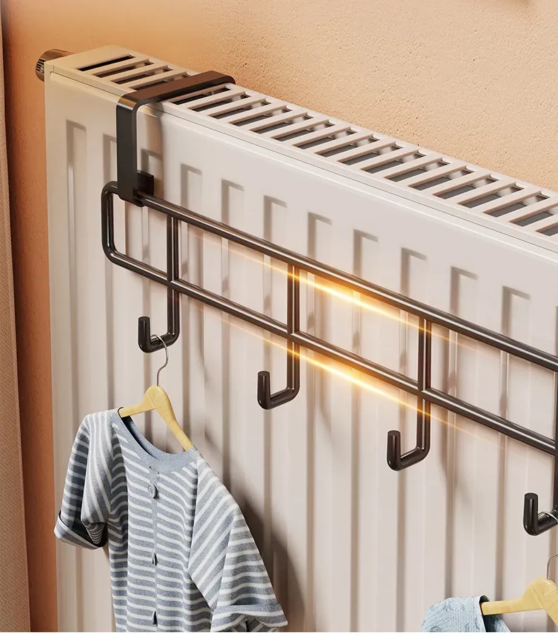 Heated Towel Rack with Multi-Purpose Hooks – No Drill, Temperature Resistant Storage Solution for Socks and Towels, Perfect for Bathroom Organization!