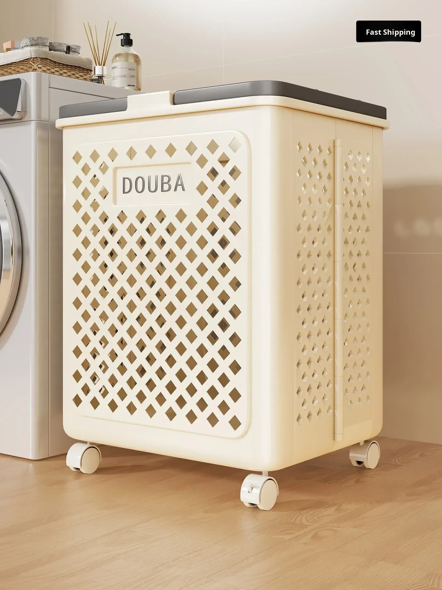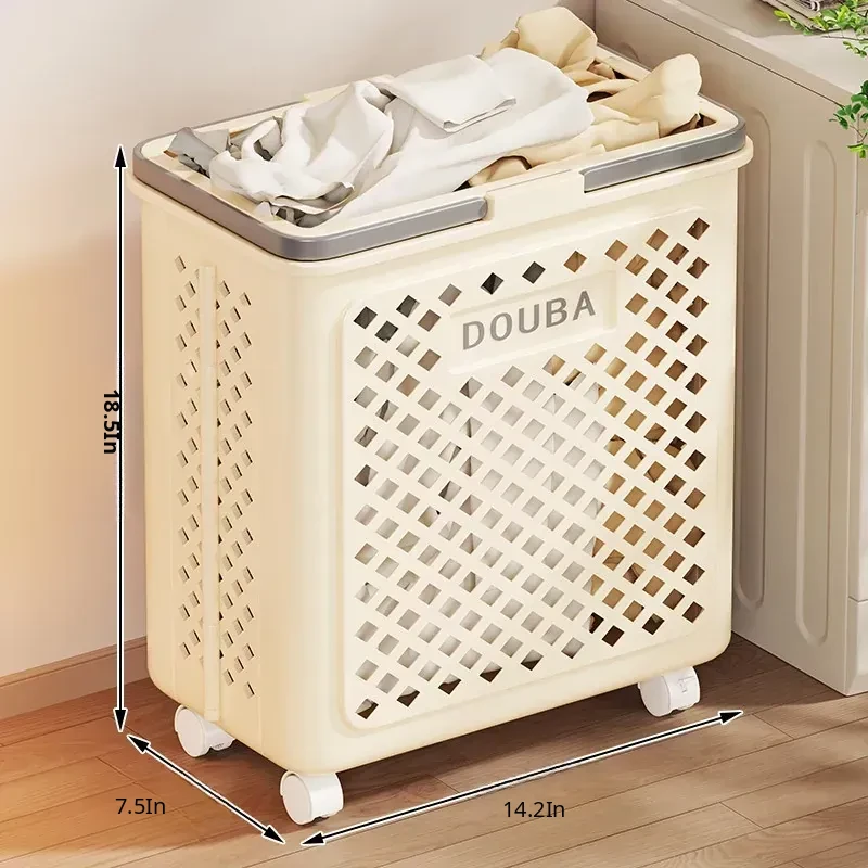 Large Capacity Laundry Basket with Wheels - Mobile Dirty Clothes Storage Bin for Home, Bathroom, and Laundry Room