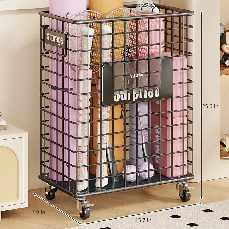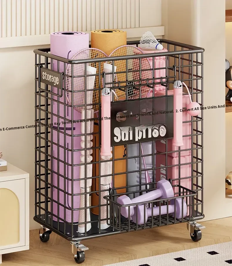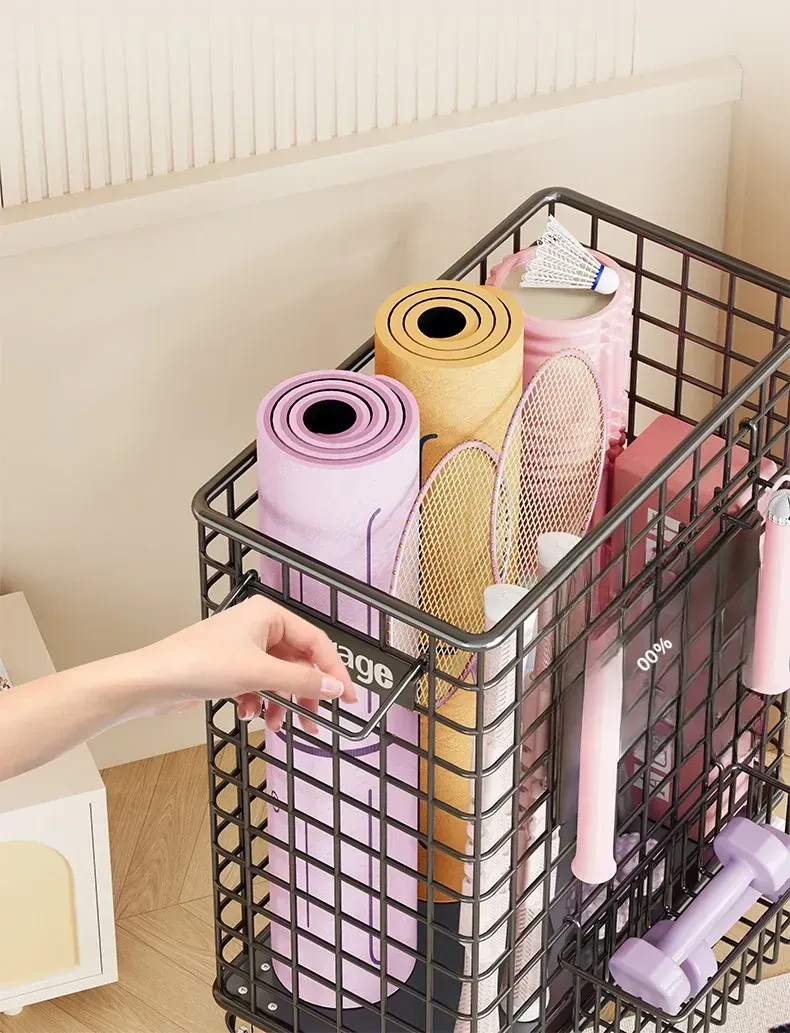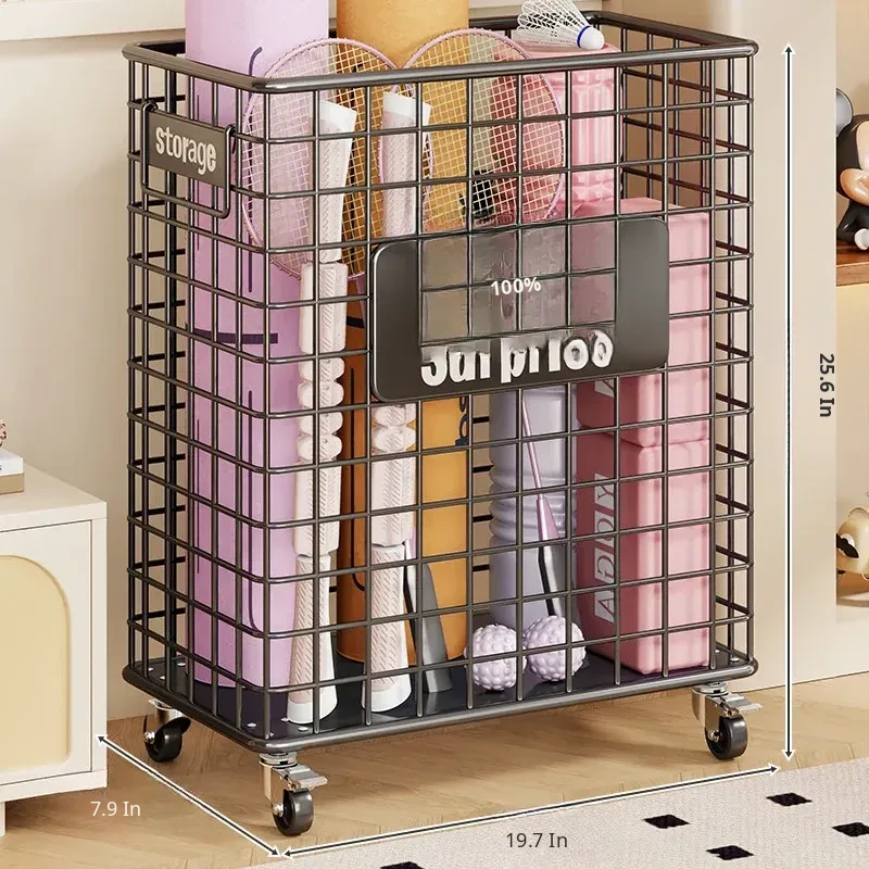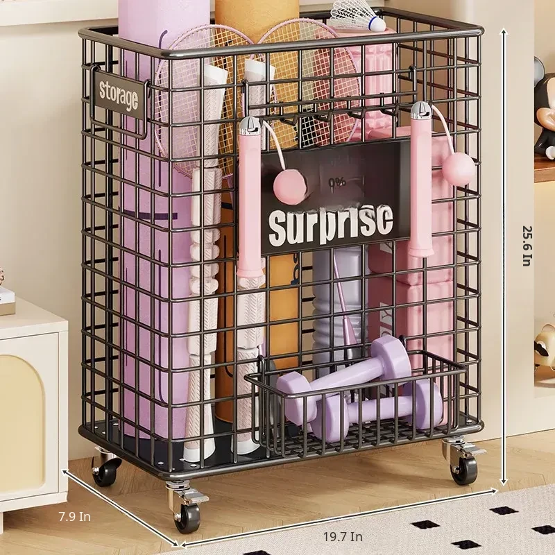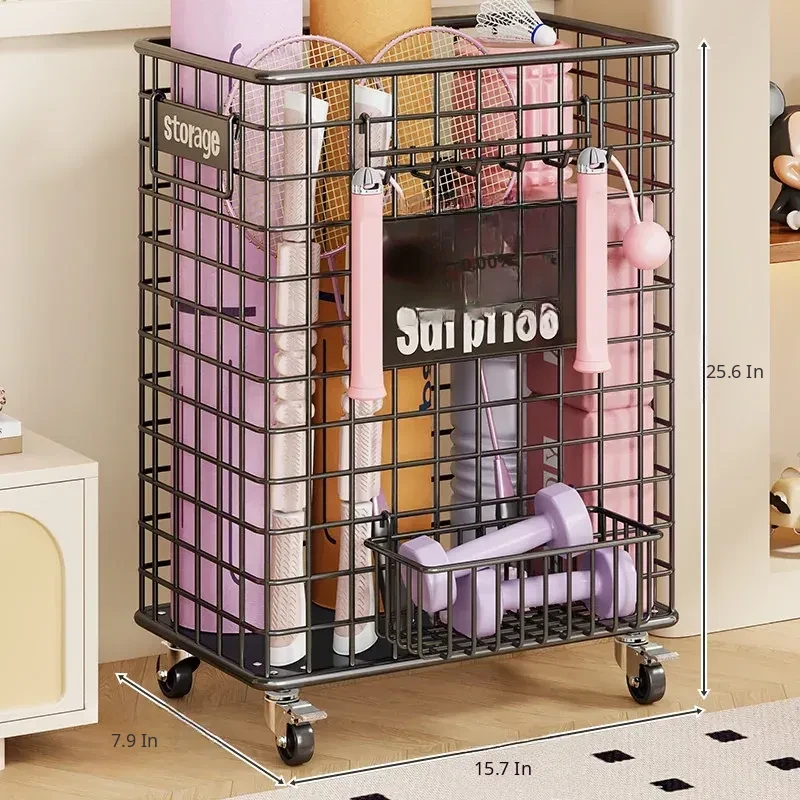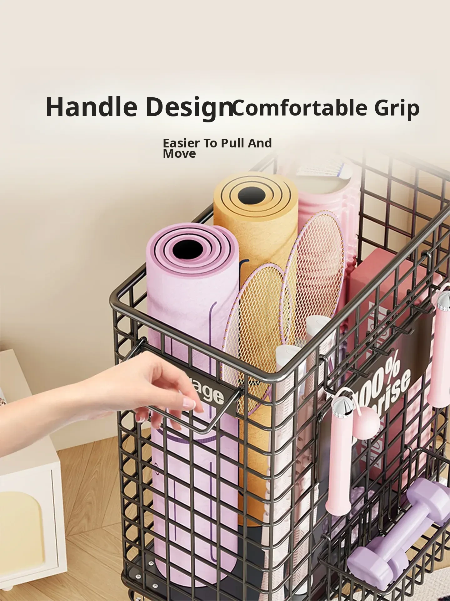 Large Capacity Yoga Mat Storage Basket with Wheels - Mobile Trolley for Organizing Sports Balls and Fitness Equipment, Perfect for Home Use!
