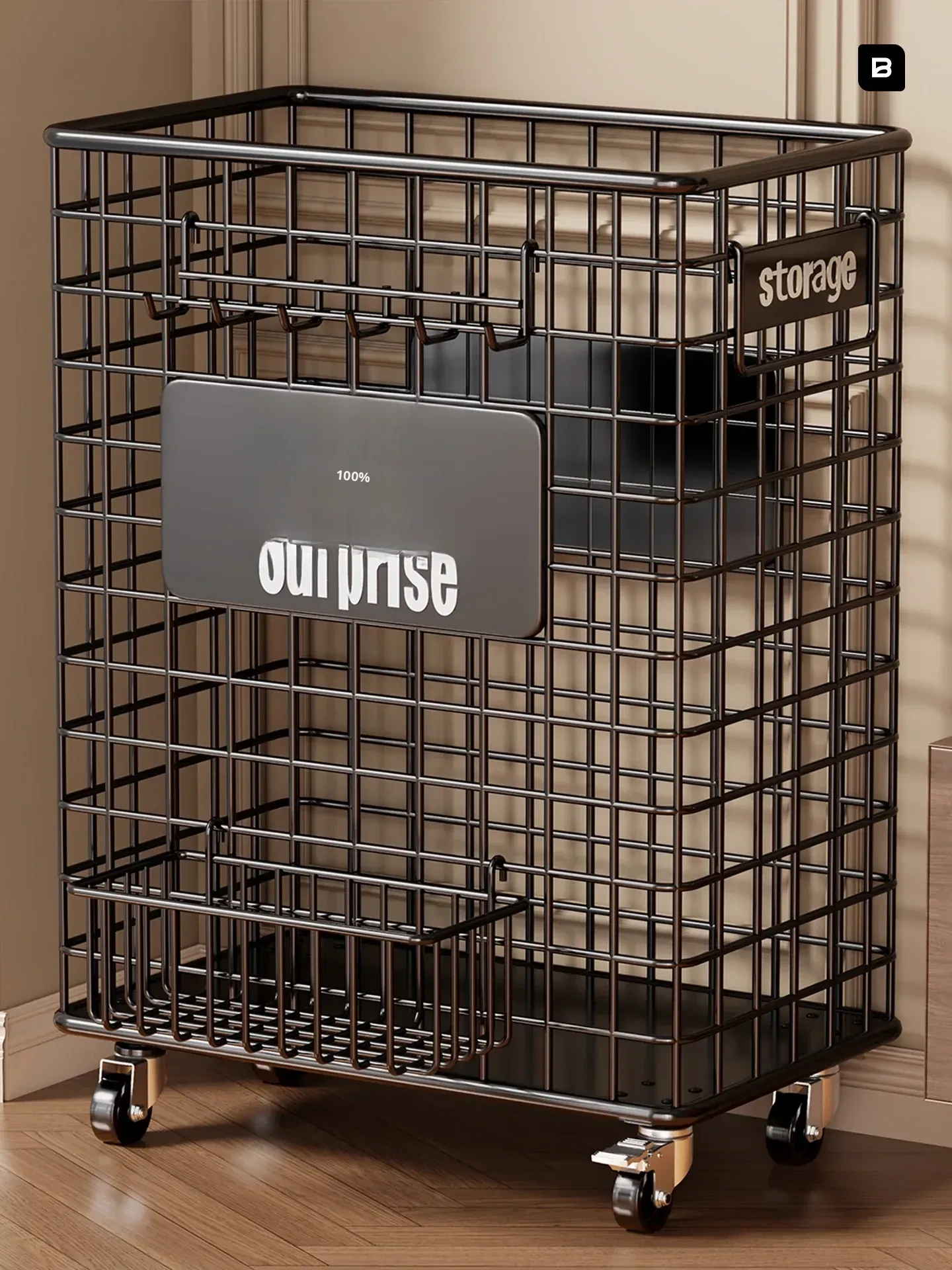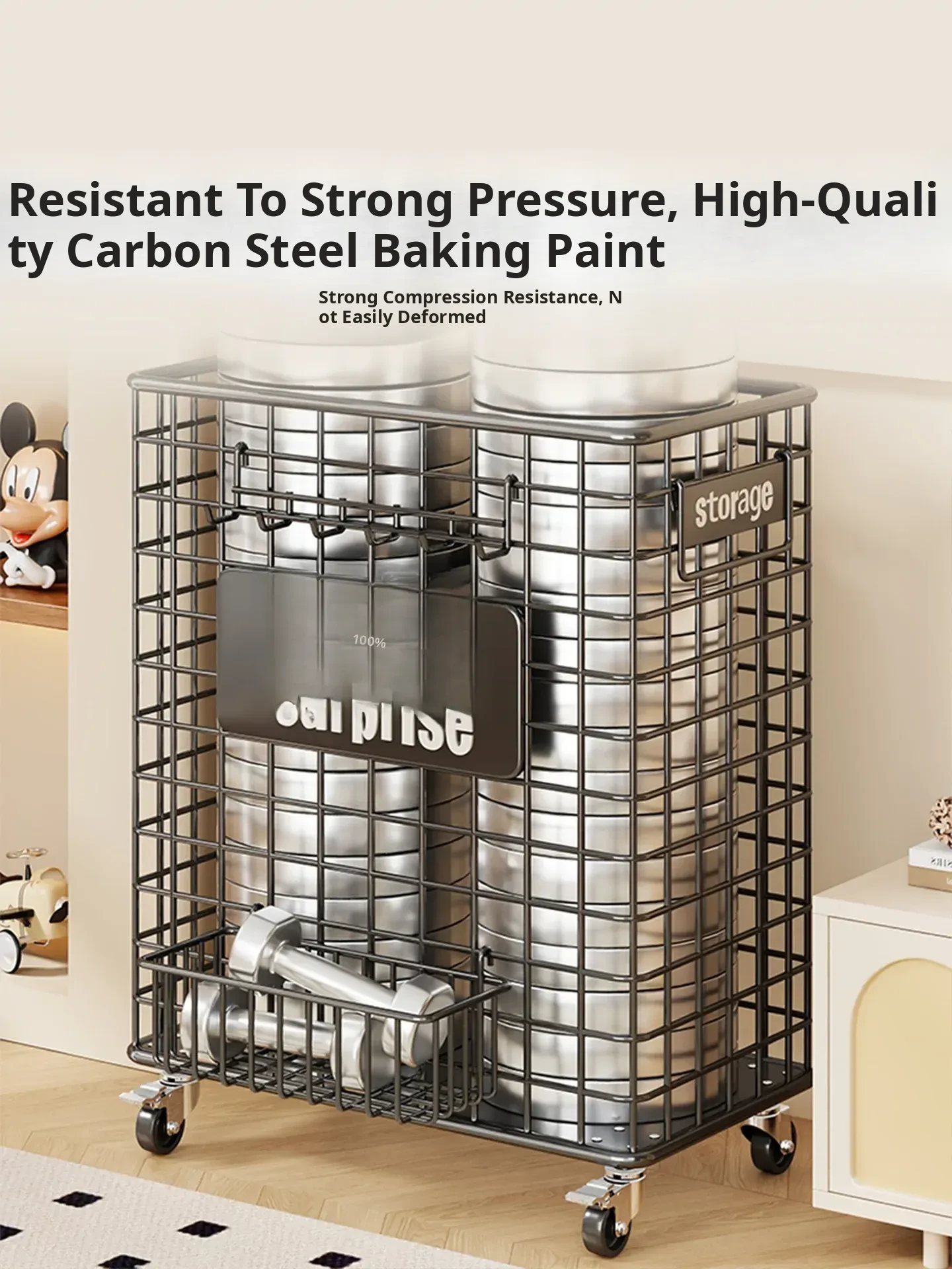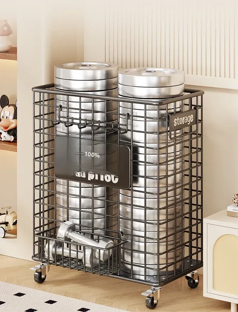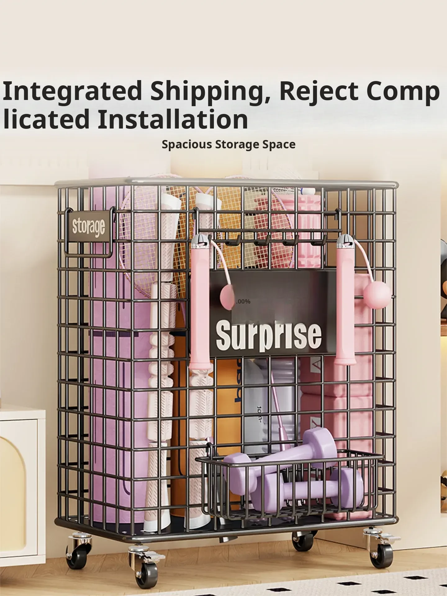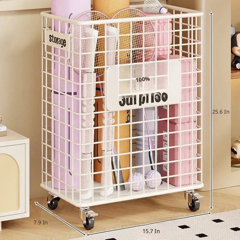 Large Capacity Yoga Mat Storage Basket with Wheels - Mobile Trolley for Organizing Sports Balls and Fitness Equipment, Perfect for Home Use!