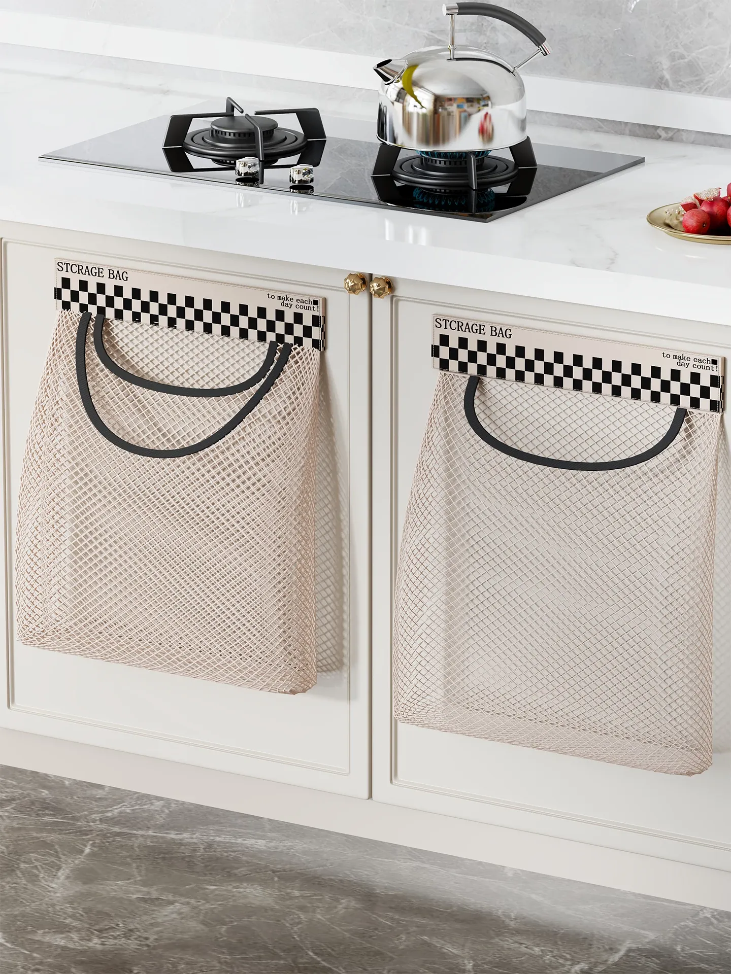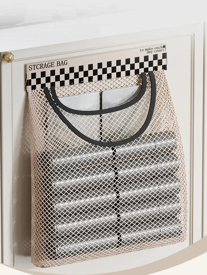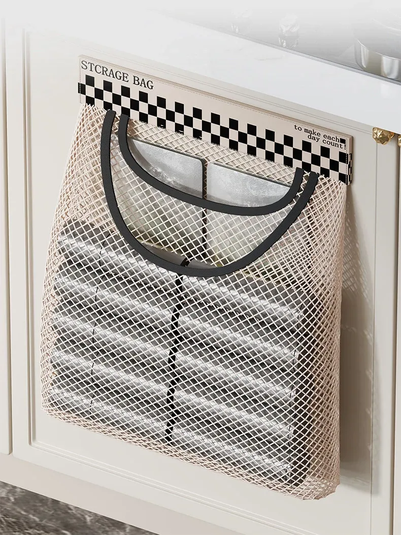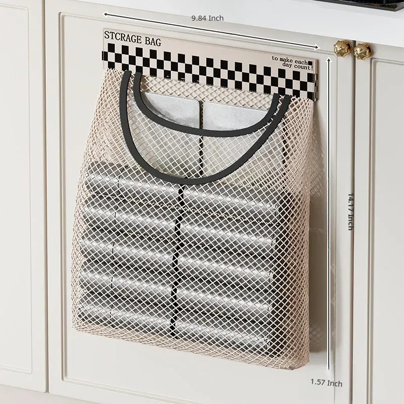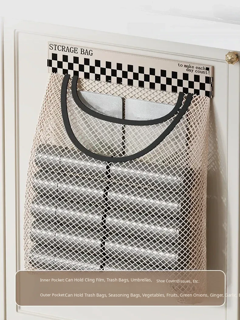 Magic Wall-Mounted Kitchen Trash Bag Organizer - Versatile Plastic Bag Holder with Velcro Net Pouch for Dorms, Socks, and Storage Solutions
