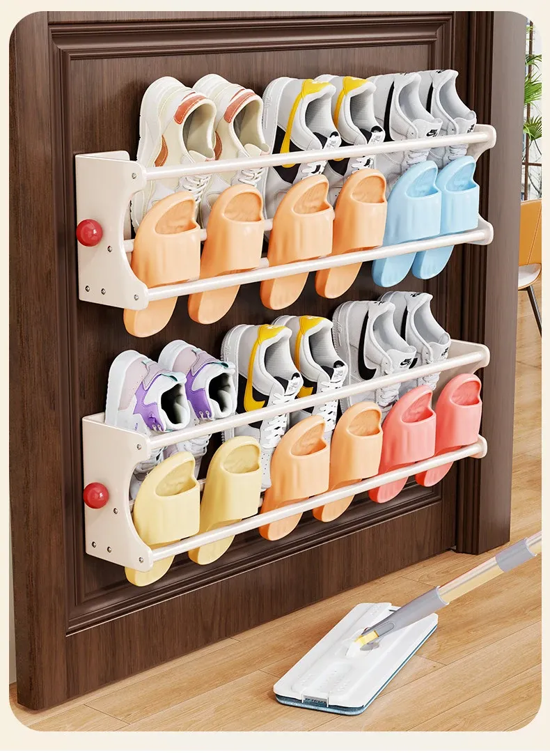 Magnetic Back-of-Door Slipper Rack - Wall-Mounted Draining Organizer for Bathroom - Versatile, No-Drill Design for Home Use, Keeps Shoes Neat and Dry!