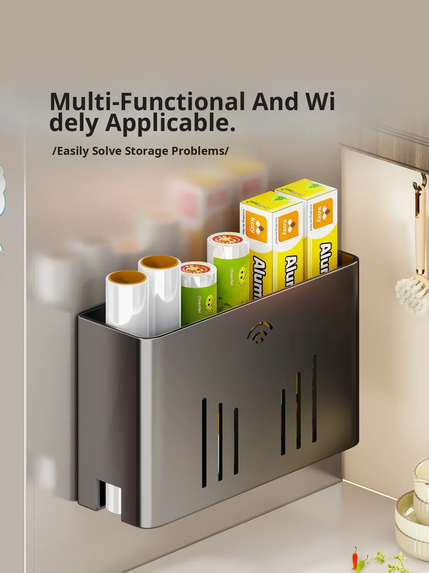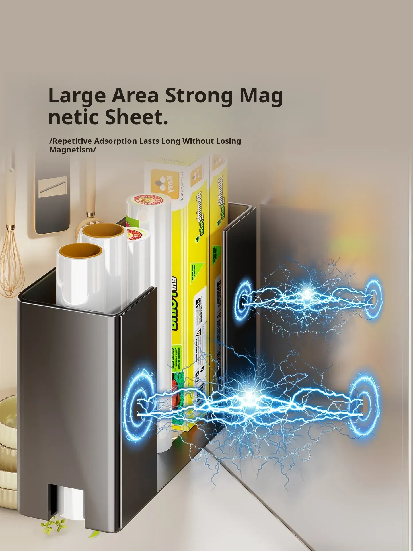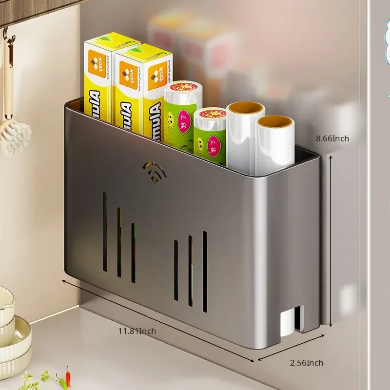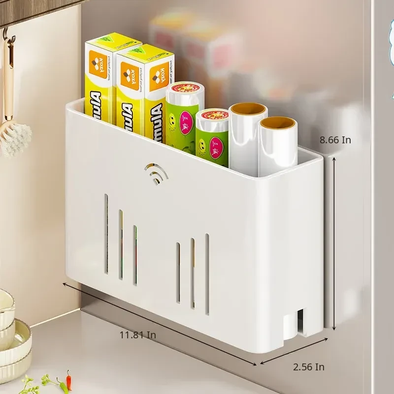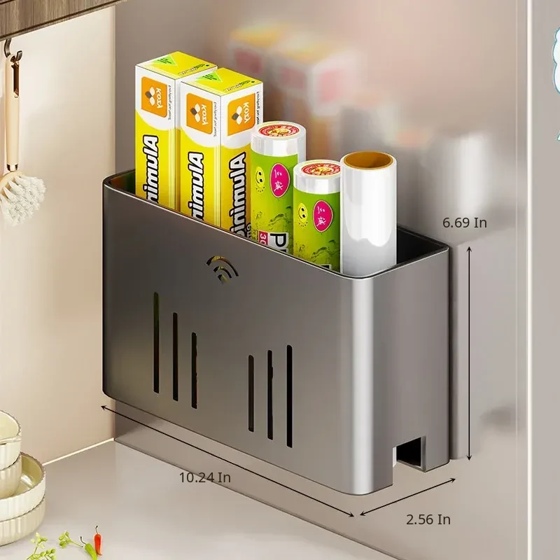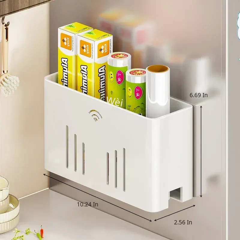 Magnetic Storage Rack for Refrigerator - Side-Mounted Cling Film and Paper Towel Organizer, the Ultimate Magnetic Paper Towel Holder for Efficient Kitchen Storage!