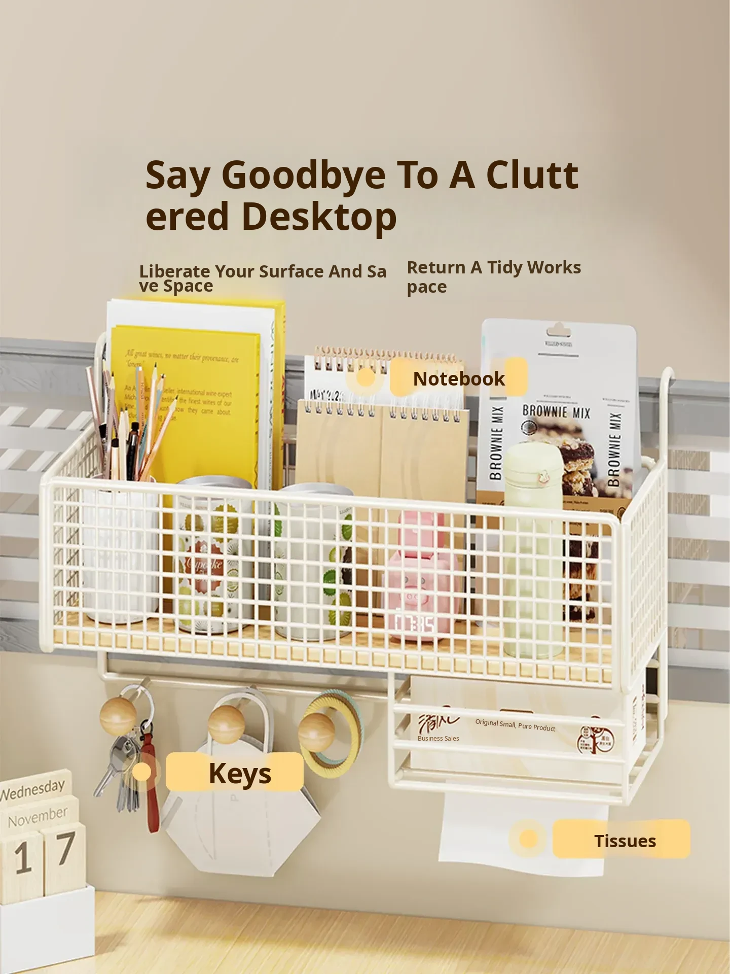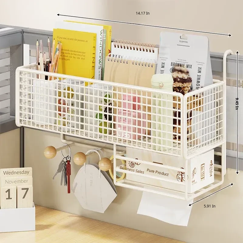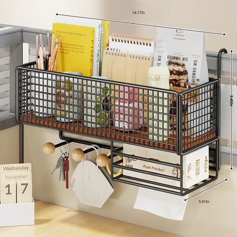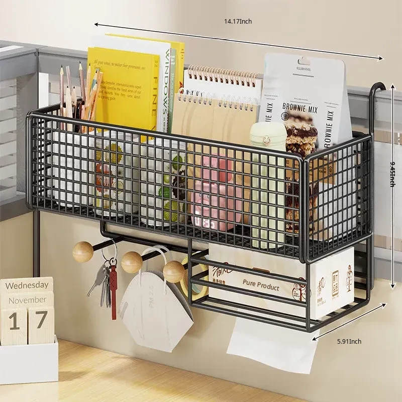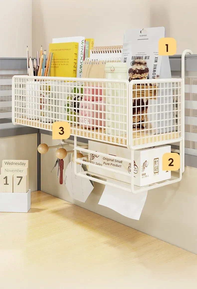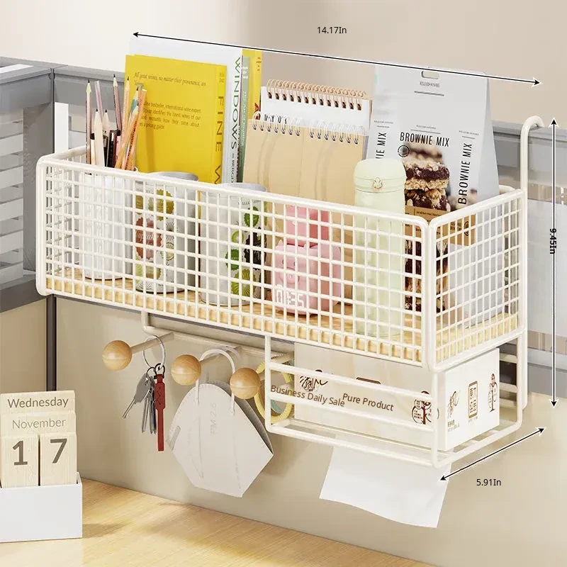 Multifunctional Hanging Storage Rack for Office Desks - Space-Saving Organizer with Hooks and Baskets for Efficient Workspace Organization