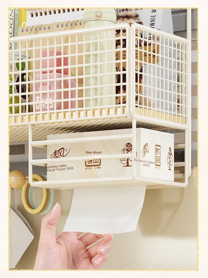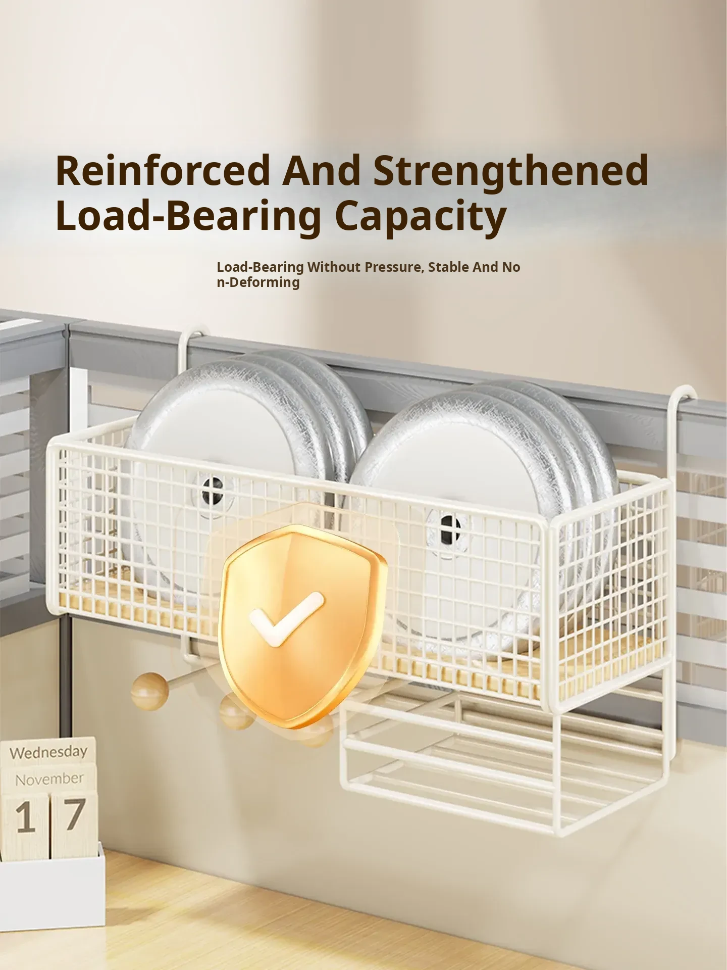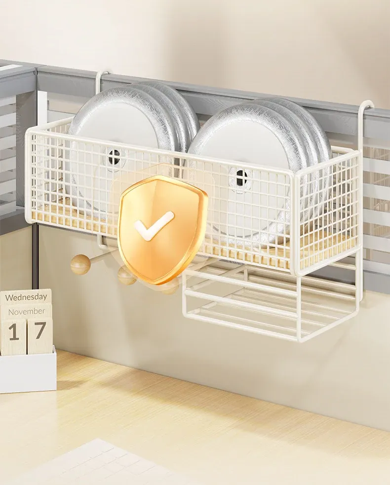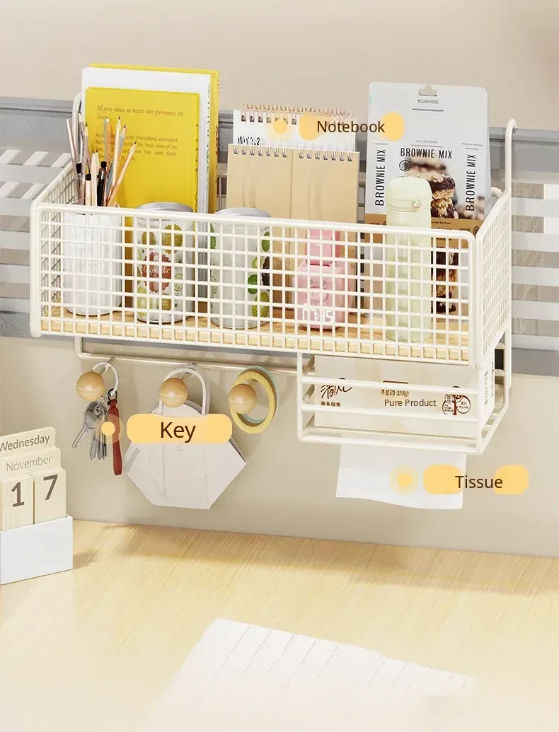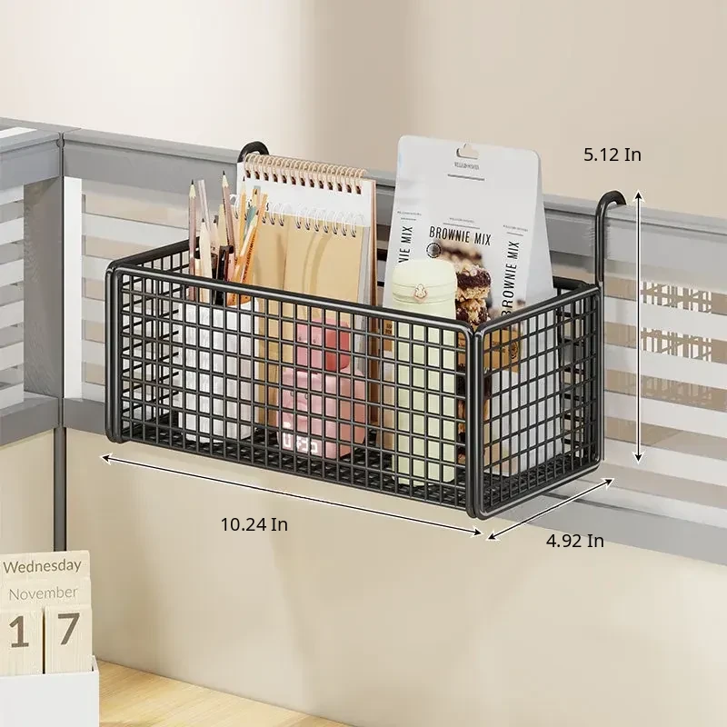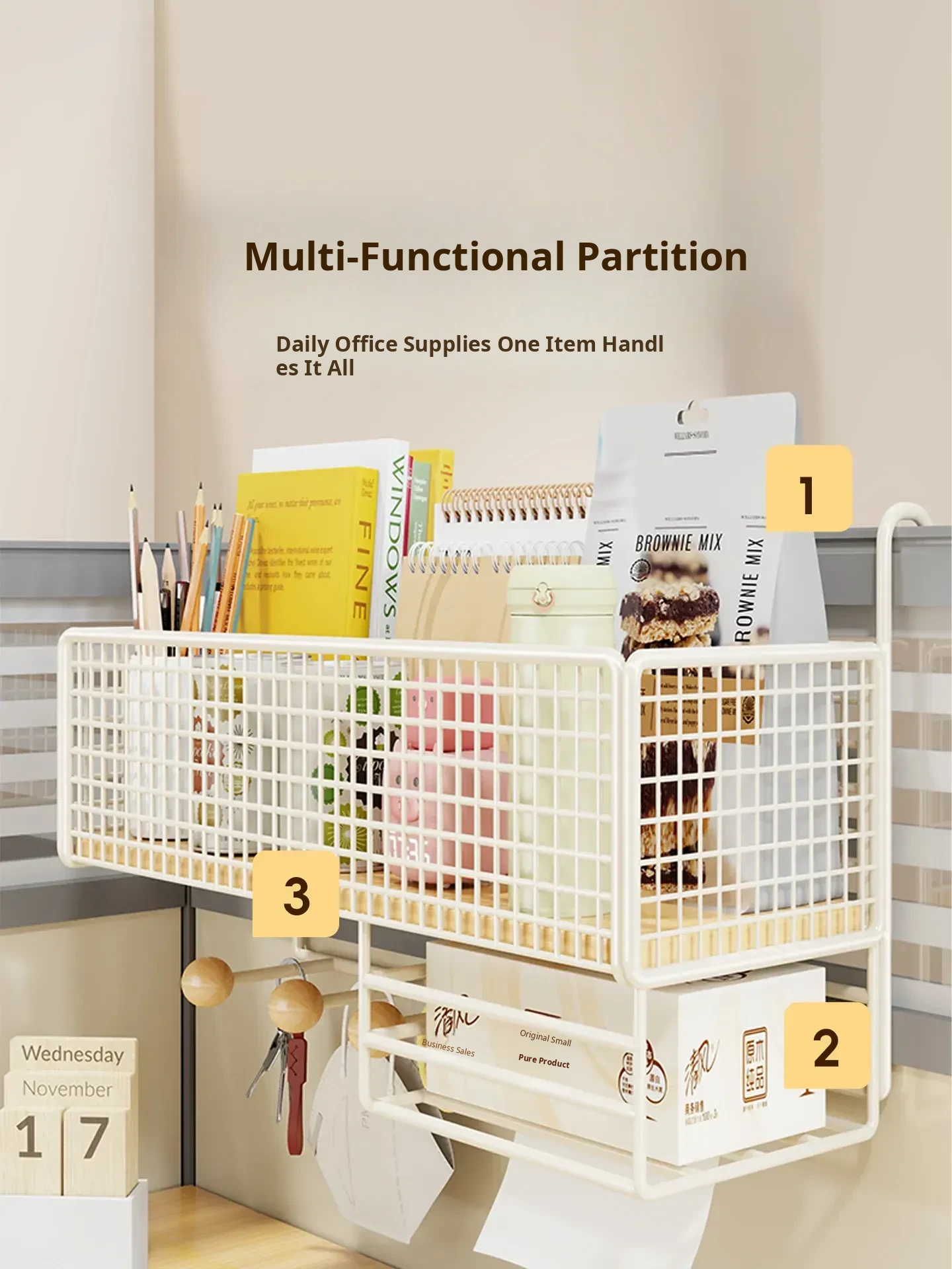 Multifunctional Hanging Storage Rack for Office Desks - Space-Saving Organizer with Hooks and Baskets for Efficient Workspace Organization