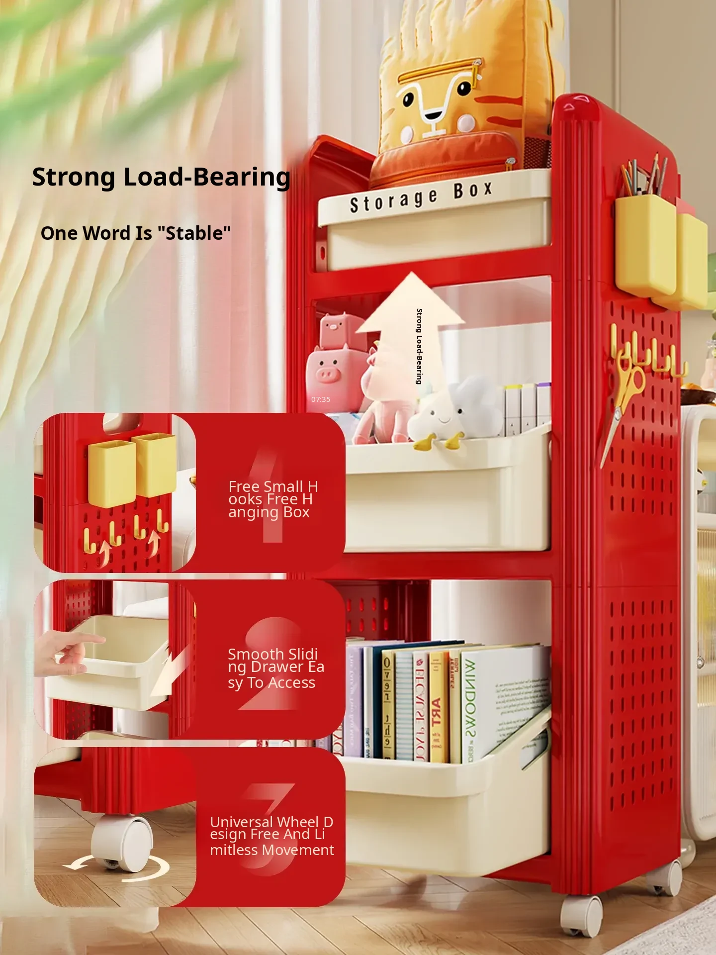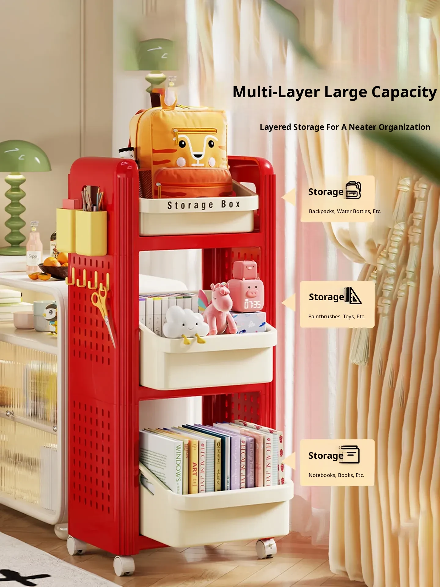 Multifunctional Rolling Book Storage Cart - Adjustable, Space-Saving Organizer for Students and Home Use, Perfect for Under-Desk Storage, Multi-Tiered Design for Books and Supplies