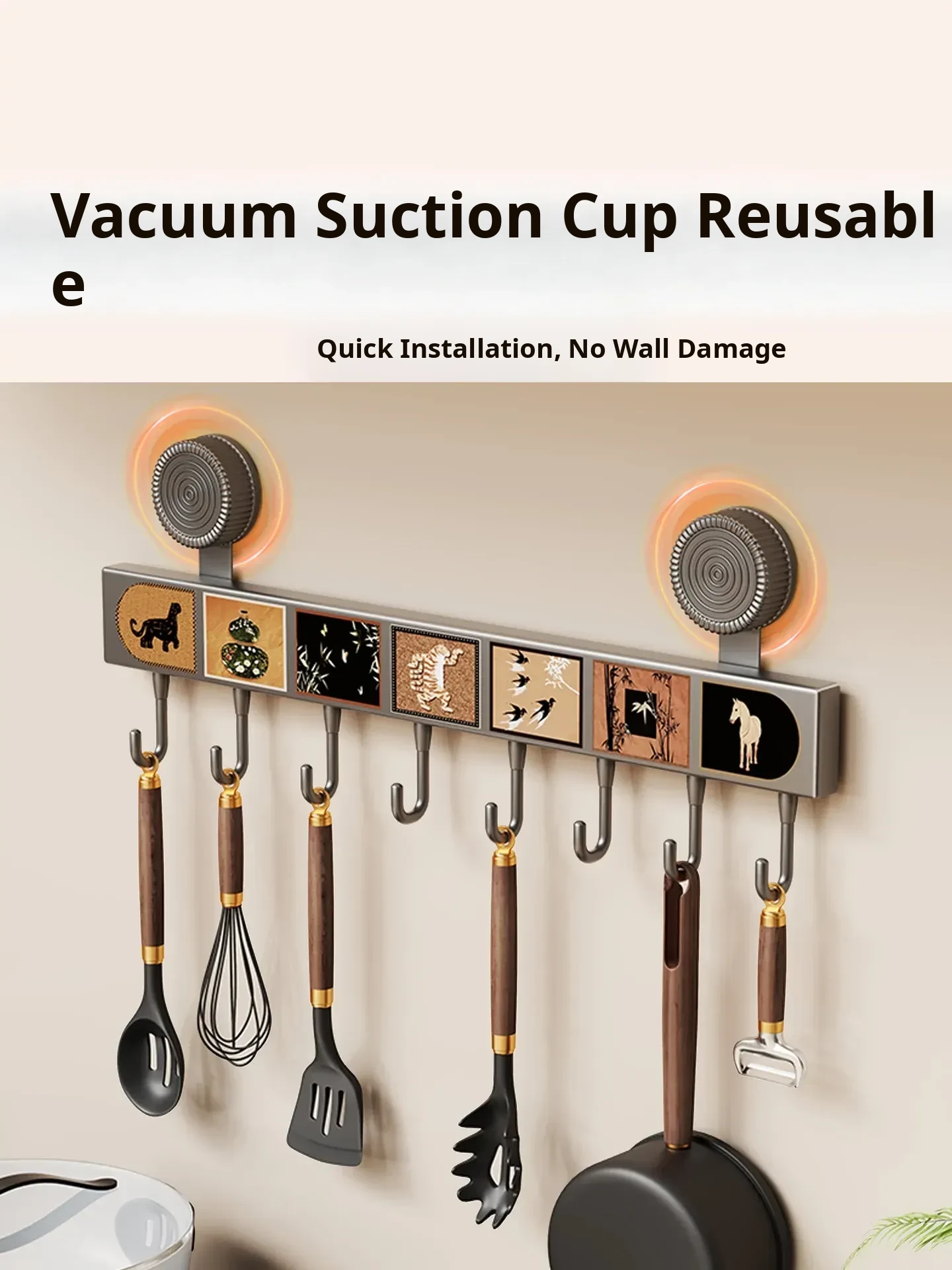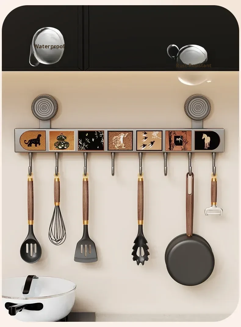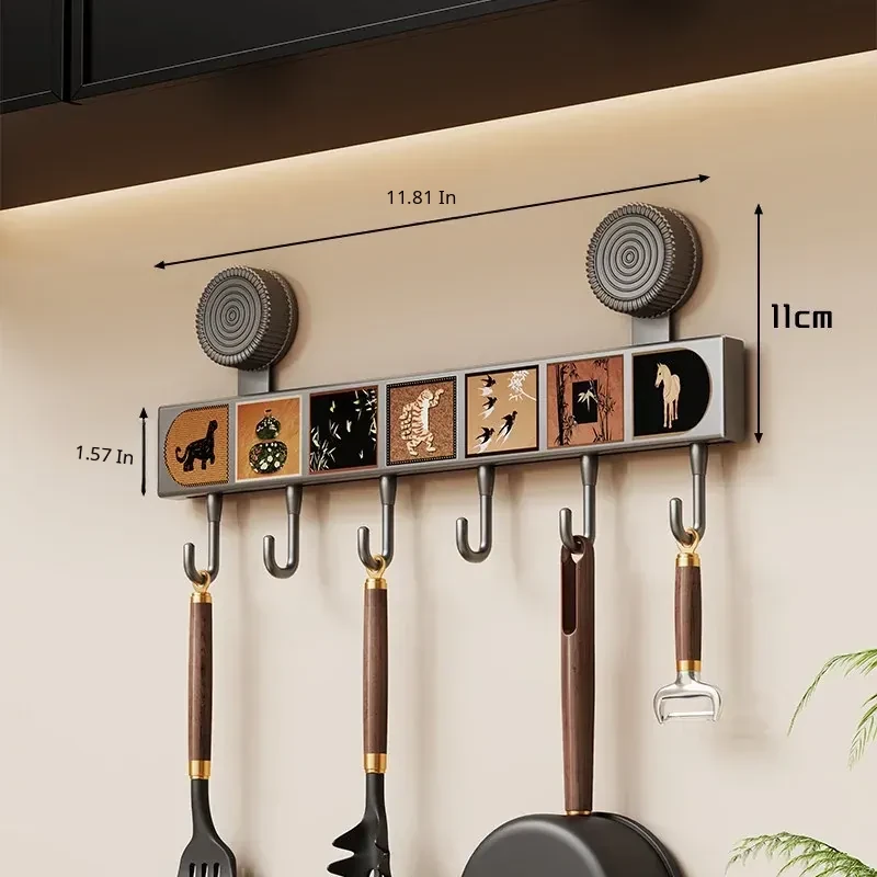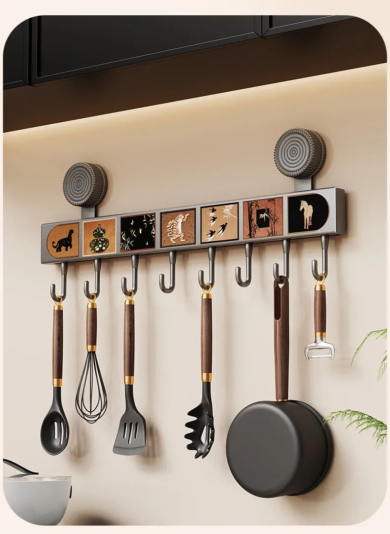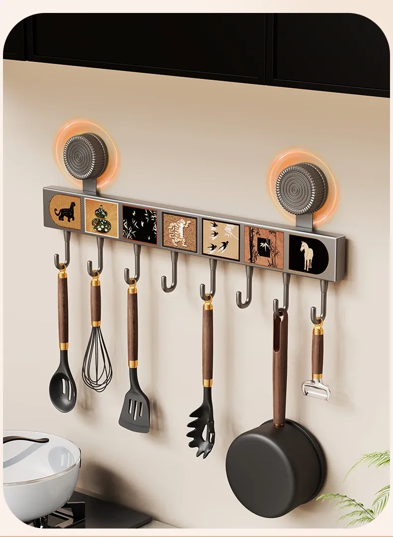 Multi-Functional Suction Cup Hooks - No Drill Kitchen Hanging Rack for Pots, Spoons, and Spatulas - Space-Saving Wall-Mounted Organizer for Behind the Door Storage