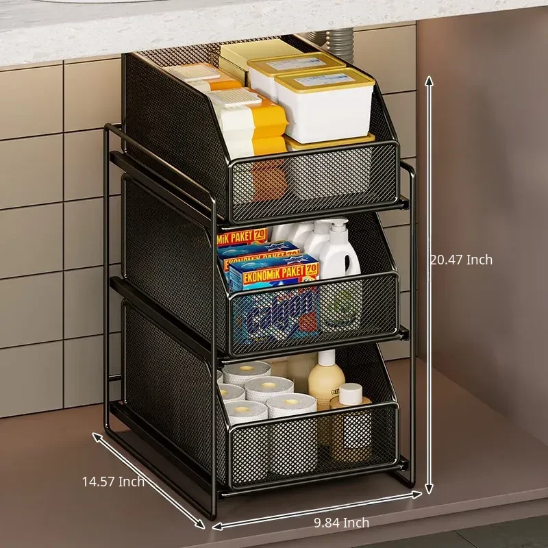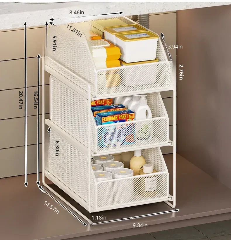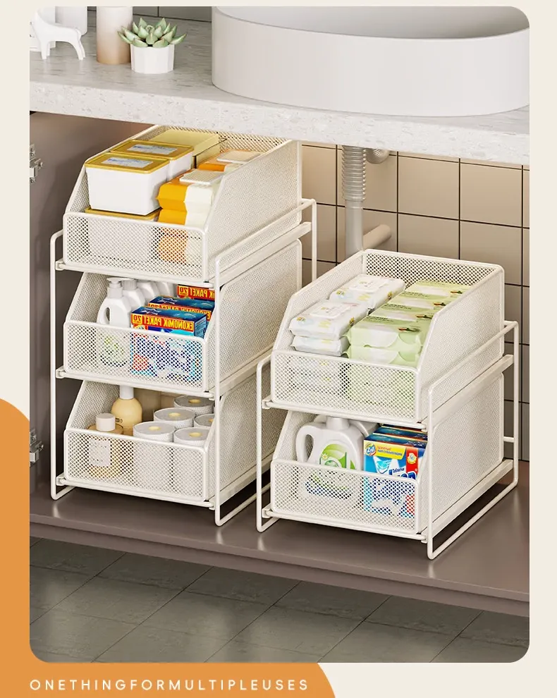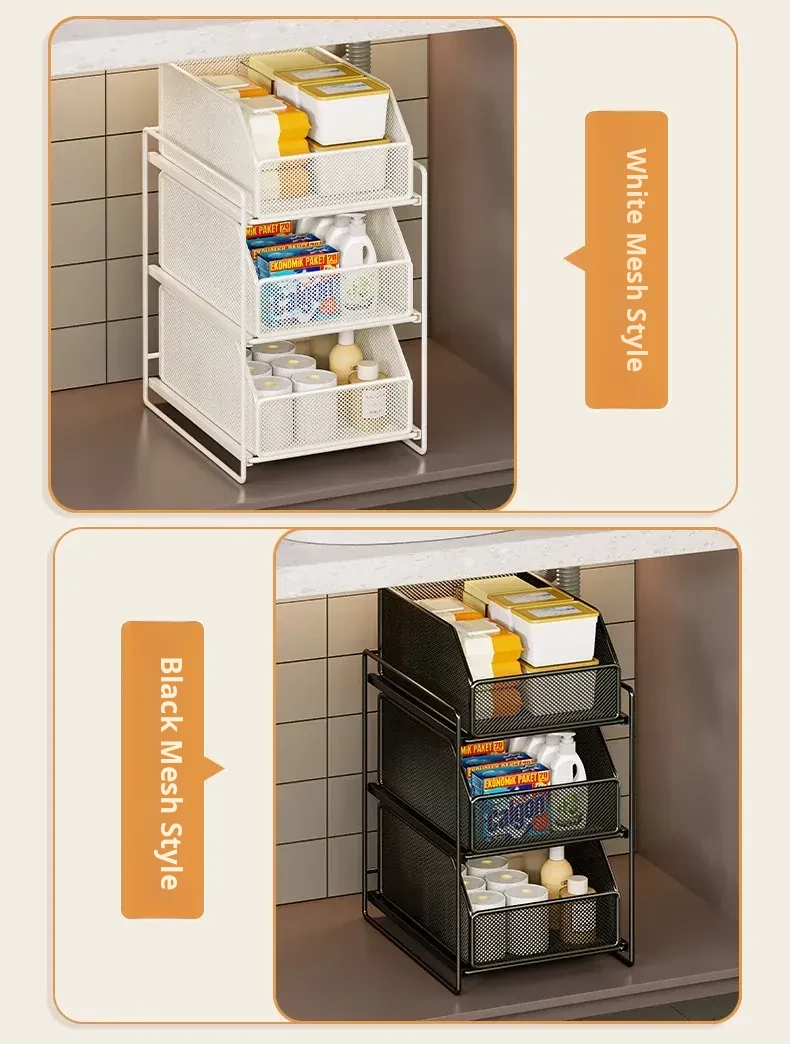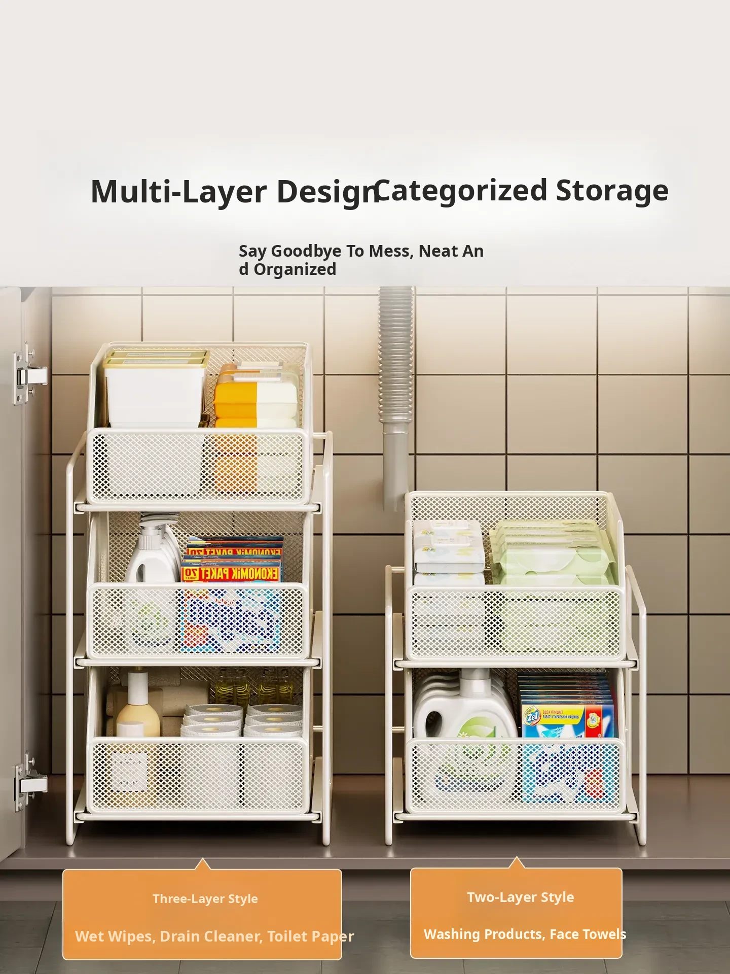 Multi-Functional Under-Sink Storage Rack - Pull-Out Washbasin Organizer for Bathroom Cabinet, Perfect for Shower Product Storage and Maximizing Space