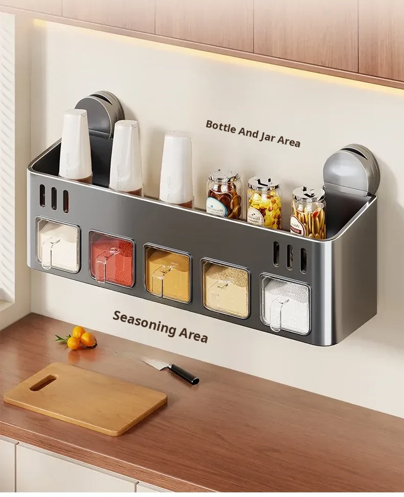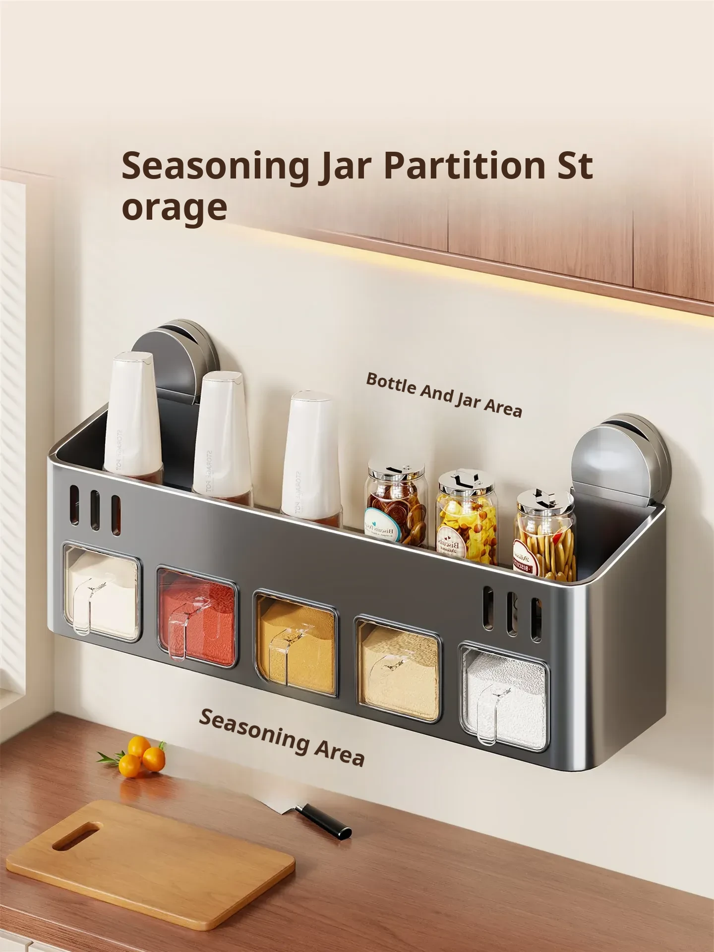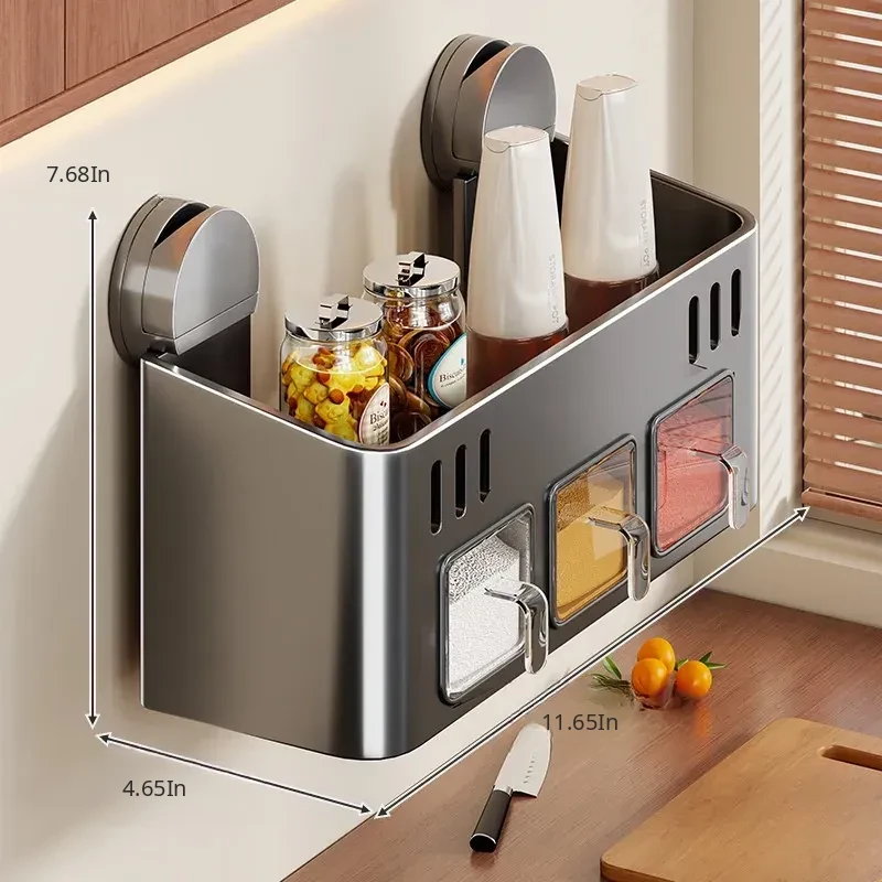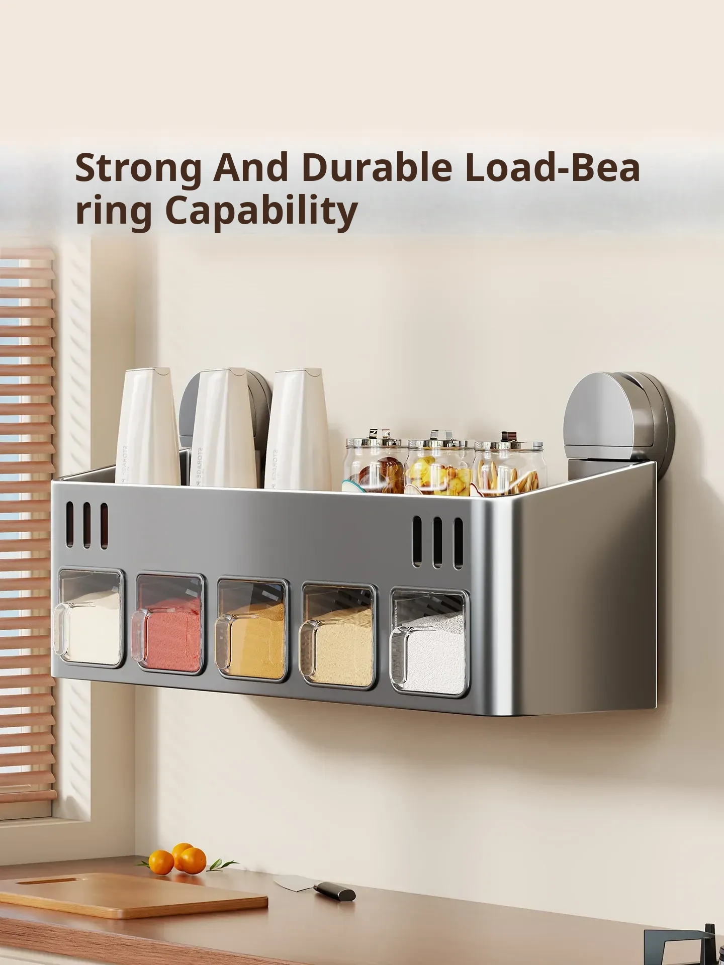 Multifunctional Wall-Mounted Spice Rack with Suction Cups - Large Capacity Kitchen Organizer for Seasoning Jars and Condiments, Perfect for Space-Saving and Easy Access!