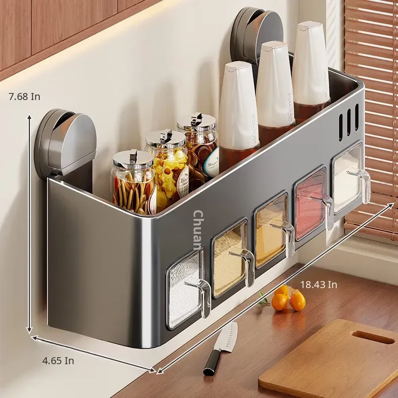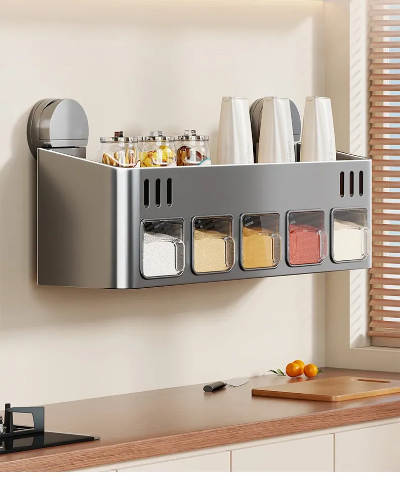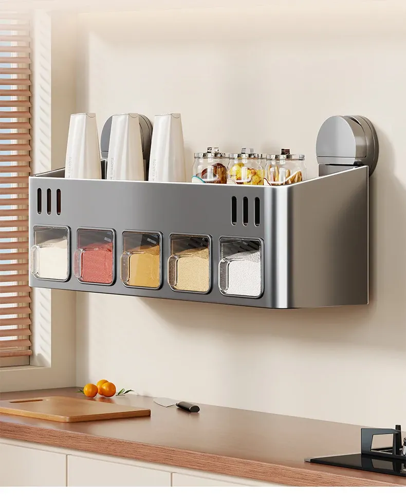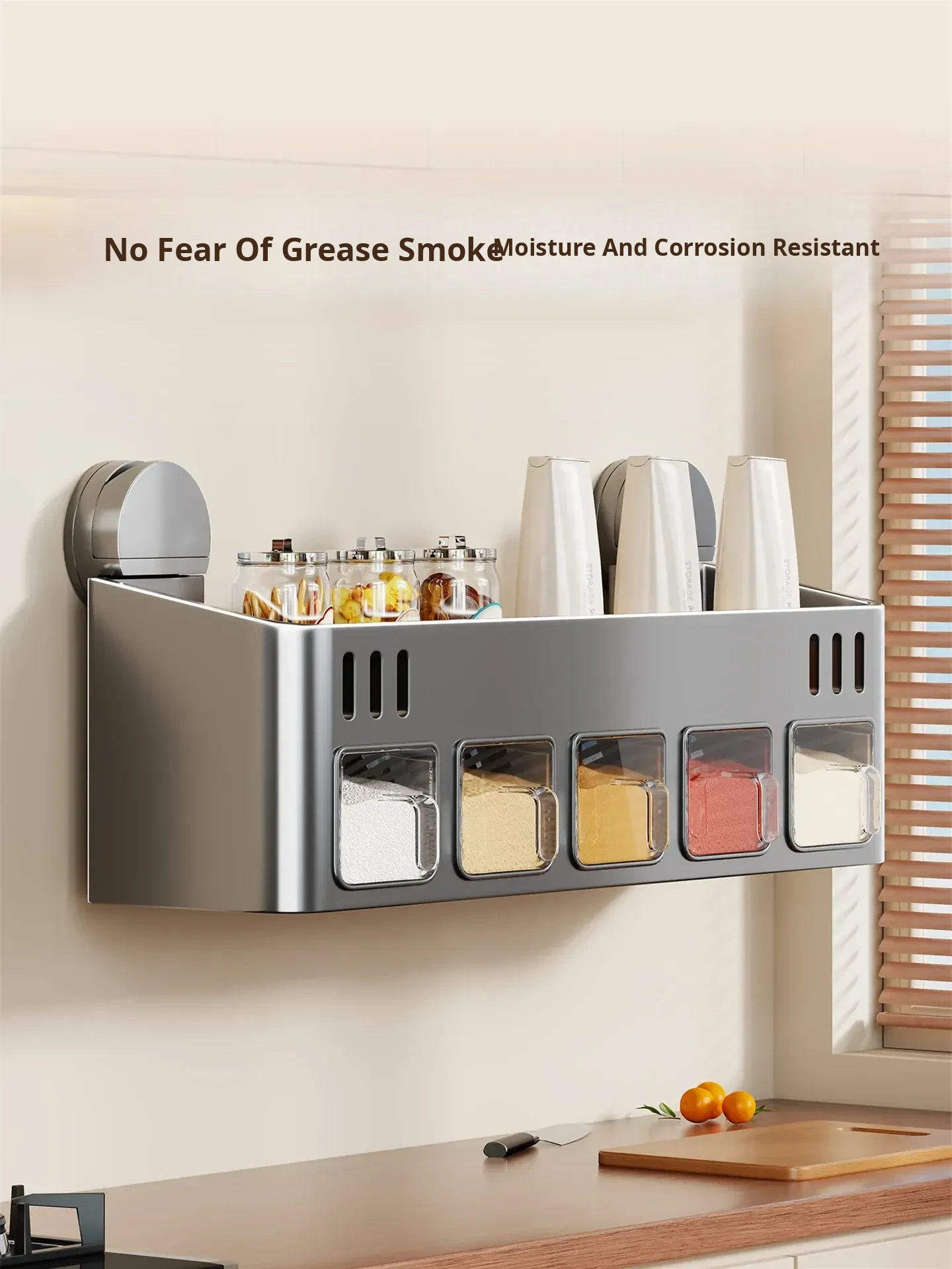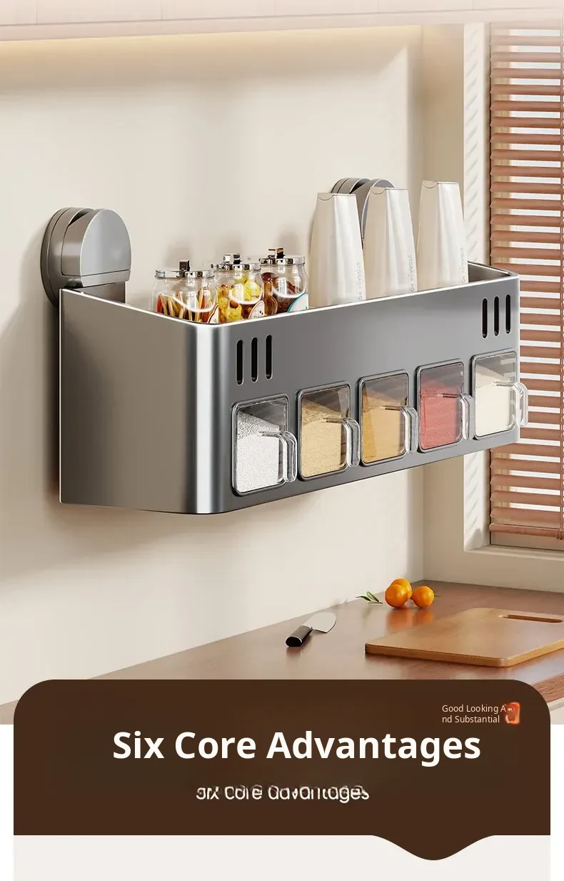 Multifunctional Wall-Mounted Spice Rack with Suction Cups - Large Capacity Kitchen Organizer for Seasoning Jars and Condiments, Perfect for Space-Saving and Easy Access!