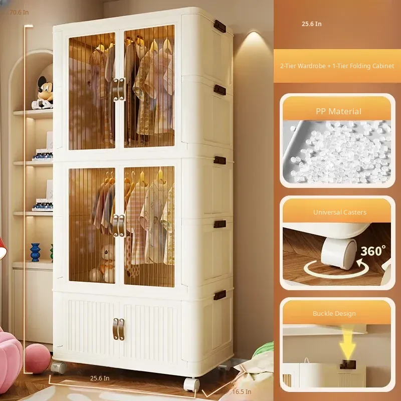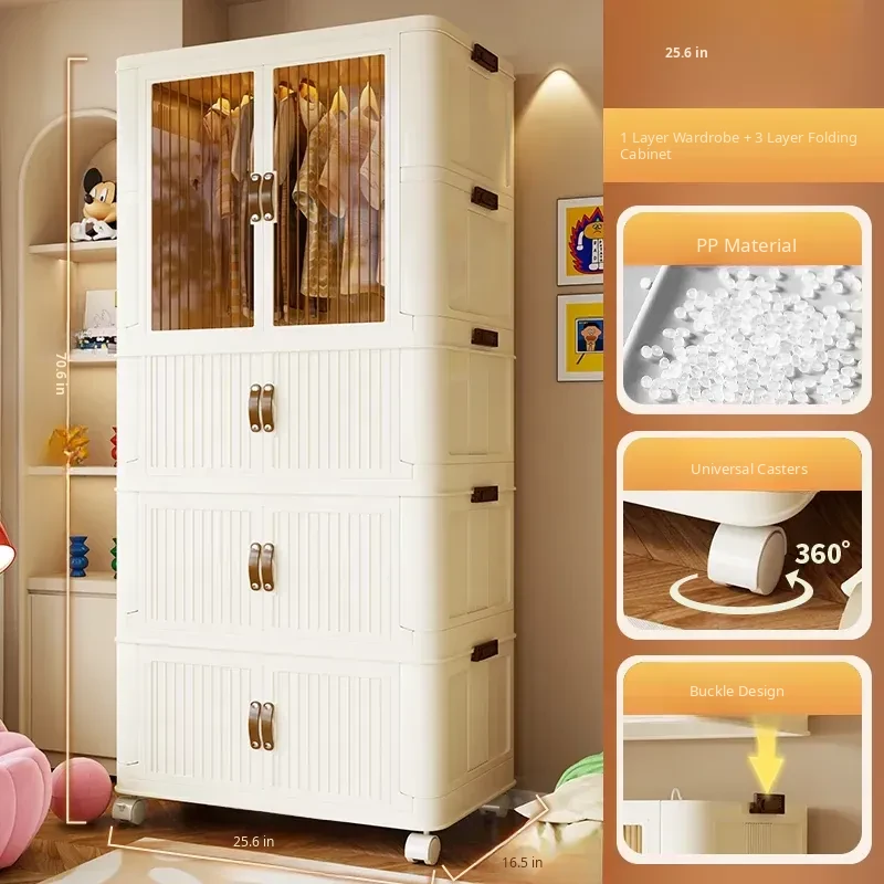 Multi-Layer Foldable Storage Cabinet for Home - Large Capacity Baby and Kids Clothes Organizer, Perfect for Baby Wardrobe and Clothing Storage Solutions!