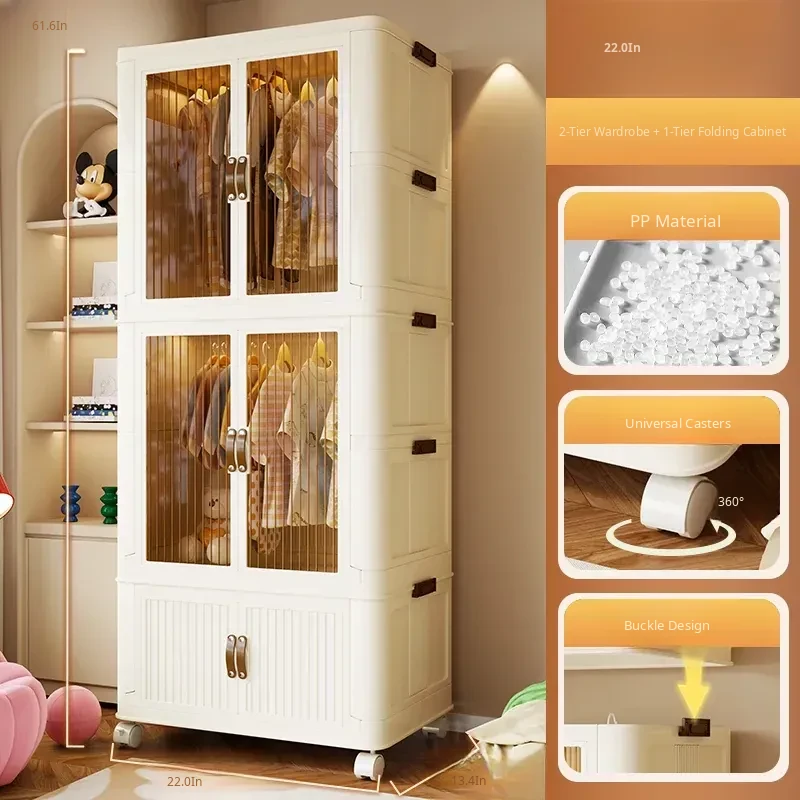 22.05in Width [2-Layer Wardrobe + 1-Layer Folding Cabinet]