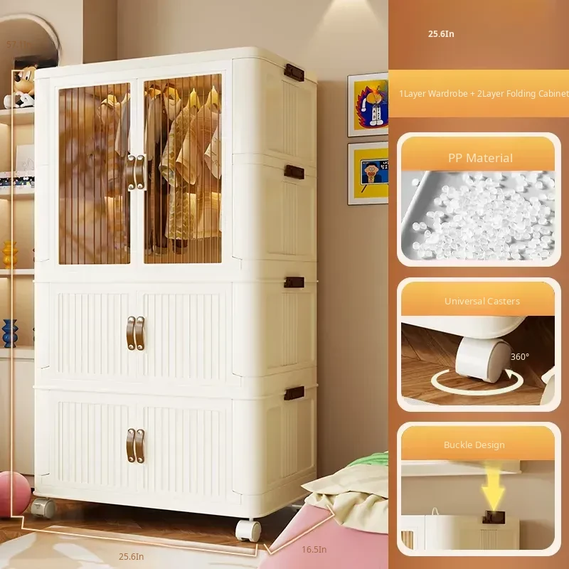 25.59in Width [1-Layer Wardrobe + 3-Layer Folding Cabinet]