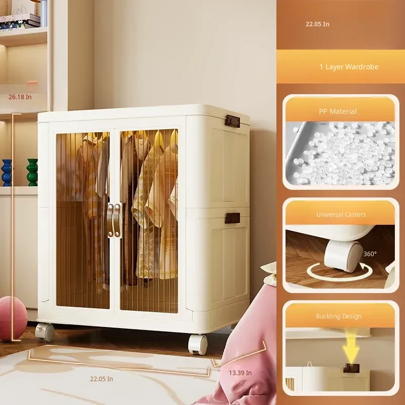 22.05in Width [1-Layer Wardrobe + 1-Layer Folding Cabinet]