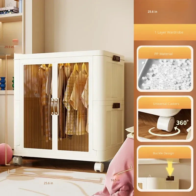 25.59in Width [1-Layer Wardrobe + 1-Layer Folding Cabinet]