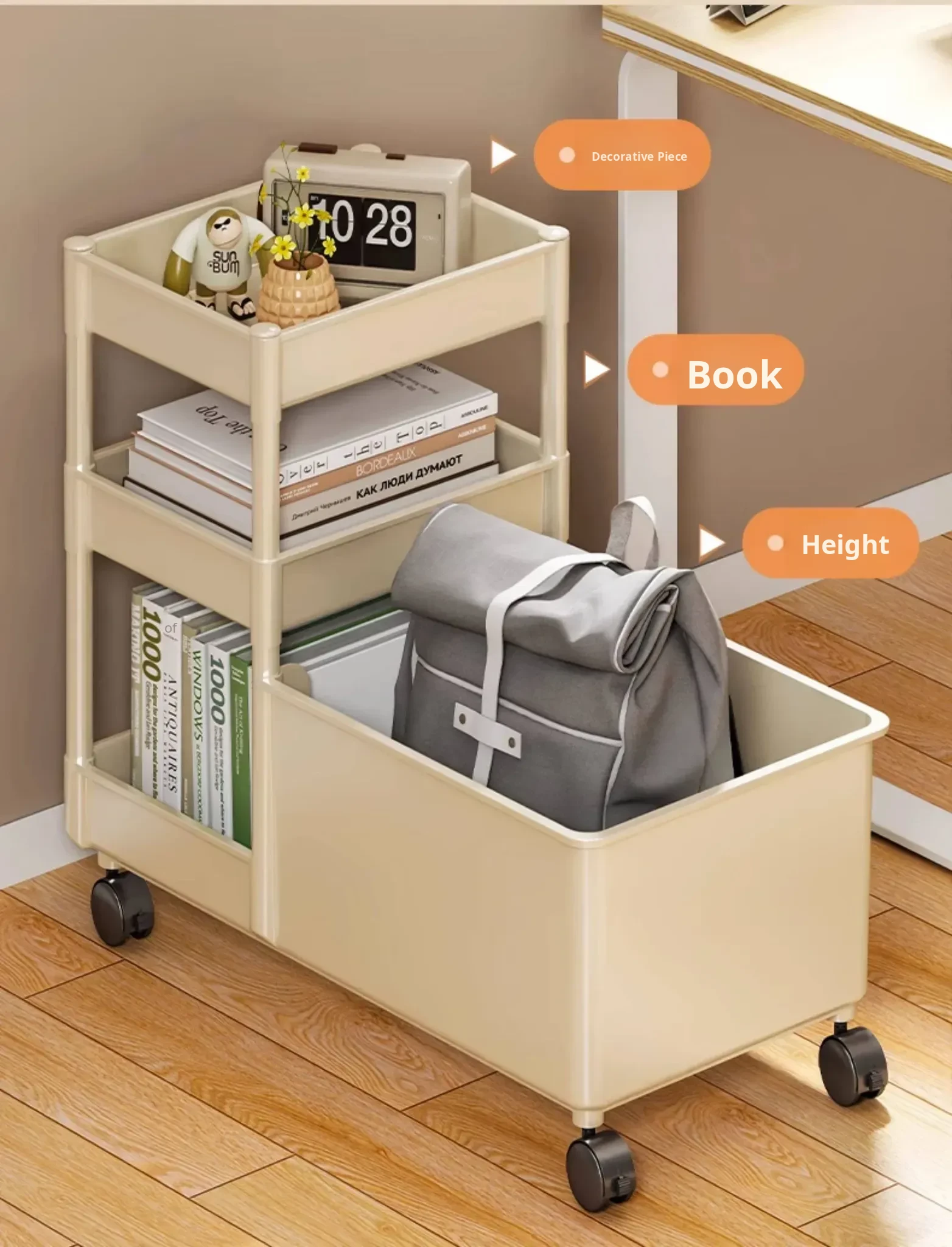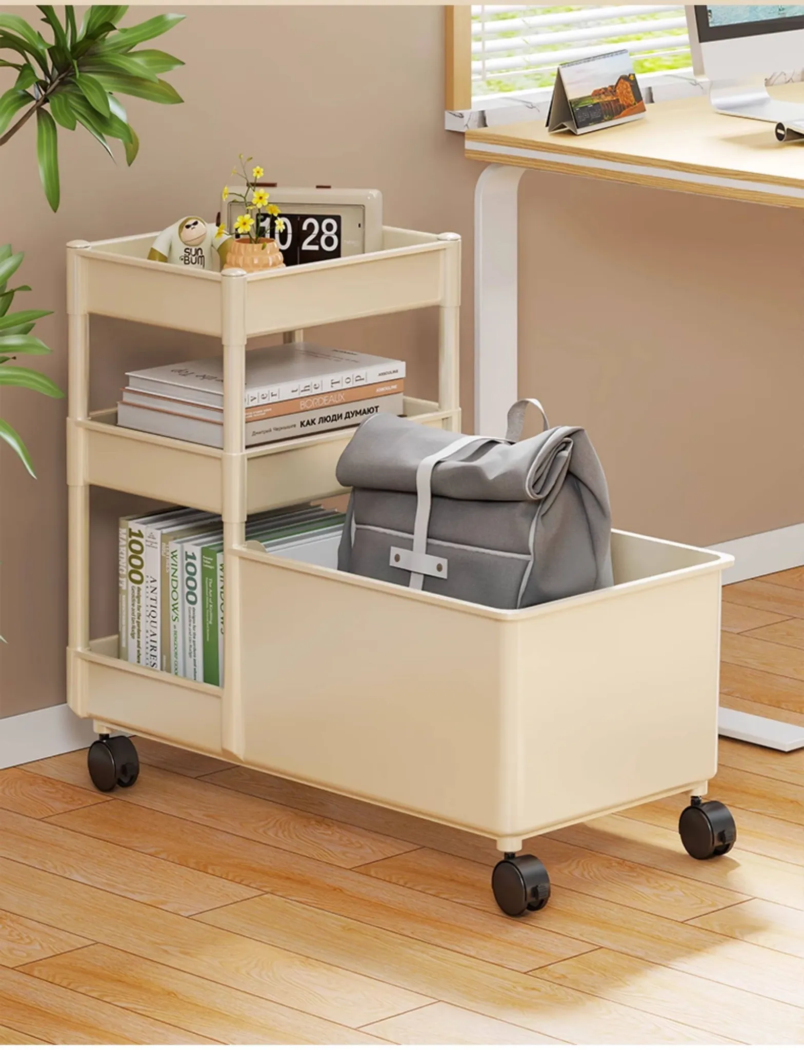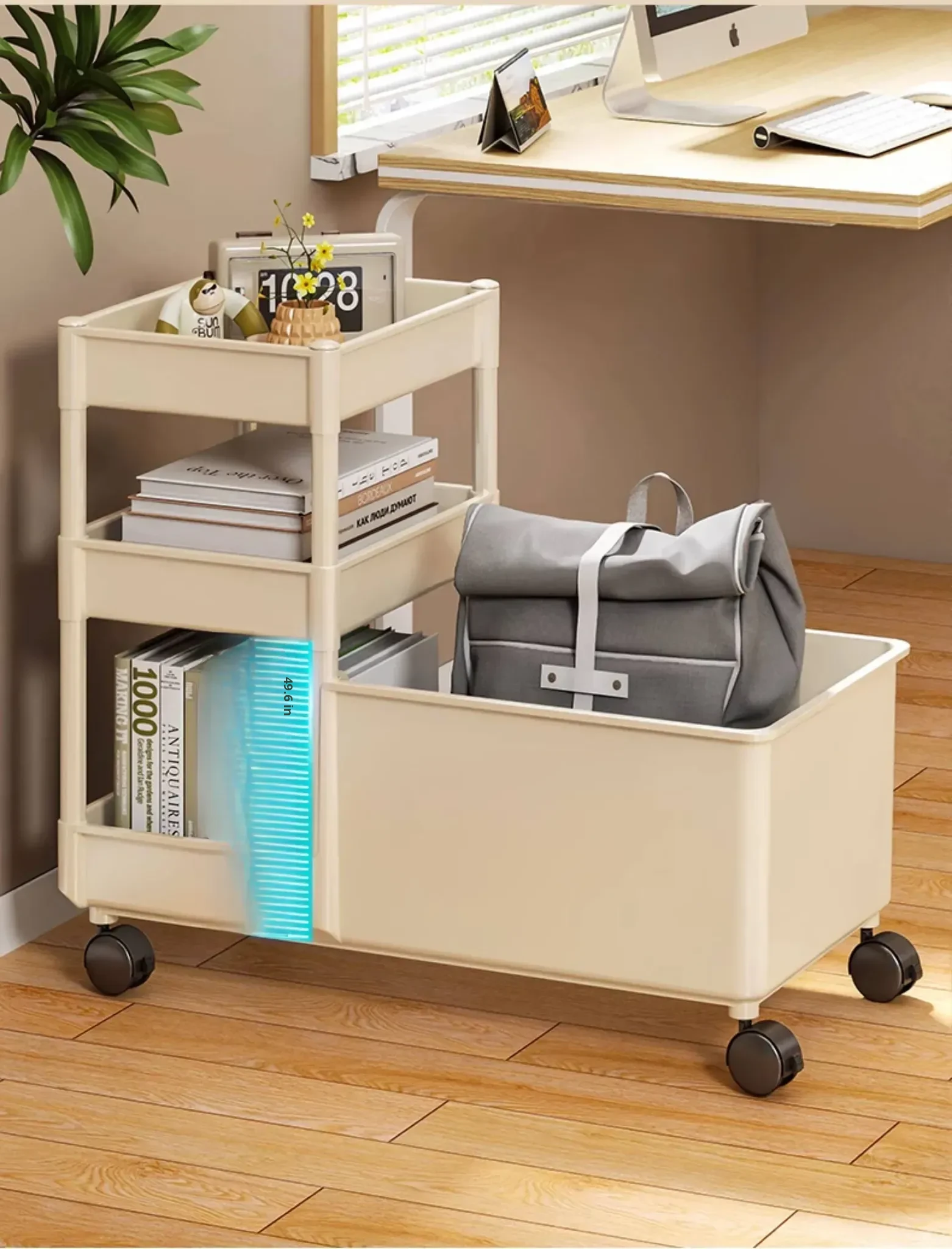 Multi-Layer Rolling Storage Cart for Office - Under-Desk Backpack Organizer with Wheels, Perfect for Keeping Your Workspace Neat and Tidy!