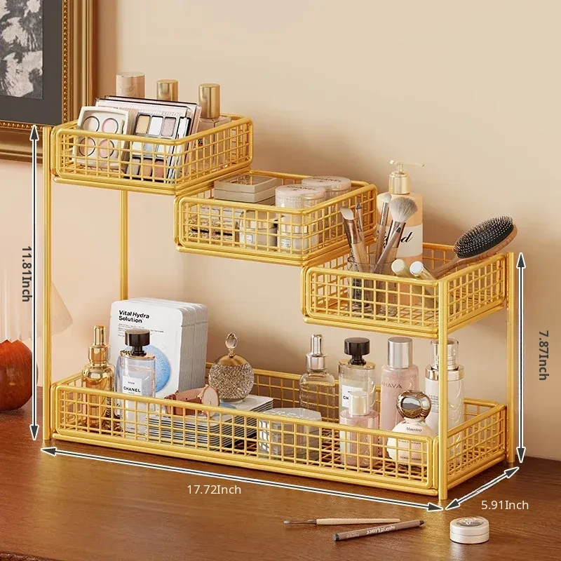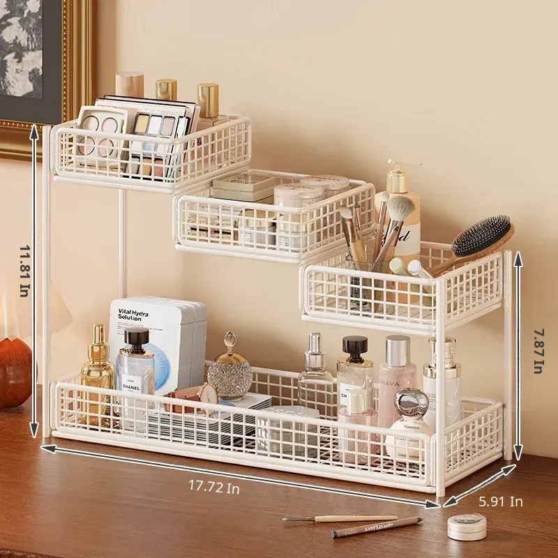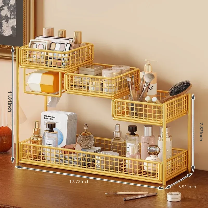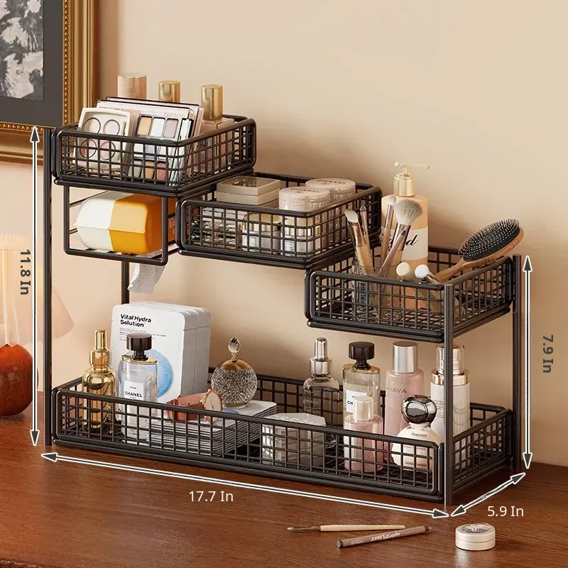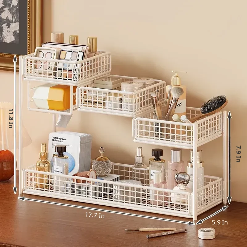 Multi-Tier Makeup Organizer & Skincare Storage Box with Tissue Holder - Stylish Vanity Solution for Bathroom and Dressing Table, Perfect for Efficient Space Management!