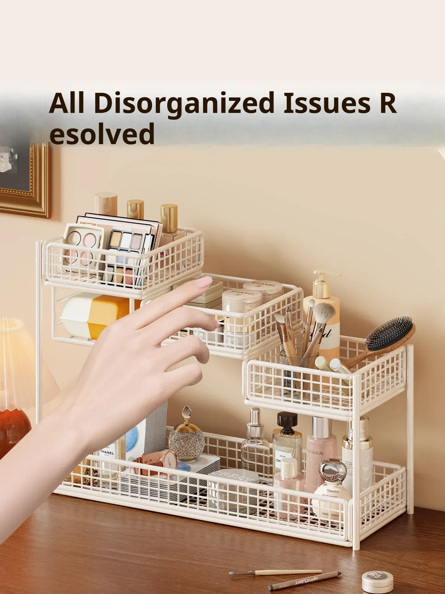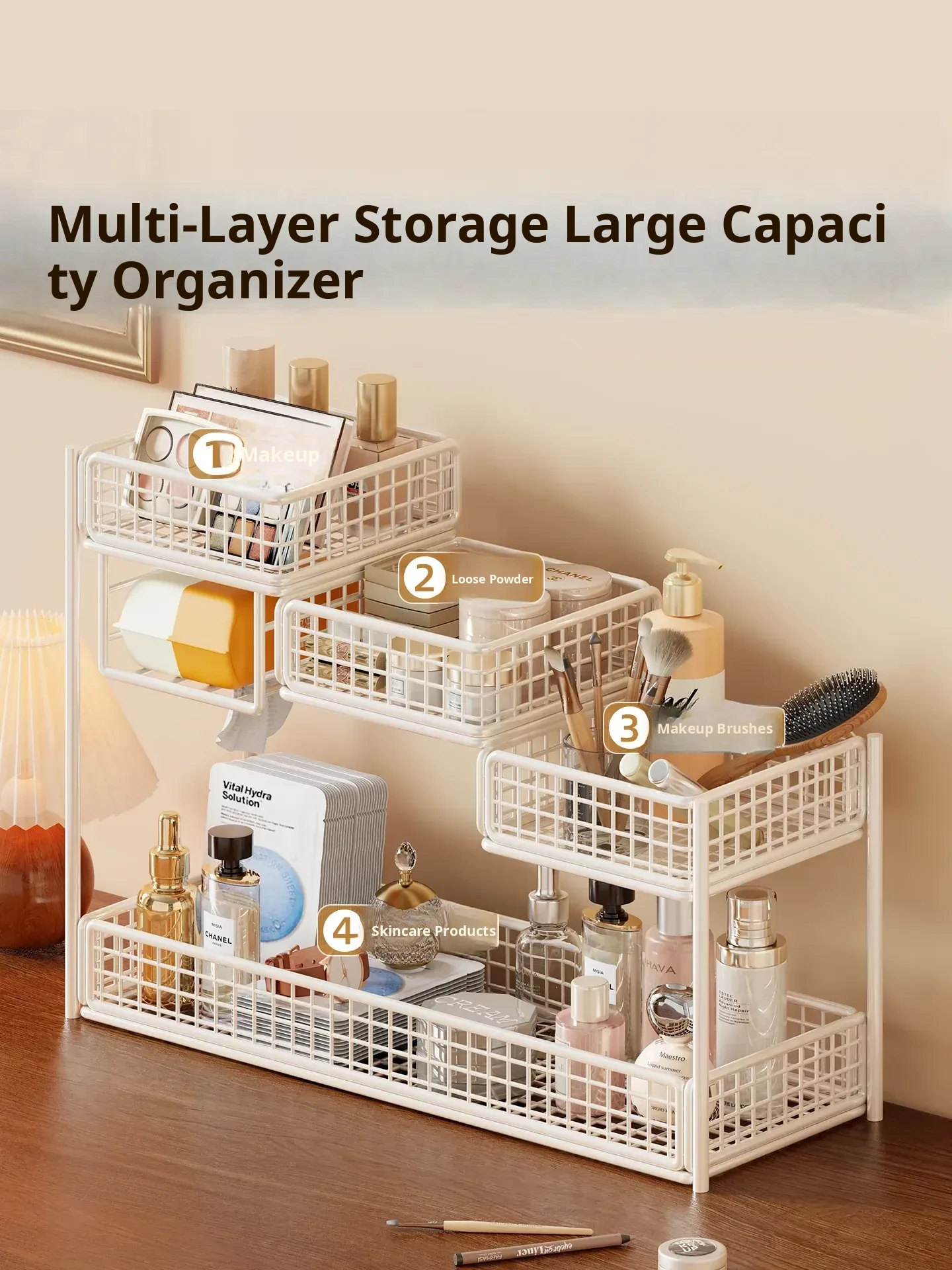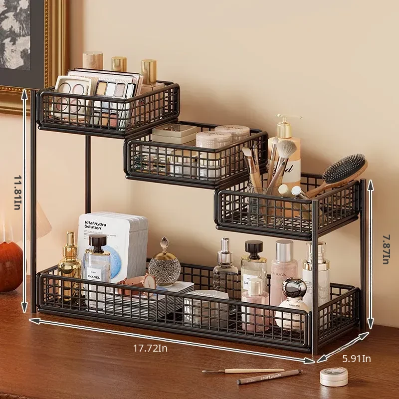 Multi-Tier Makeup Organizer & Skincare Storage Box with Tissue Holder - Stylish Vanity Solution for Bathroom and Dressing Table, Perfect for Efficient Space Management!