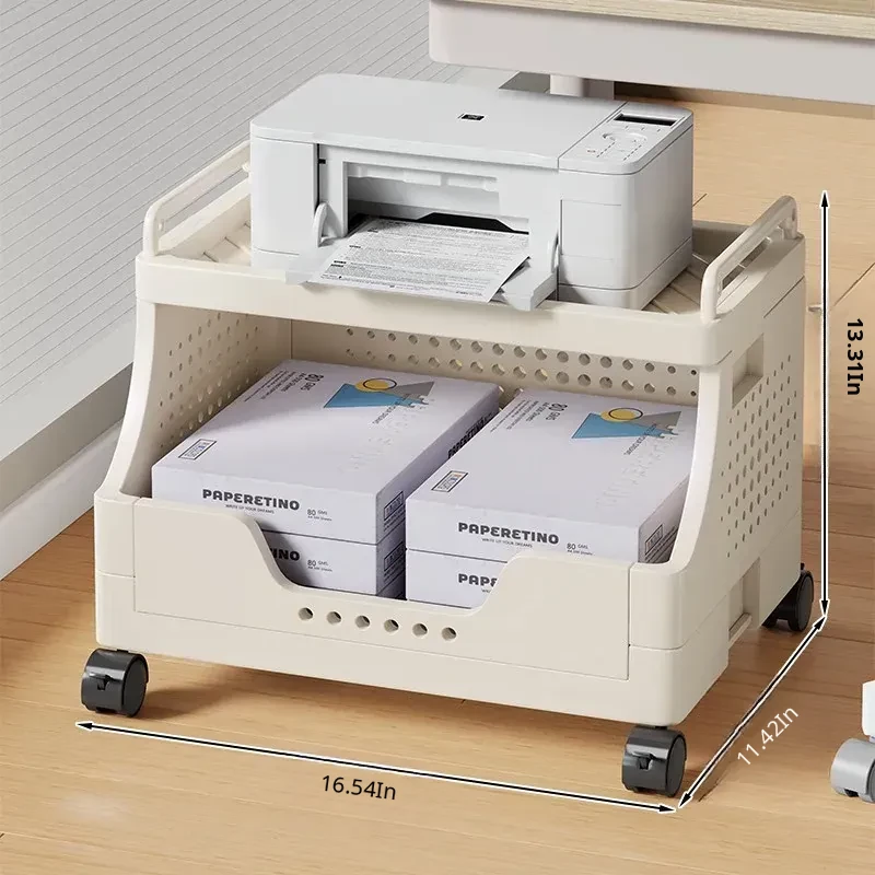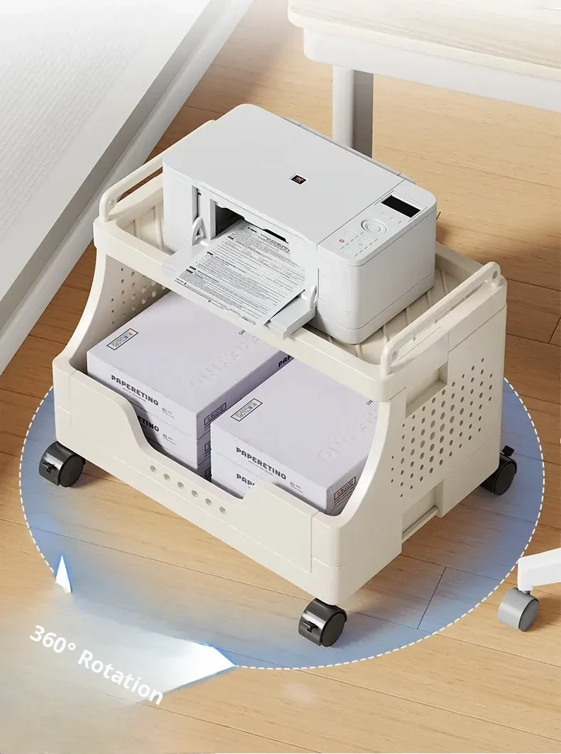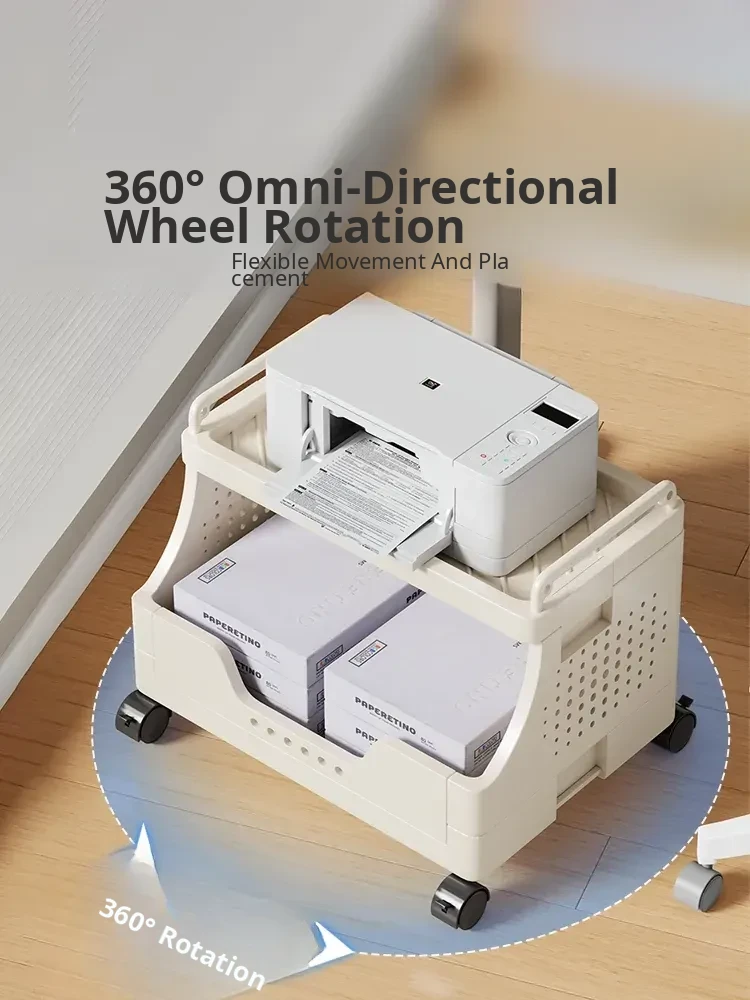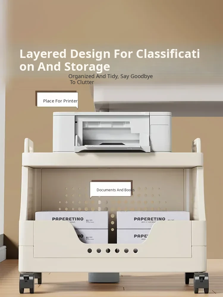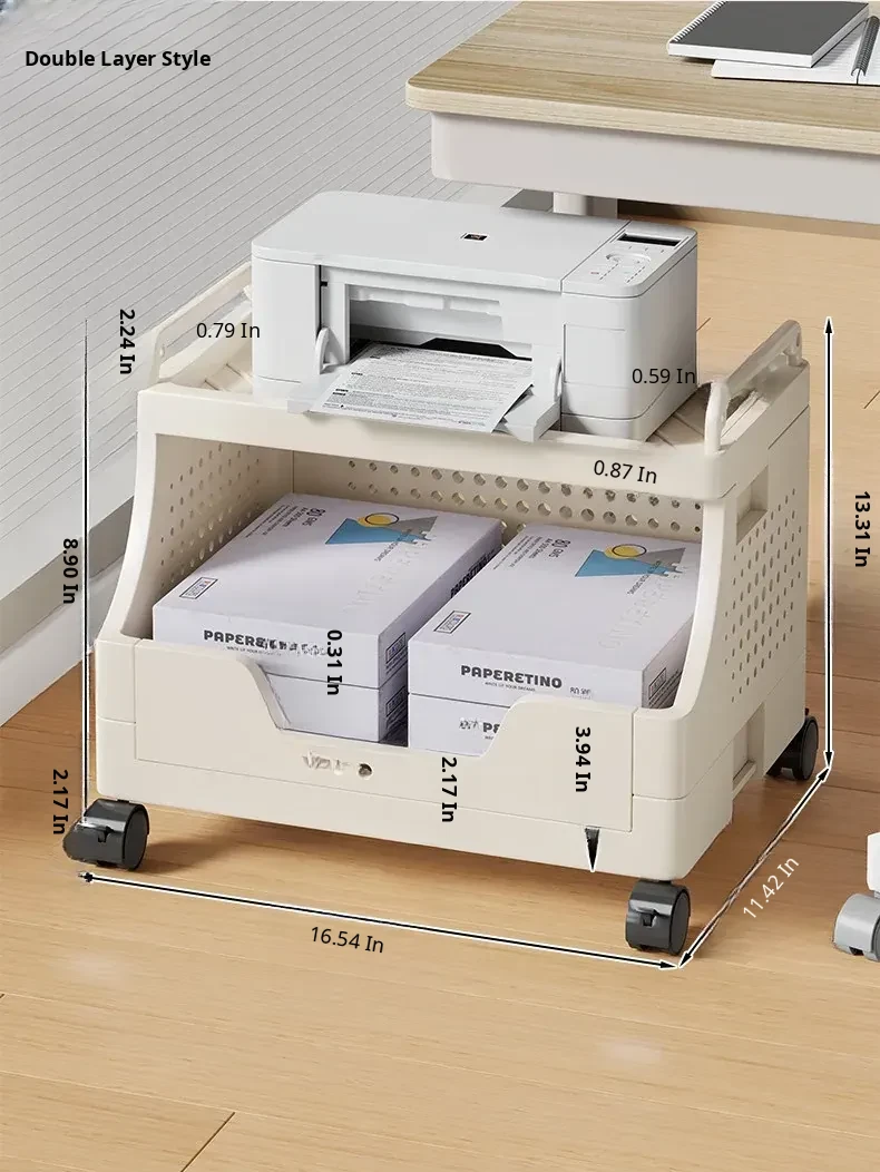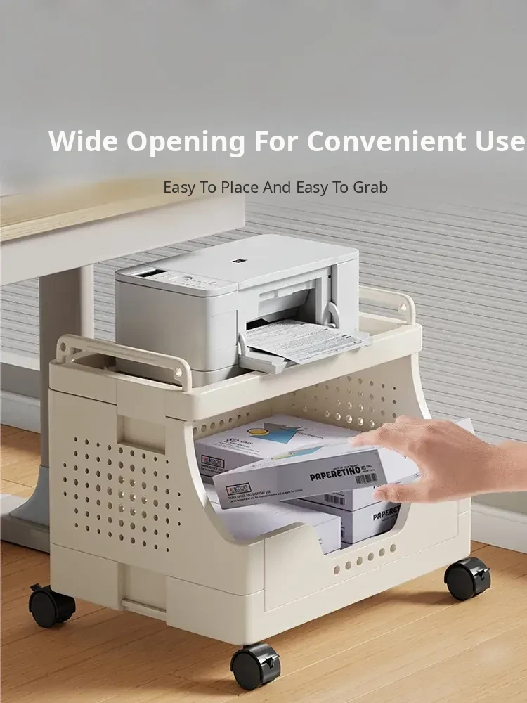 Multi-Tier Rolling Printer Stand - Spacious Under-Desk Storage Cabinet for Office Use, Perfect for Organizing Files and Documents