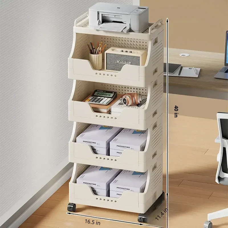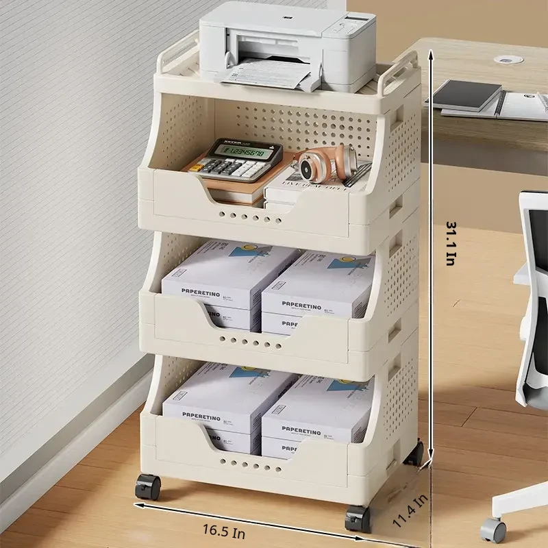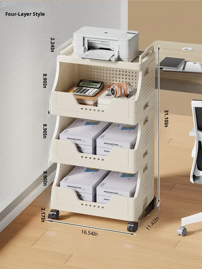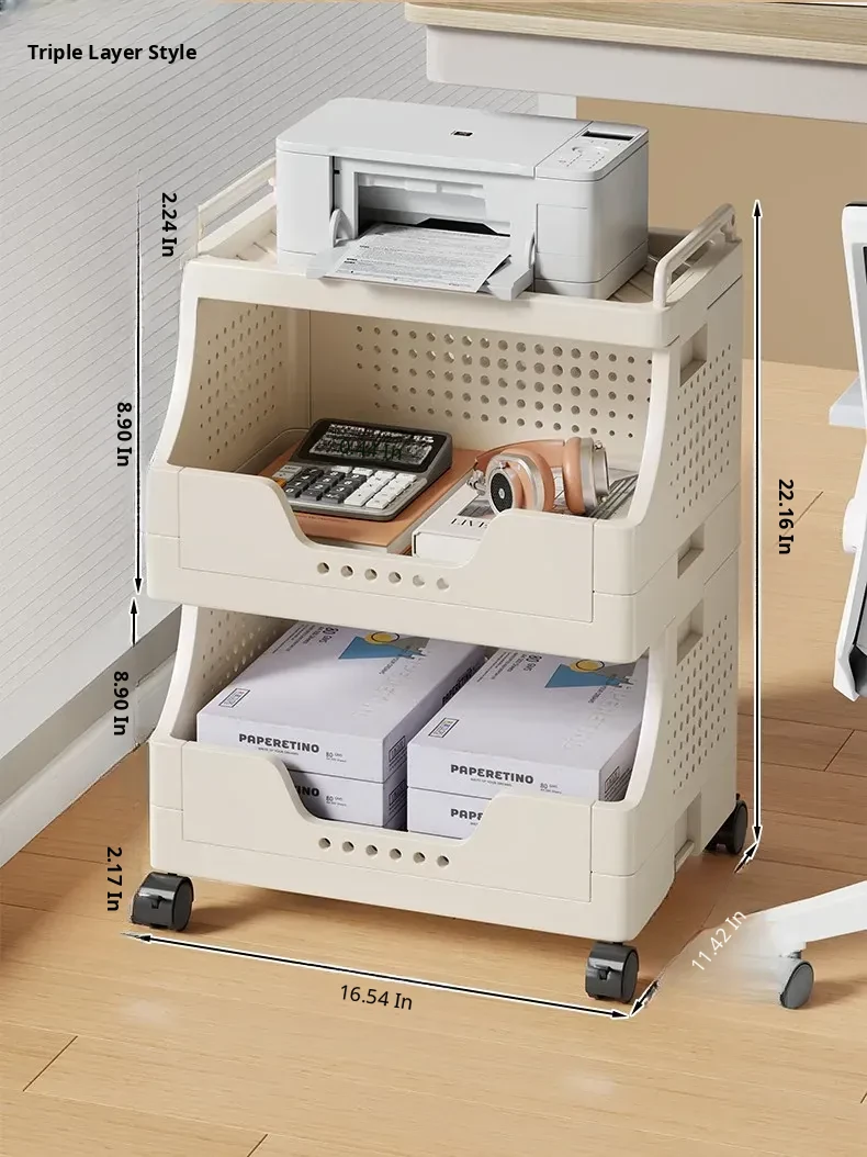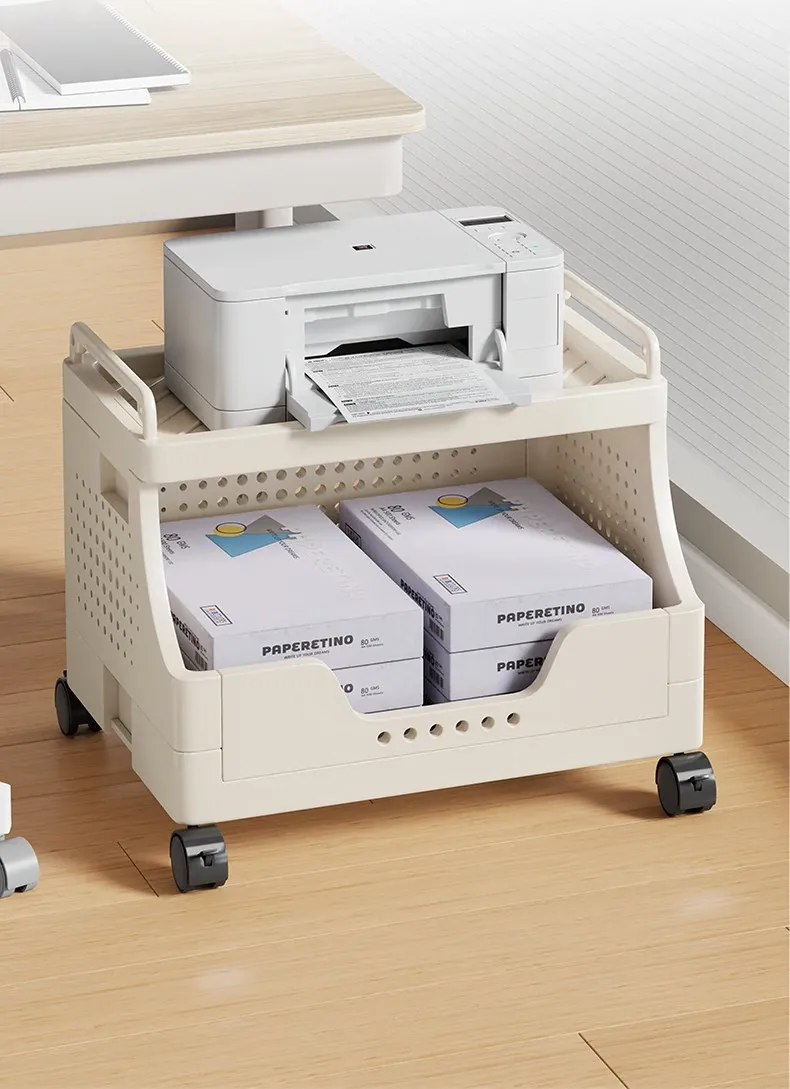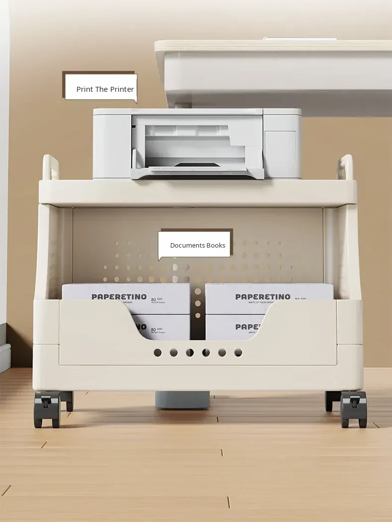 Multi-Tier Rolling Printer Stand - Spacious Under-Desk Storage Cabinet for Office Use, Perfect for Organizing Files and Documents
