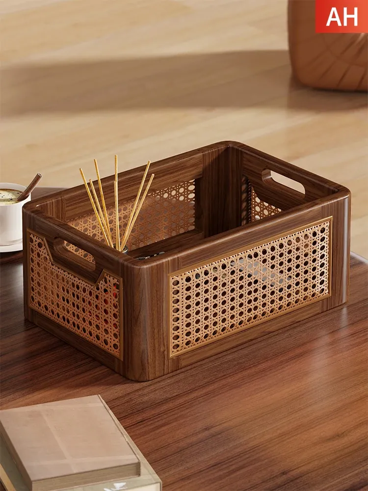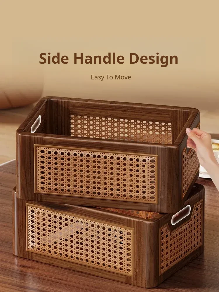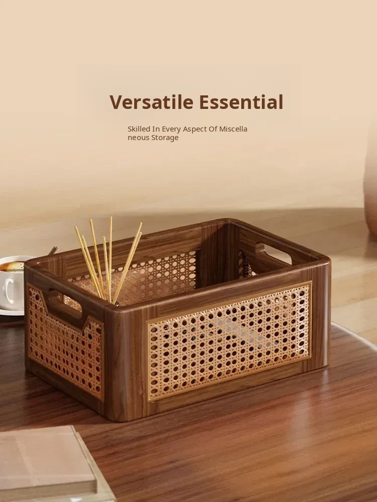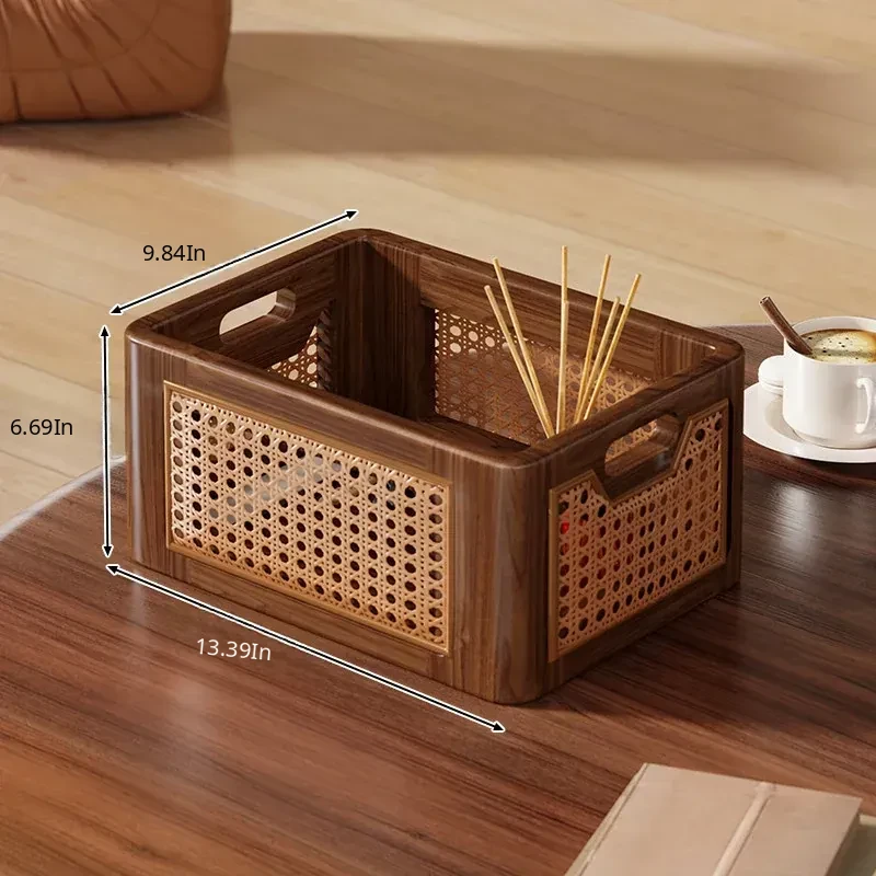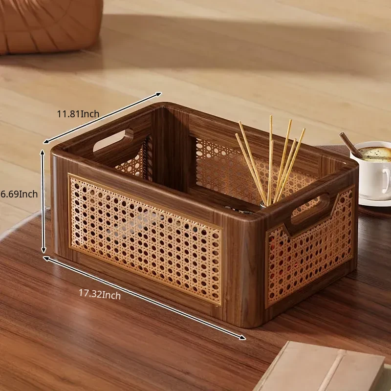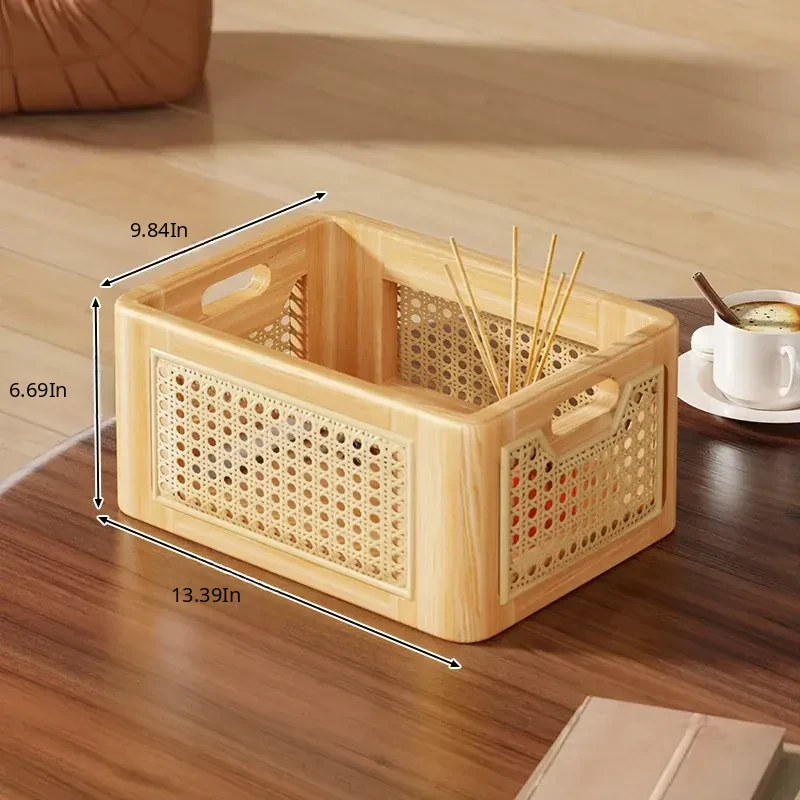 Natural Wooden Wicker Storage Basket - Stylish Home Organizer for Toys, Miscellaneous Items, and Kitchen Snacks - Perfect for Desktop and Household Use!