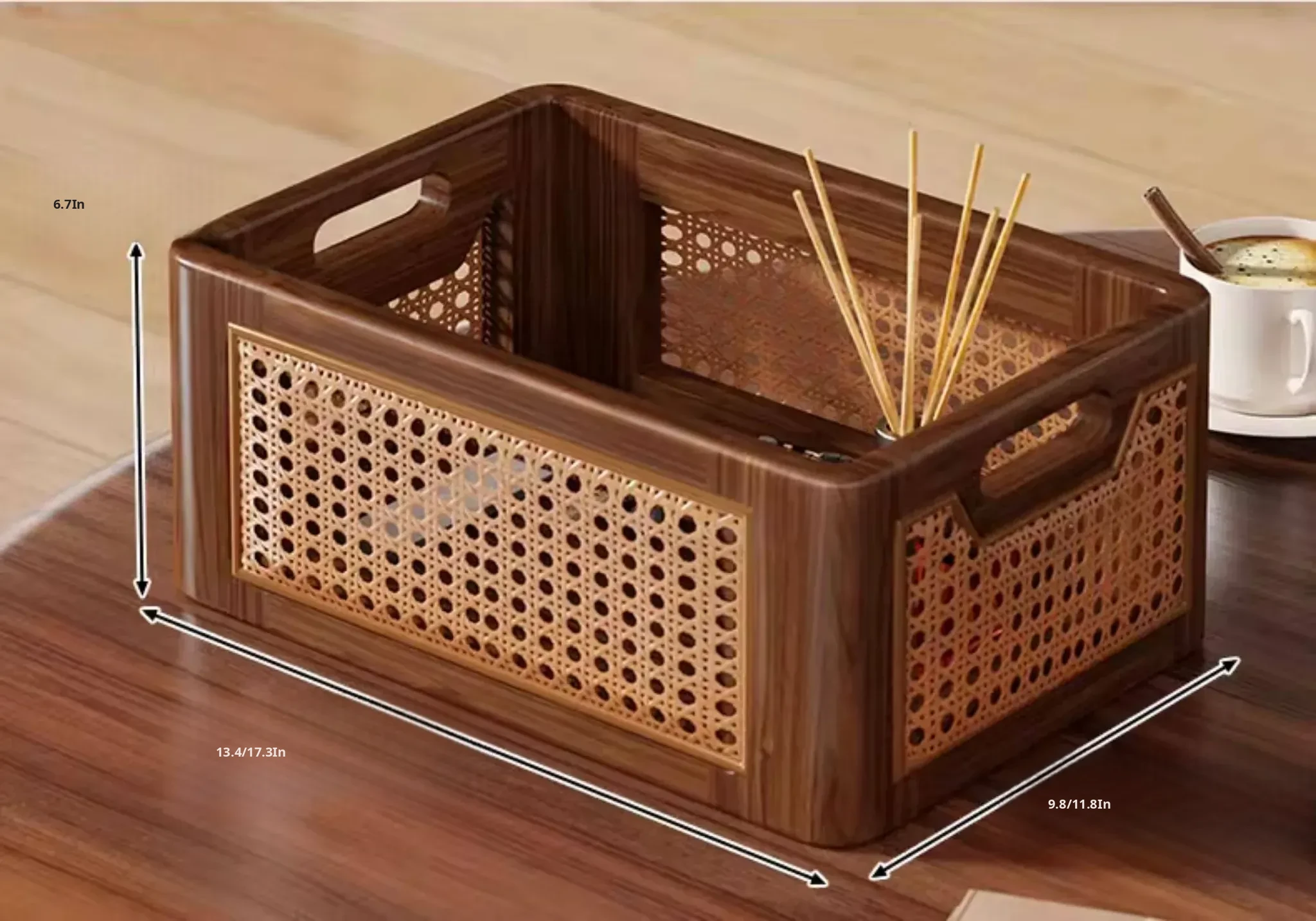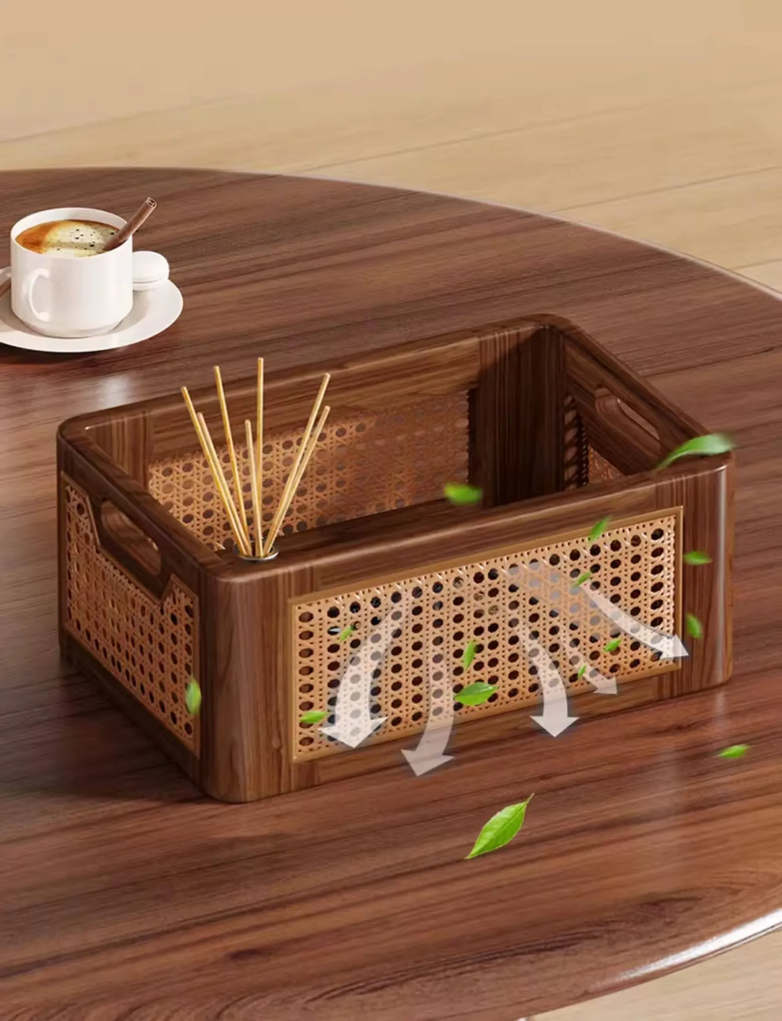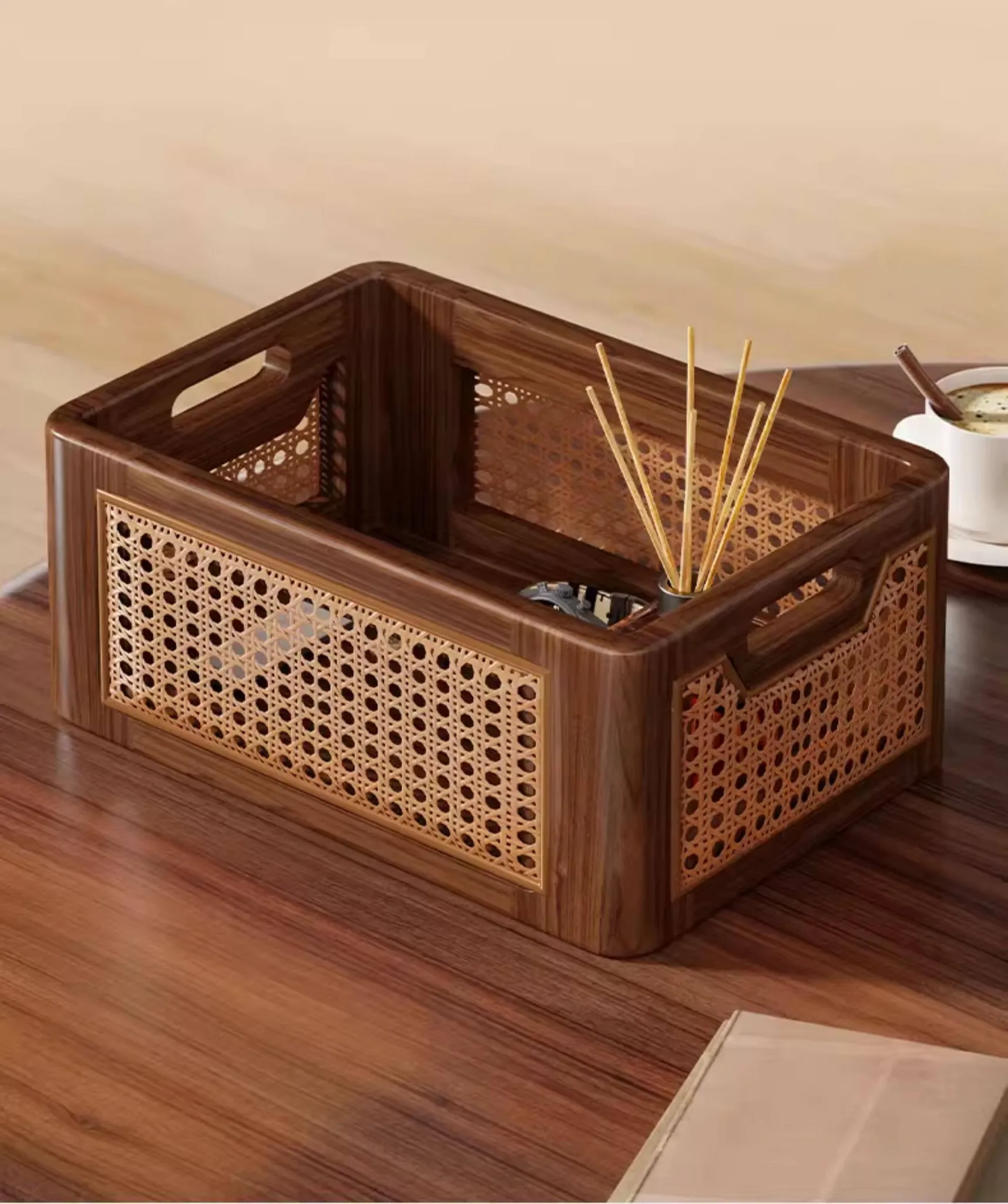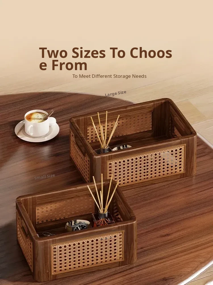 Natural Wooden Wicker Storage Basket - Stylish Home Organizer for Toys, Miscellaneous Items, and Kitchen Snacks - Perfect for Desktop and Household Use!