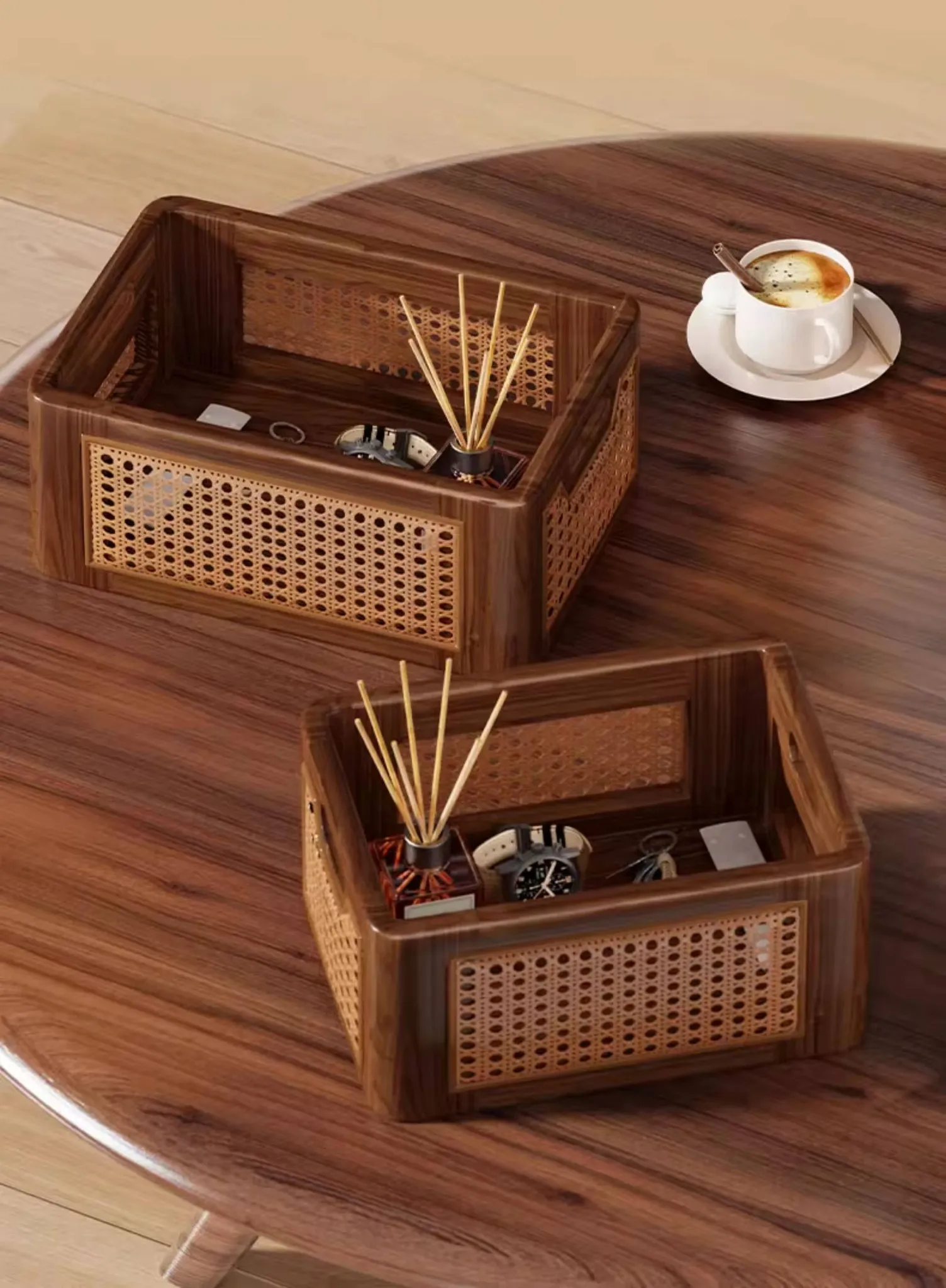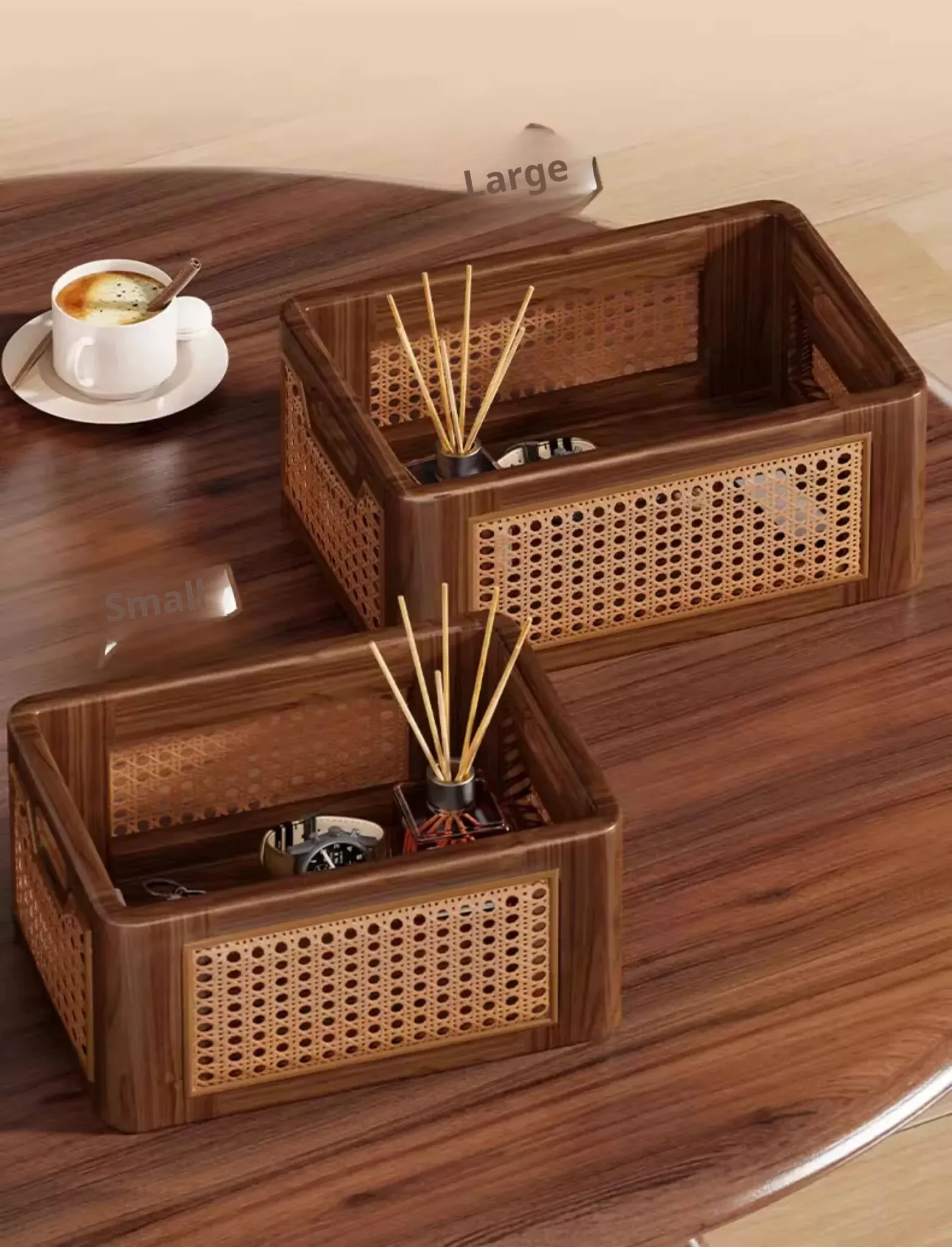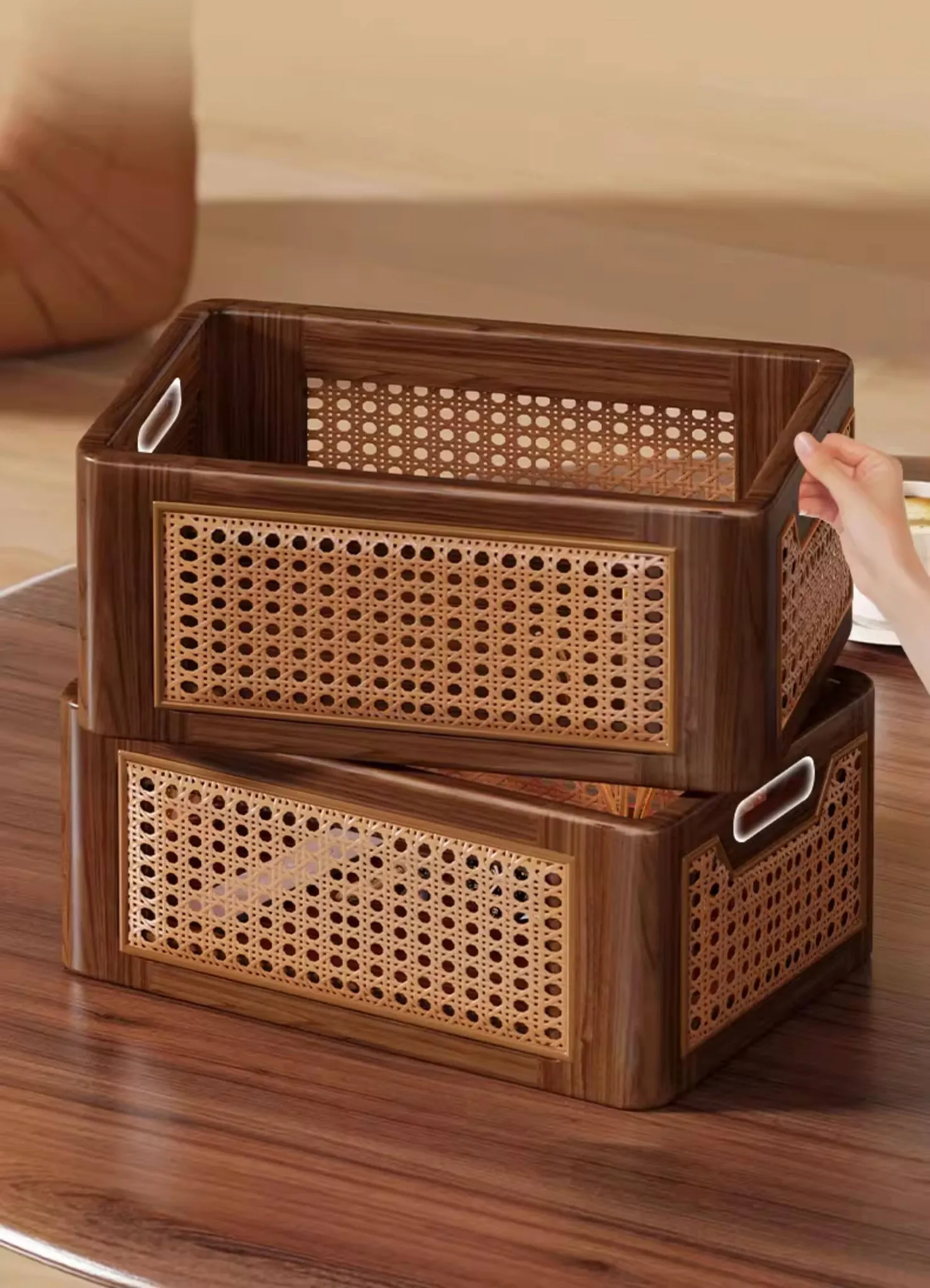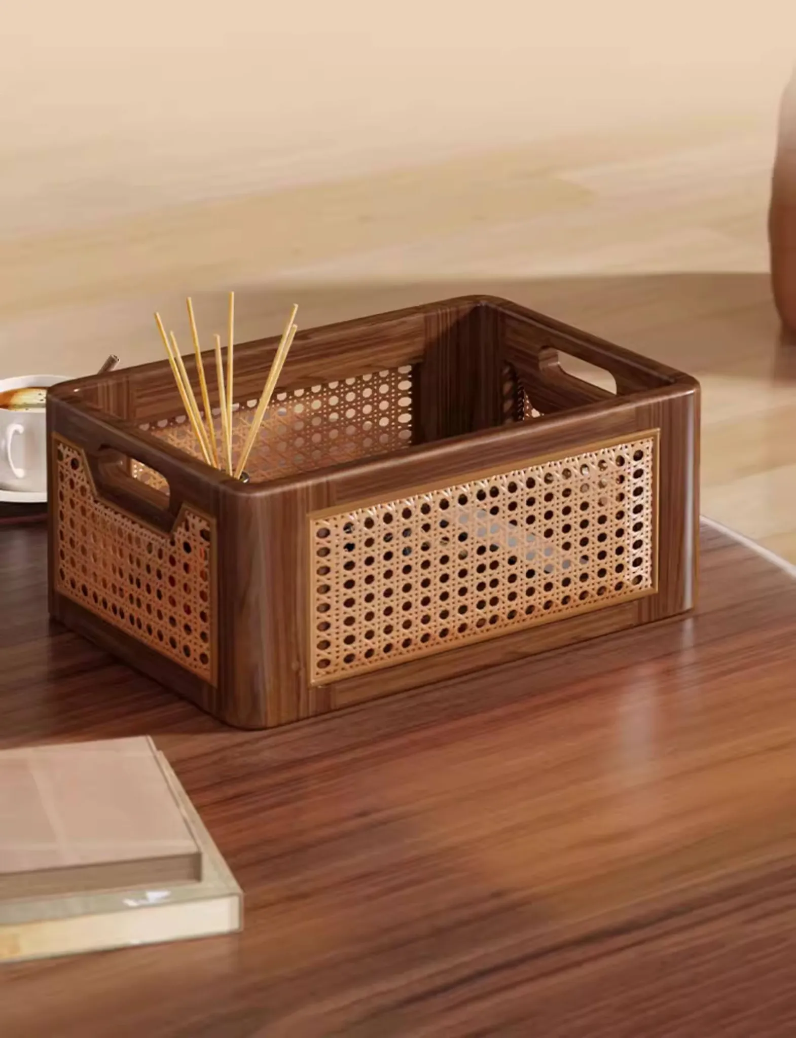 Natural Wooden Wicker Storage Basket - Stylish Home Organizer for Toys, Miscellaneous Items, and Kitchen Snacks - Perfect for Desktop and Household Use!