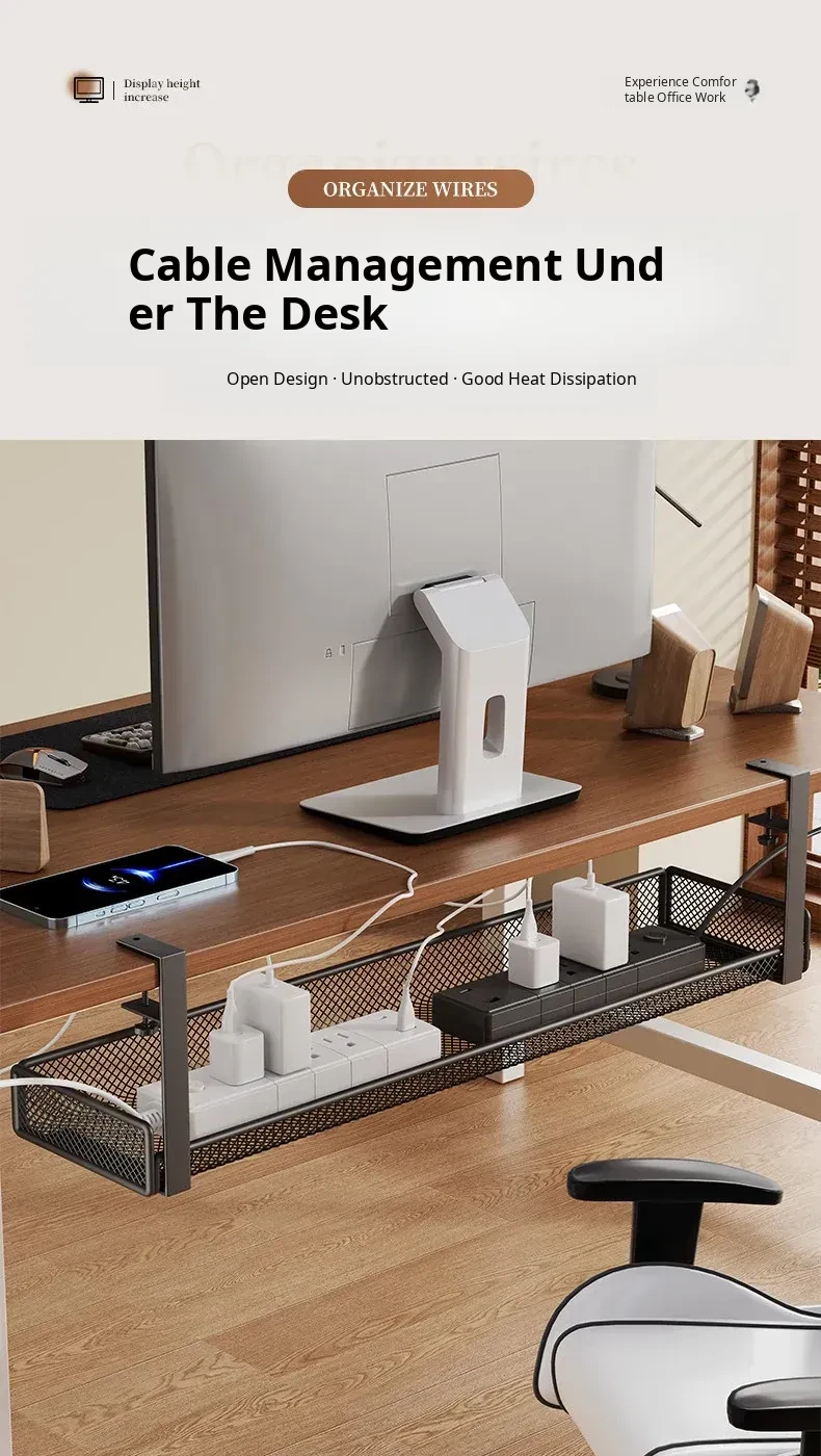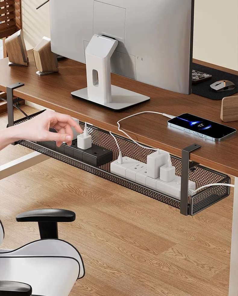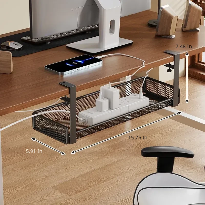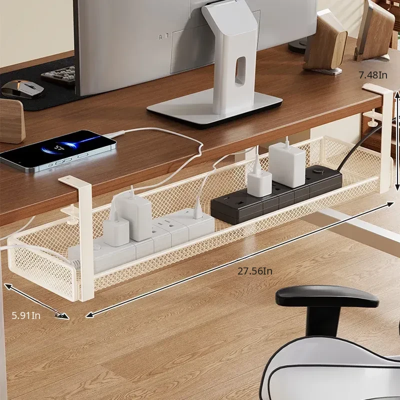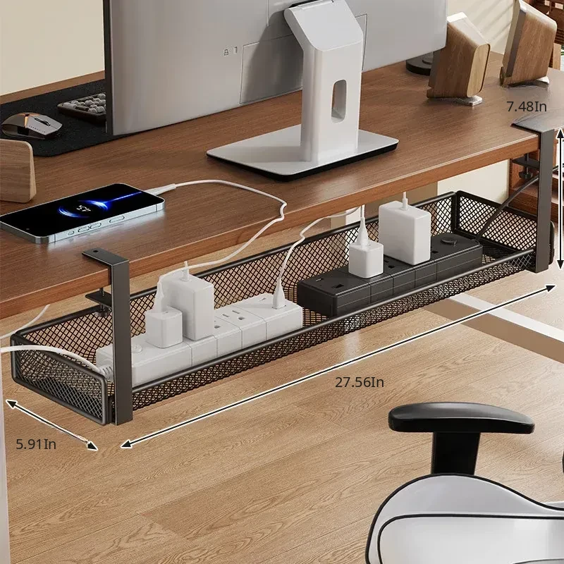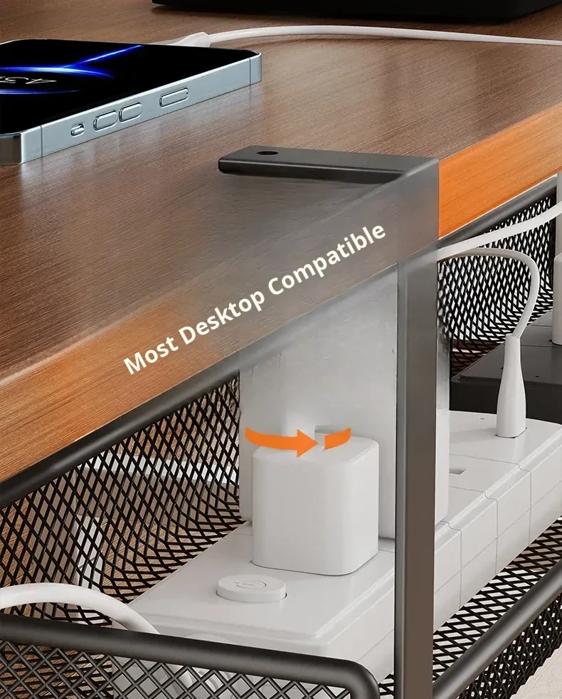 No-Drill Power Cable Organizer with Multiple Ports - Sleek Under-Desk Cable Management Box for Home and Office Use