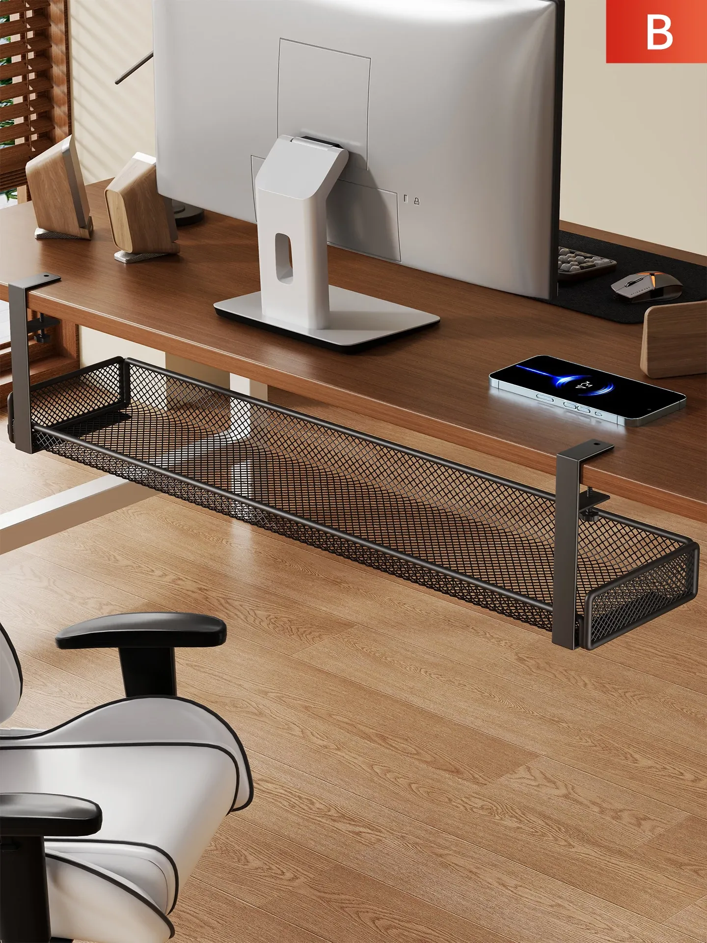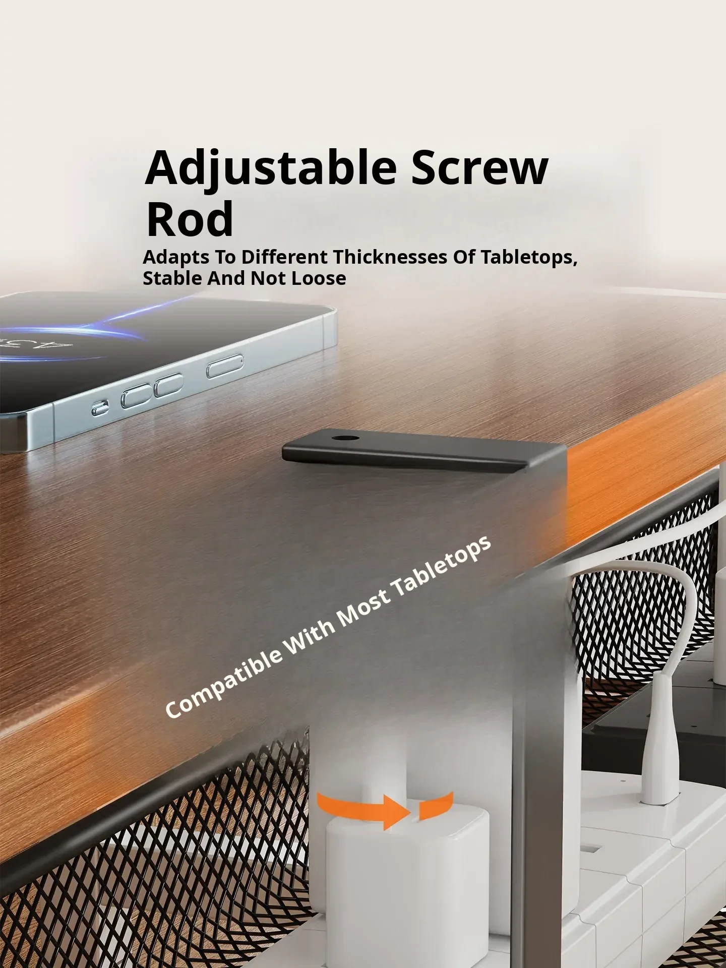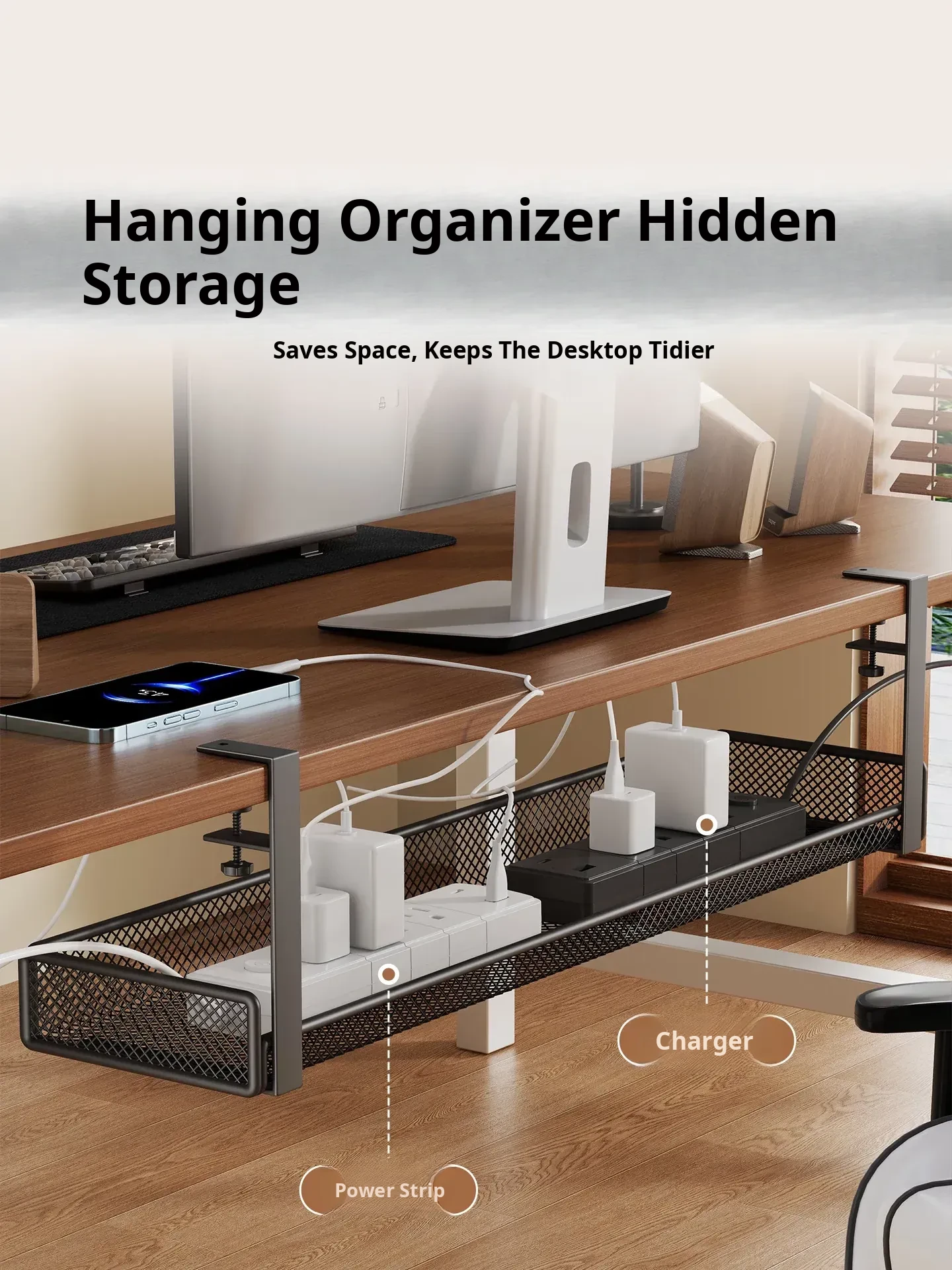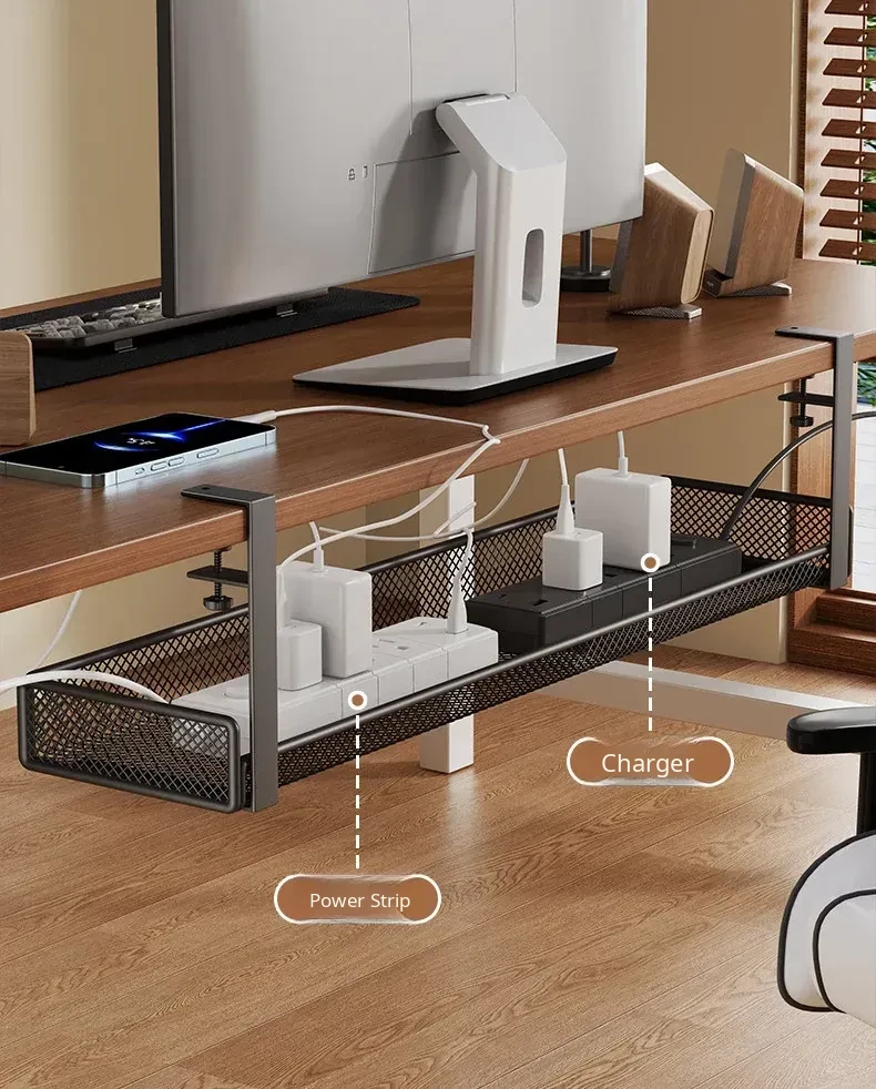 No-Drill Power Cable Organizer with Multiple Ports - Sleek Under-Desk Cable Management Box for Home and Office Use