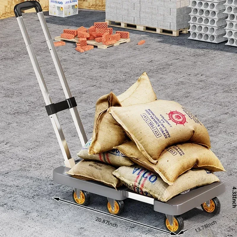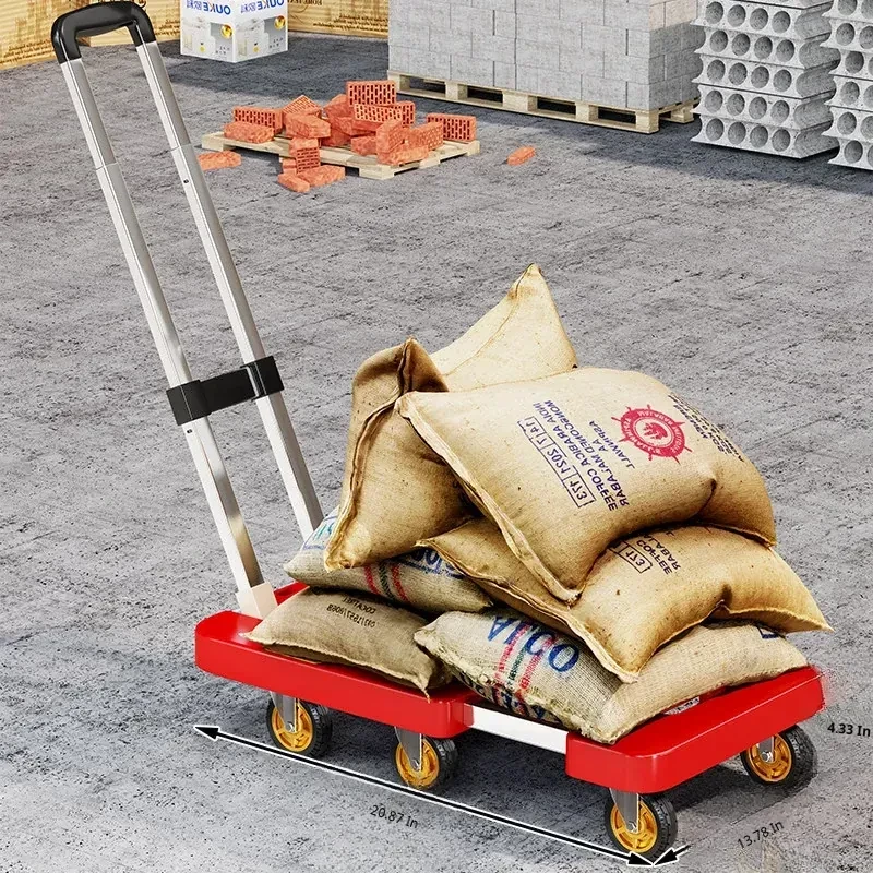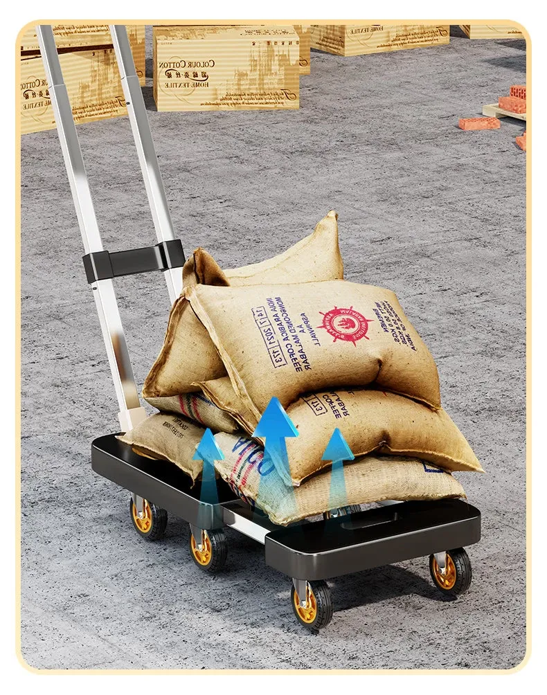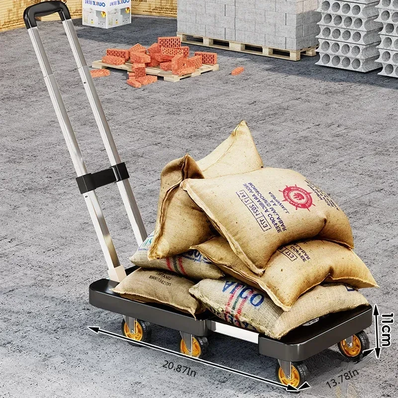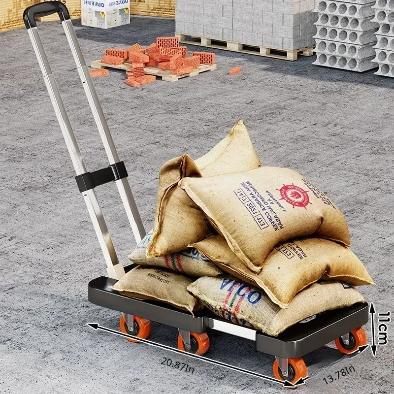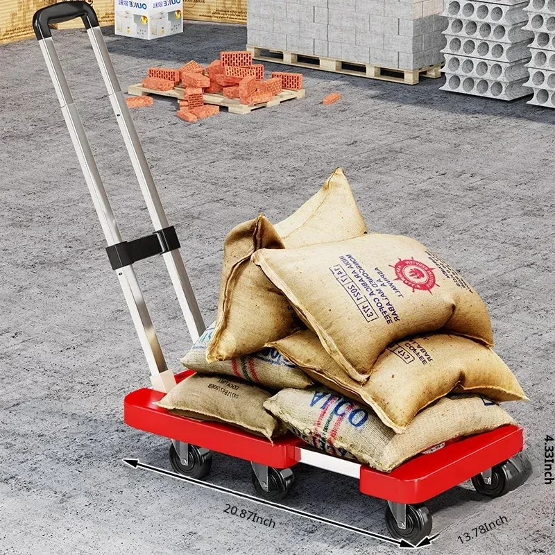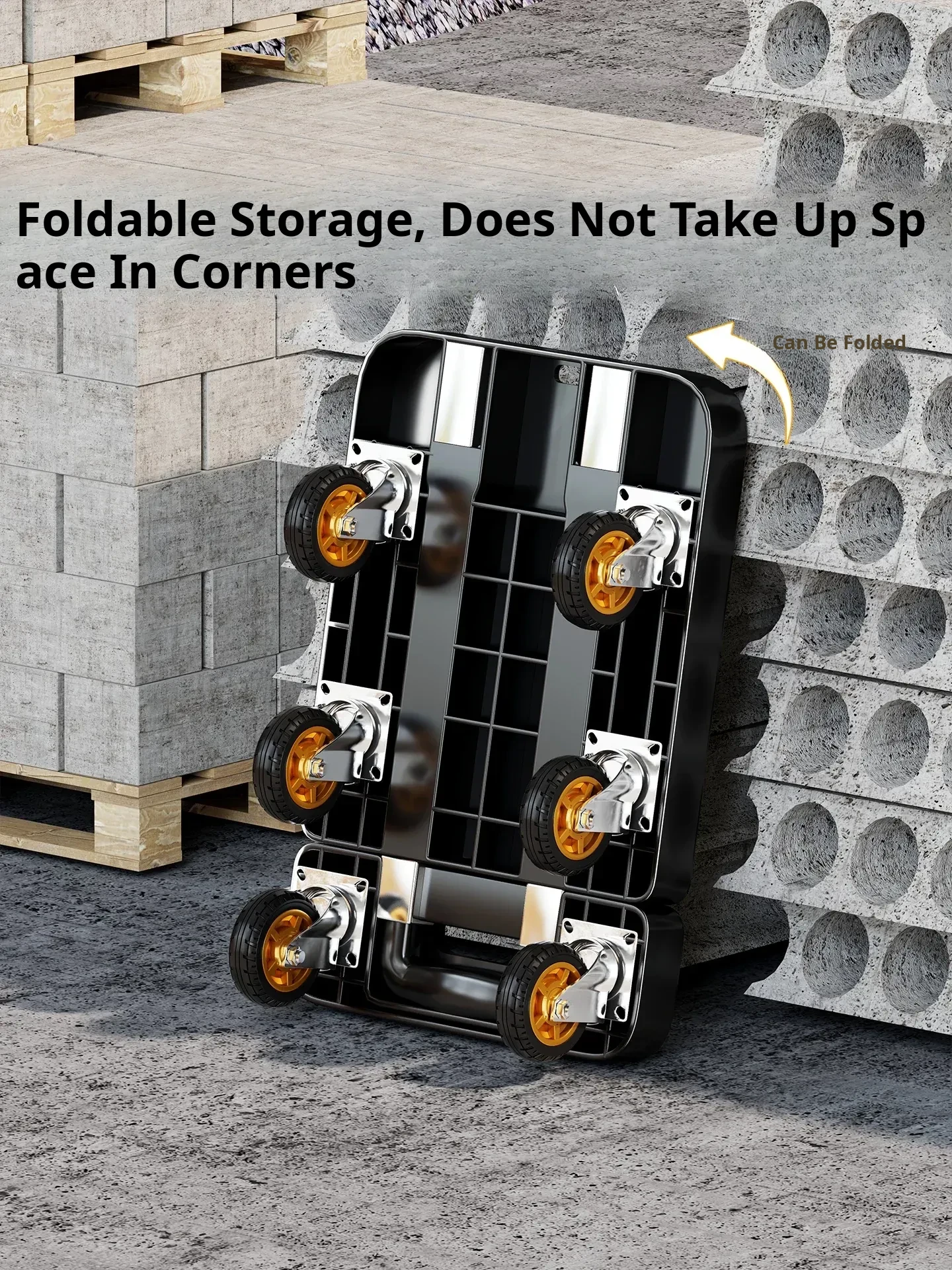 Portable Folding Hand Truck with Six Wheels - Lightweight and Convenient Trolley for Home Use, Ideal for Deliveries and Hauling Cargo.