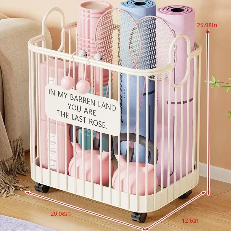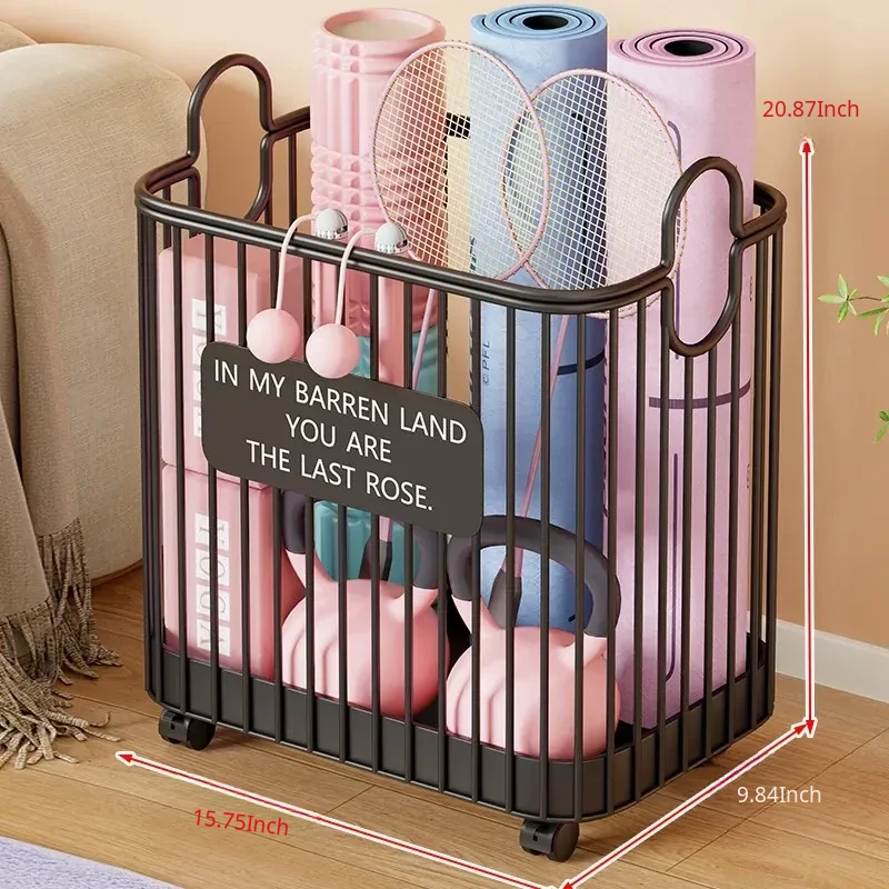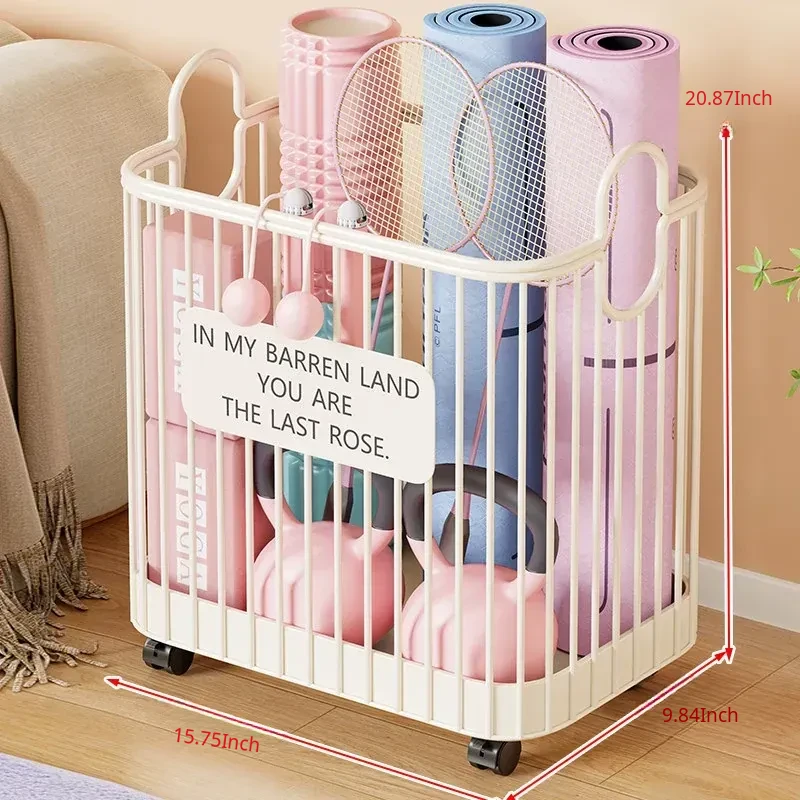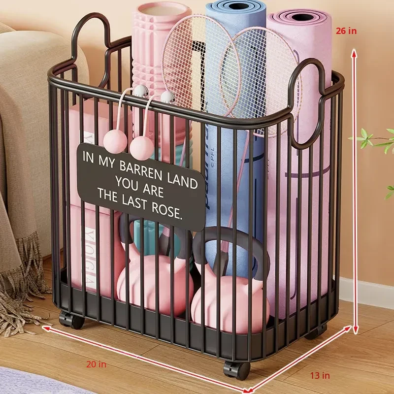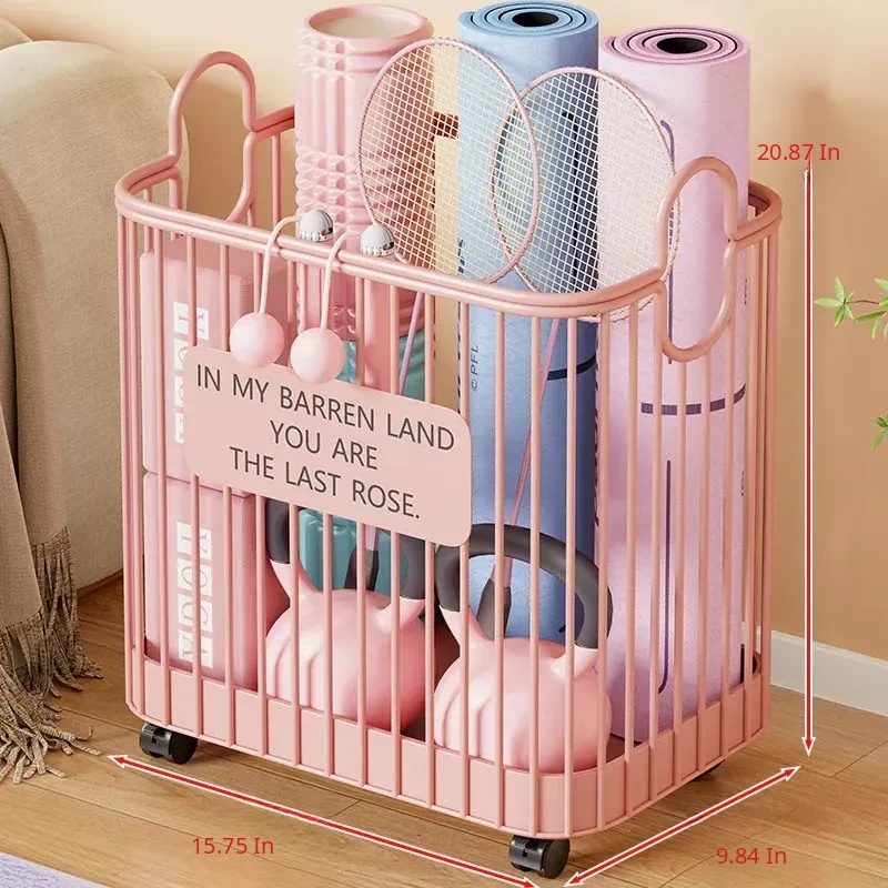 Portable Yoga Mat Storage Basket with Wheels - The Ultimate Space-Saving Organizer for Home Fitness Equipment and Sports Gear
