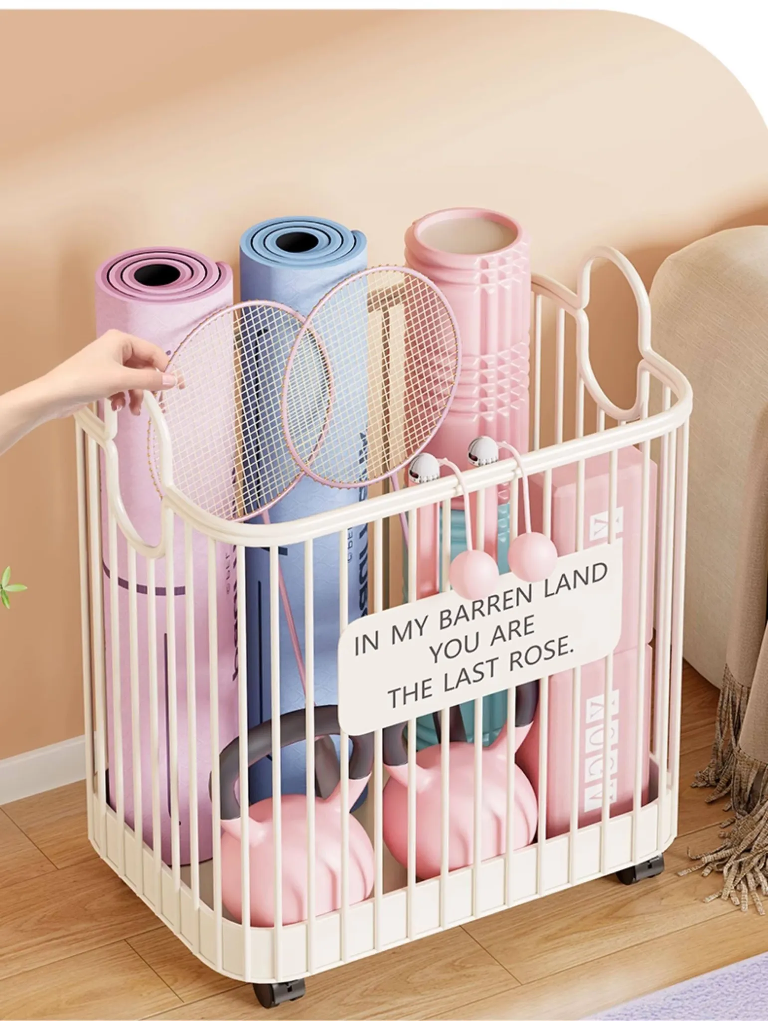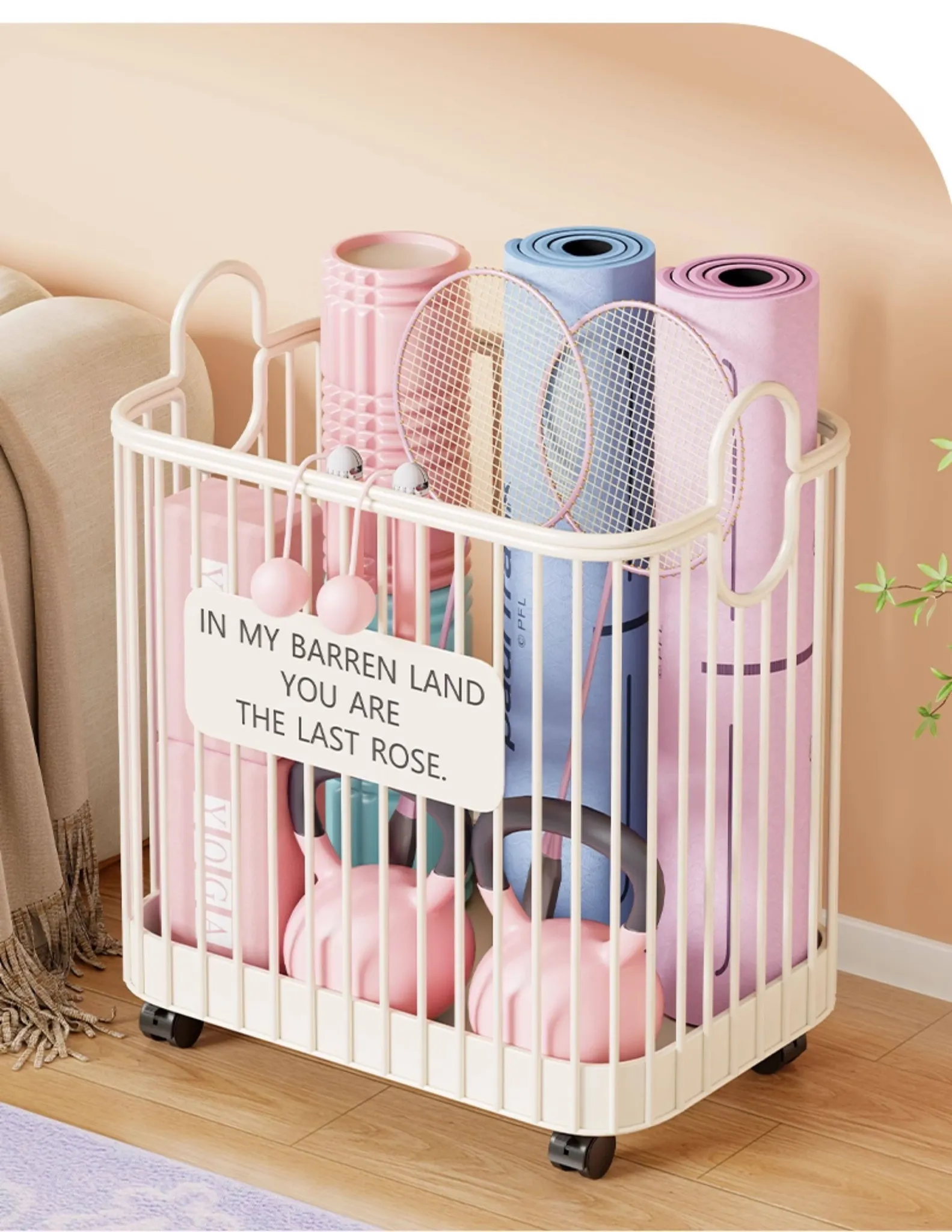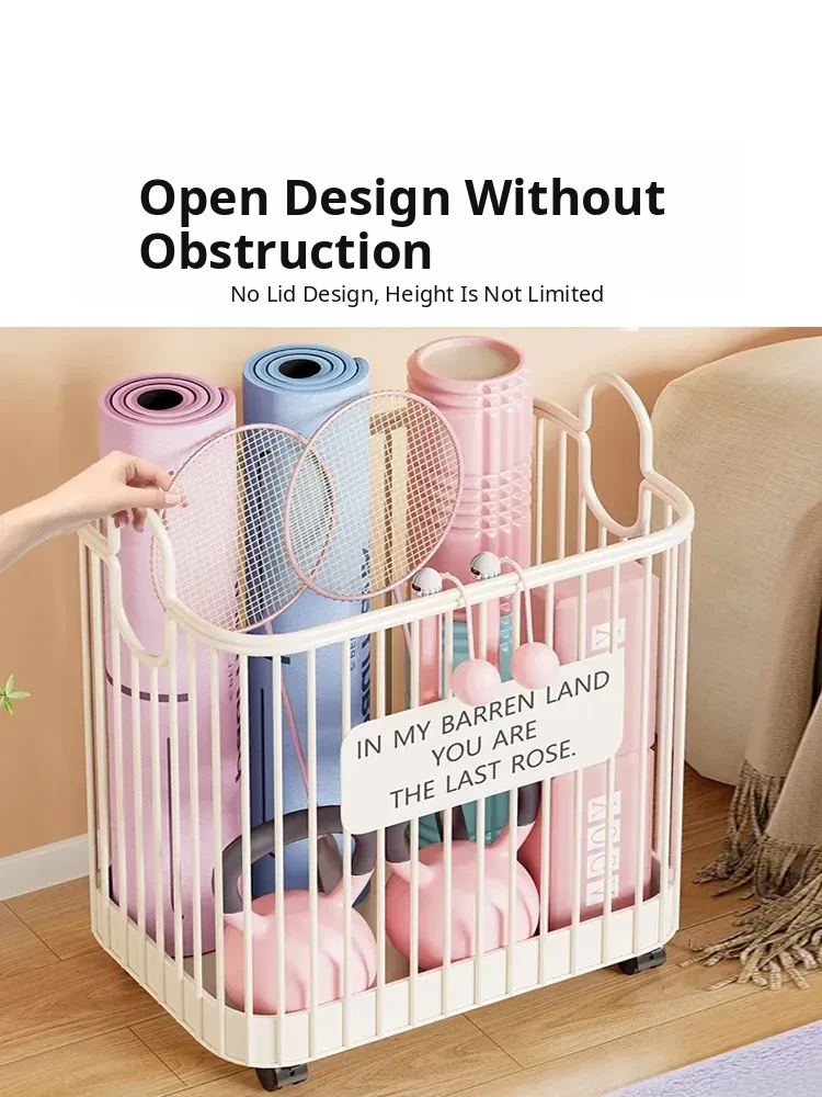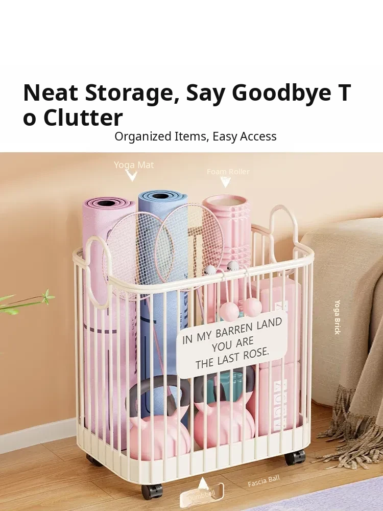Portable Yoga Mat Storage Basket with Wheels - The Ultimate Space-Saving Organizer for Home Fitness Equipment and Sports Gear