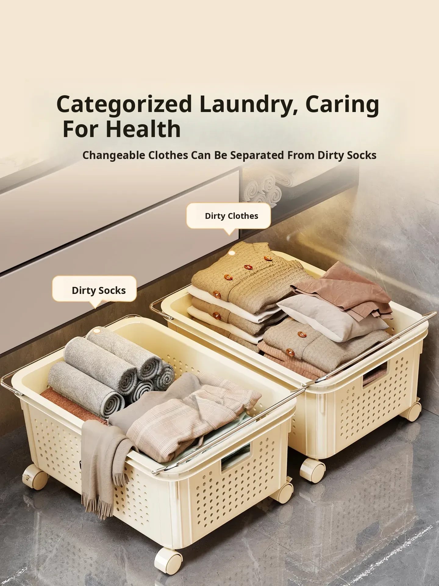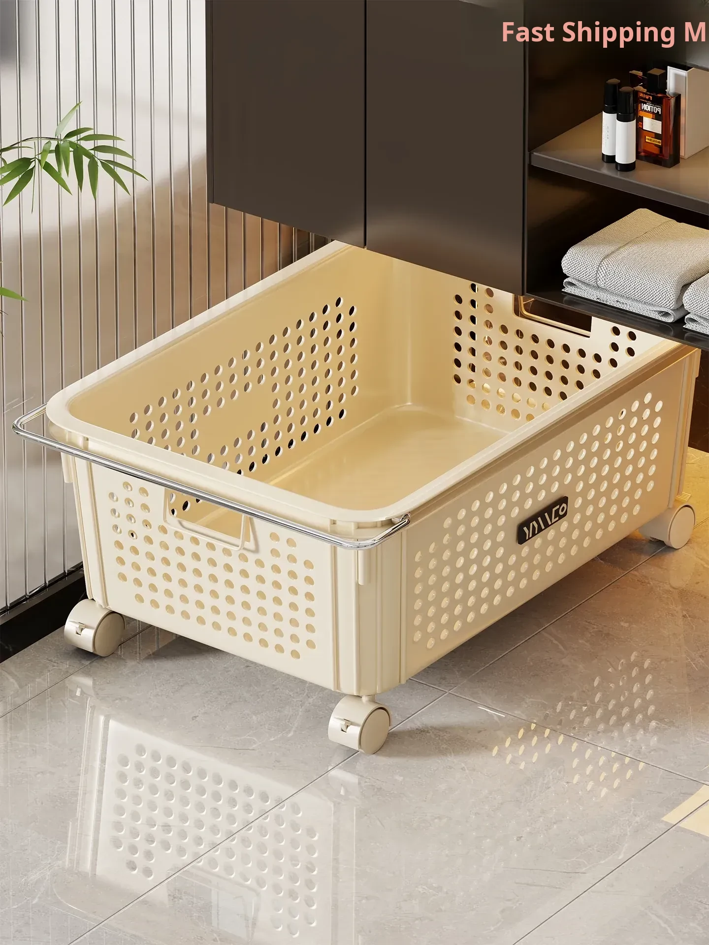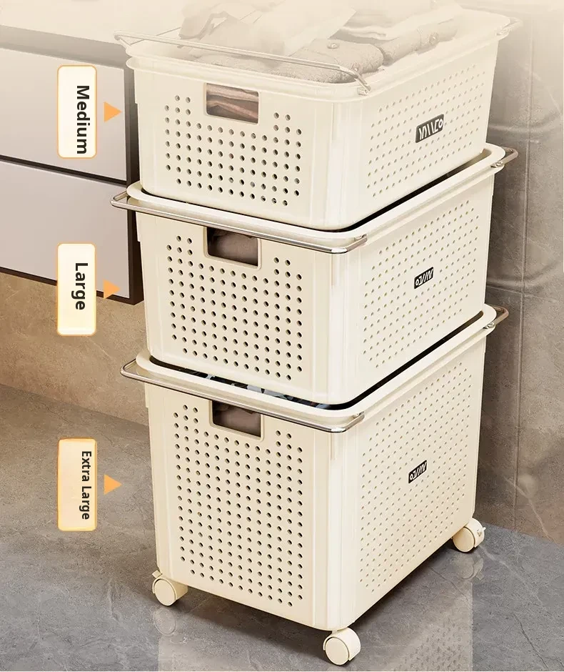 Stylish Mobile Laundry Cart for Bathroom - High Capacity Hamper for Dirty Clothes, Perfect for Organizing Your Laundry Space!
