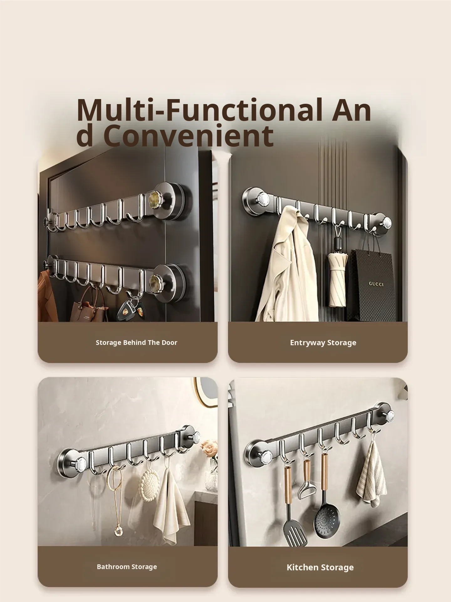 Suction Cup Hooks - Stylish Adhesive Wall Hangers for Easy Home Organization - No Drilling Required - Strong Hold for Coats, Bags, and More!
