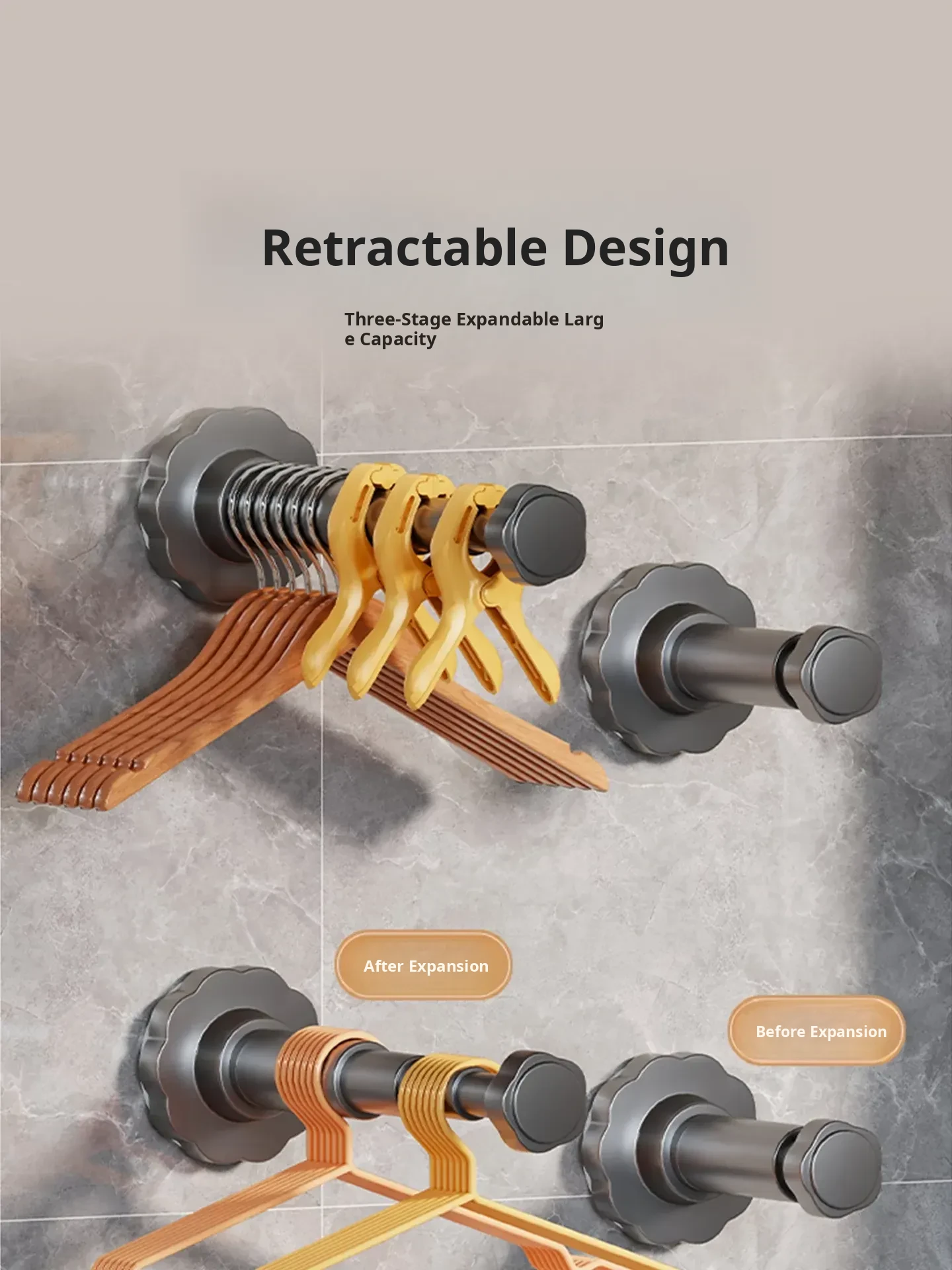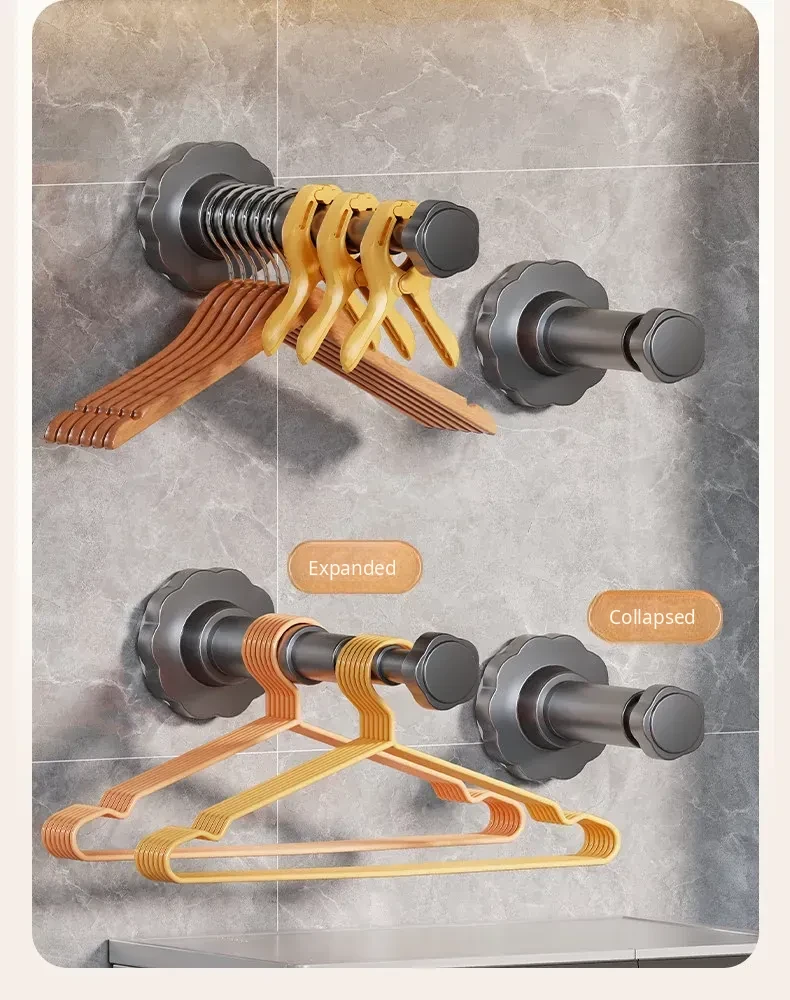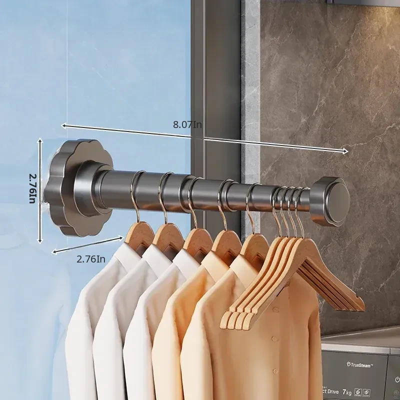Suction Cup Telescopic Clothes Hanger - Multi-Functional Home Clothes Drying Rod, No Drill Required, Perfect for Balcony, Shower Curtain Support, and Wardrobe Storage Solution